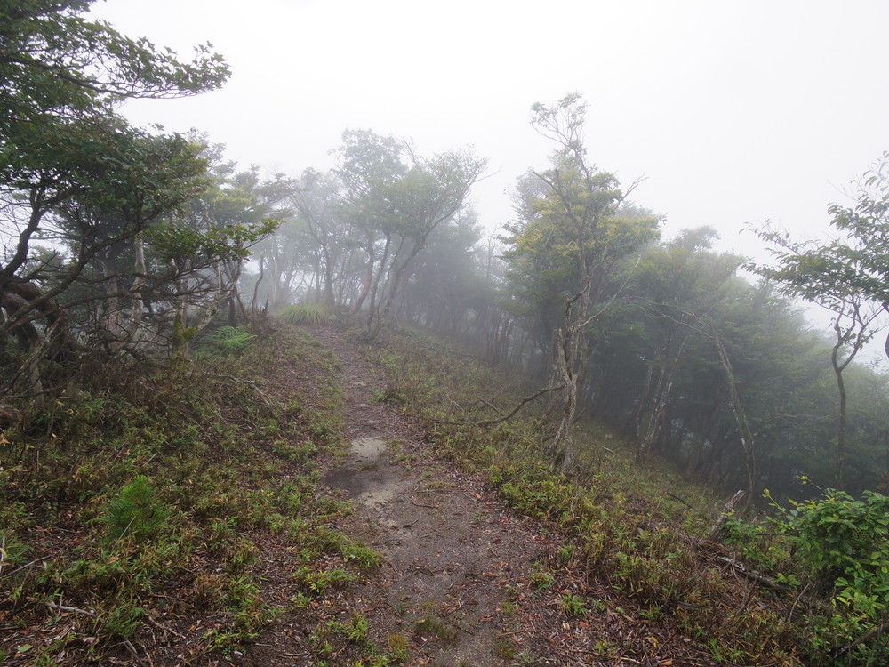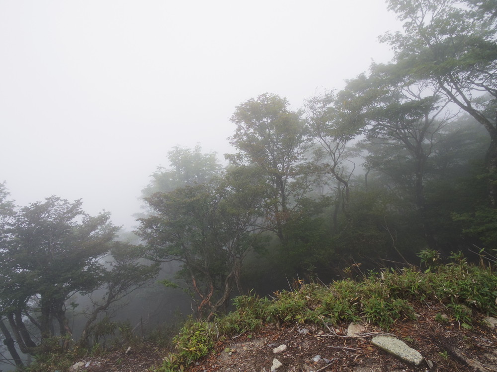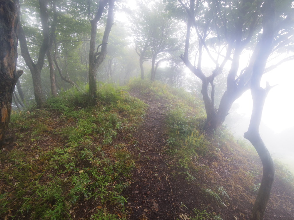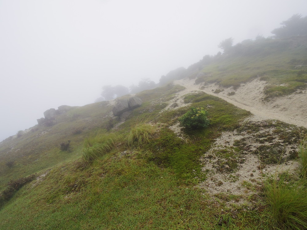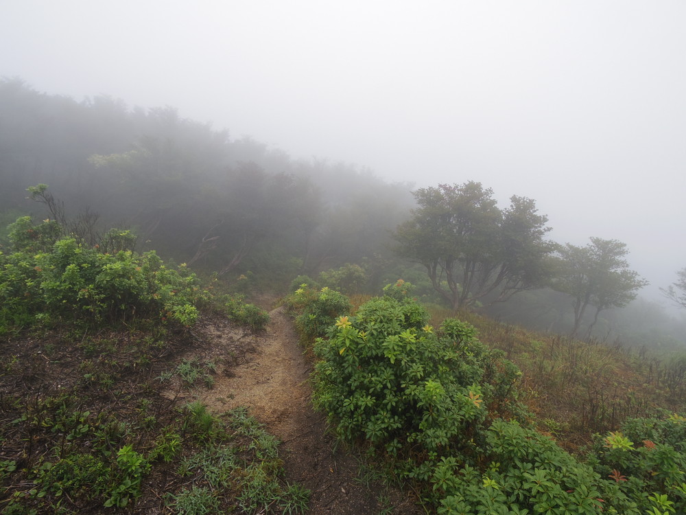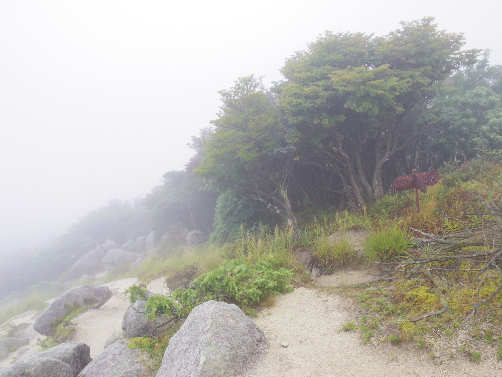 往路はガスっていて眺望ゼロ。おまけに道迷い(悲)。