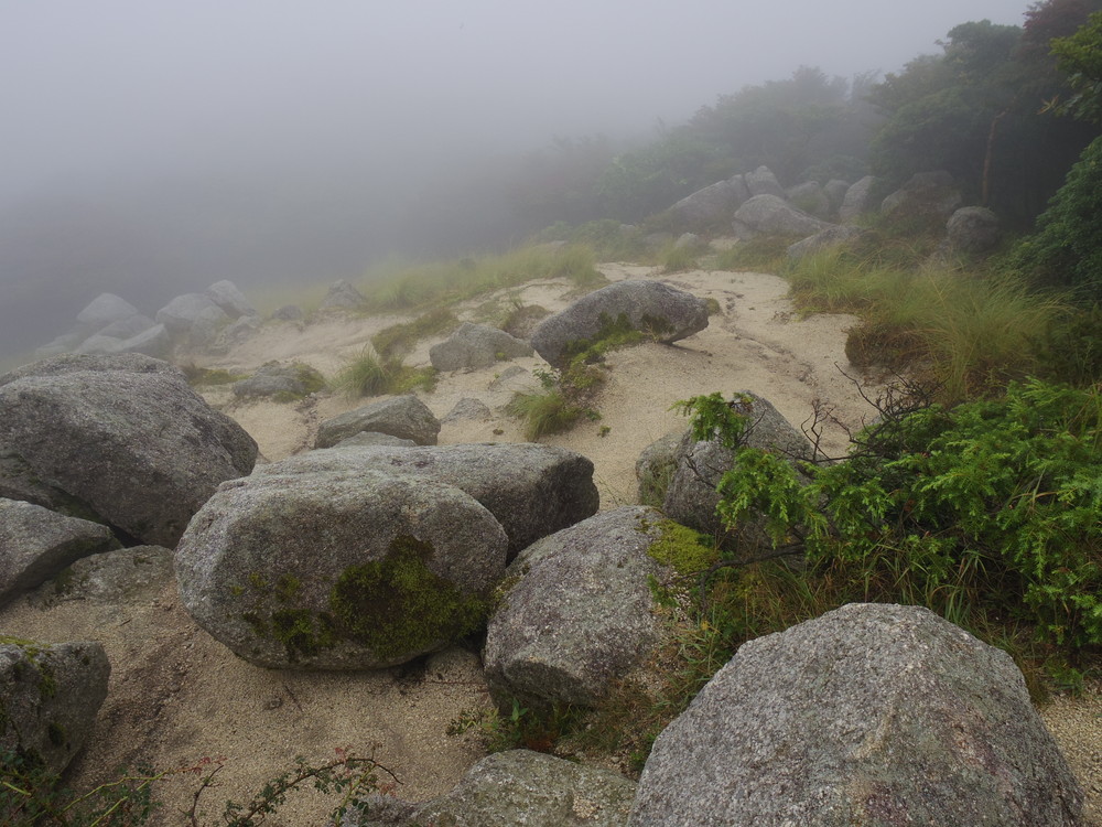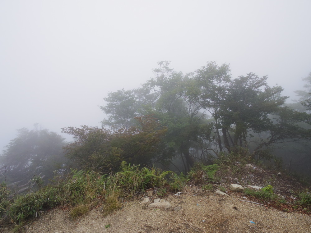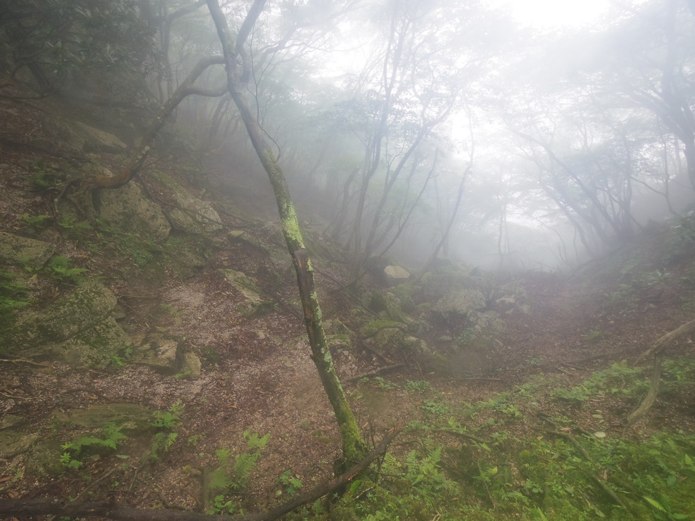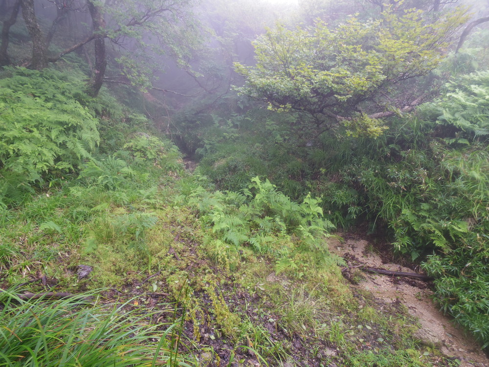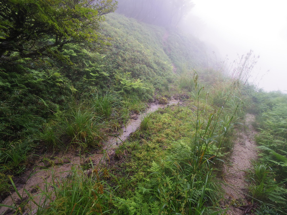 往路はガスっていて眺望ゼロ。おまけに道迷い(悲)。