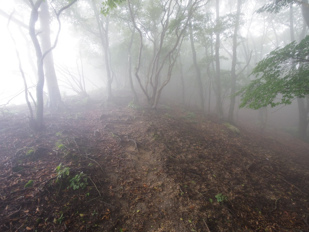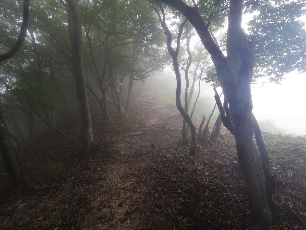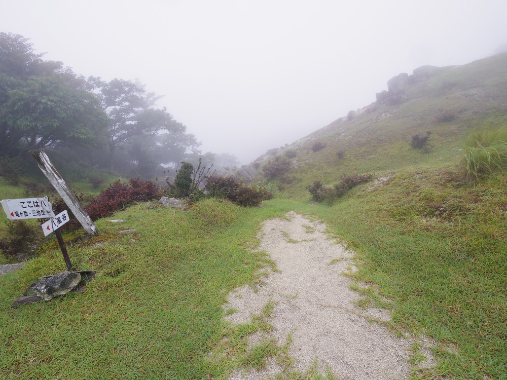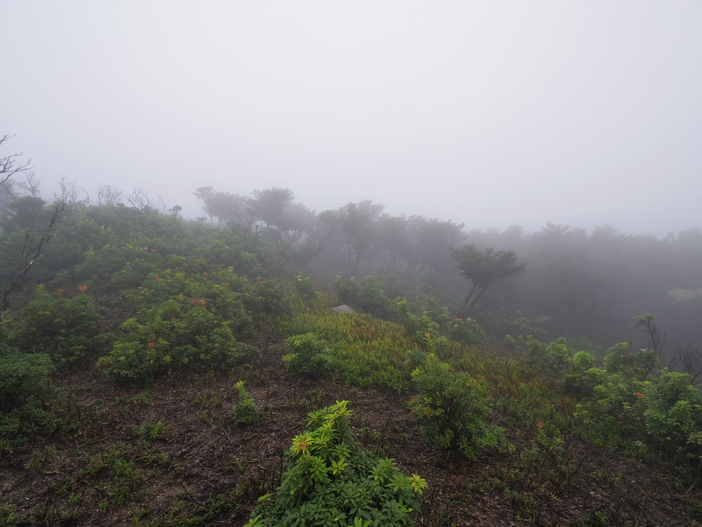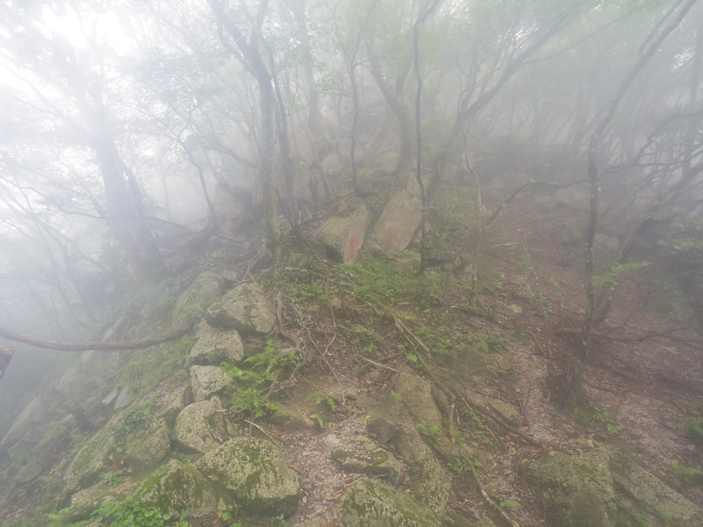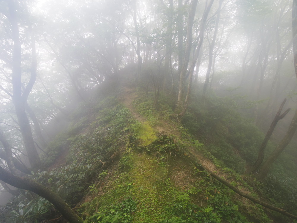 往路はガスっていて眺望ゼロ。おまけに道迷い(悲)。