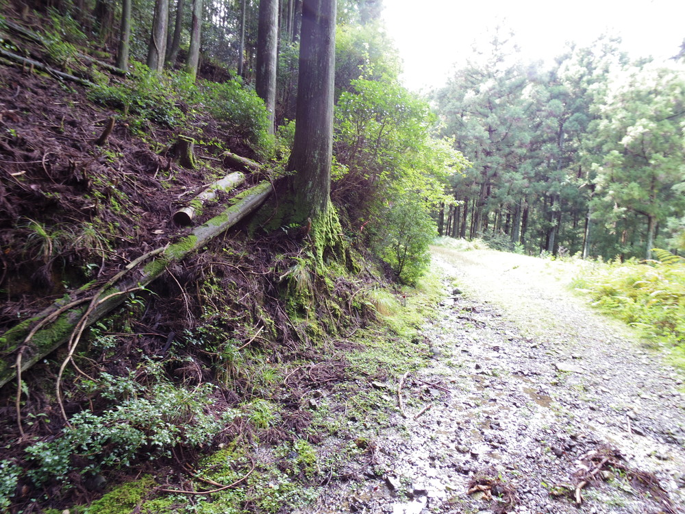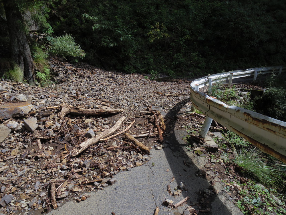 小岐須渓谷駐車場を通り越して更に林道を進もうとしたら先般来の雨で土砂崩れ箇所があり通行不可。