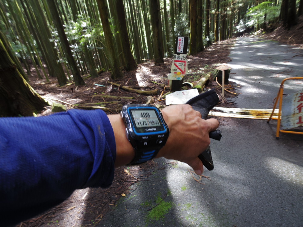 そのままバックで小岐須渓谷駐車場までもどってきたら 駐車場で支度をしているオジサンに「通行できませんでしたか」と同情されました。