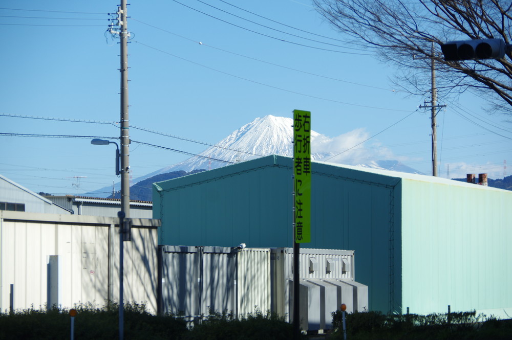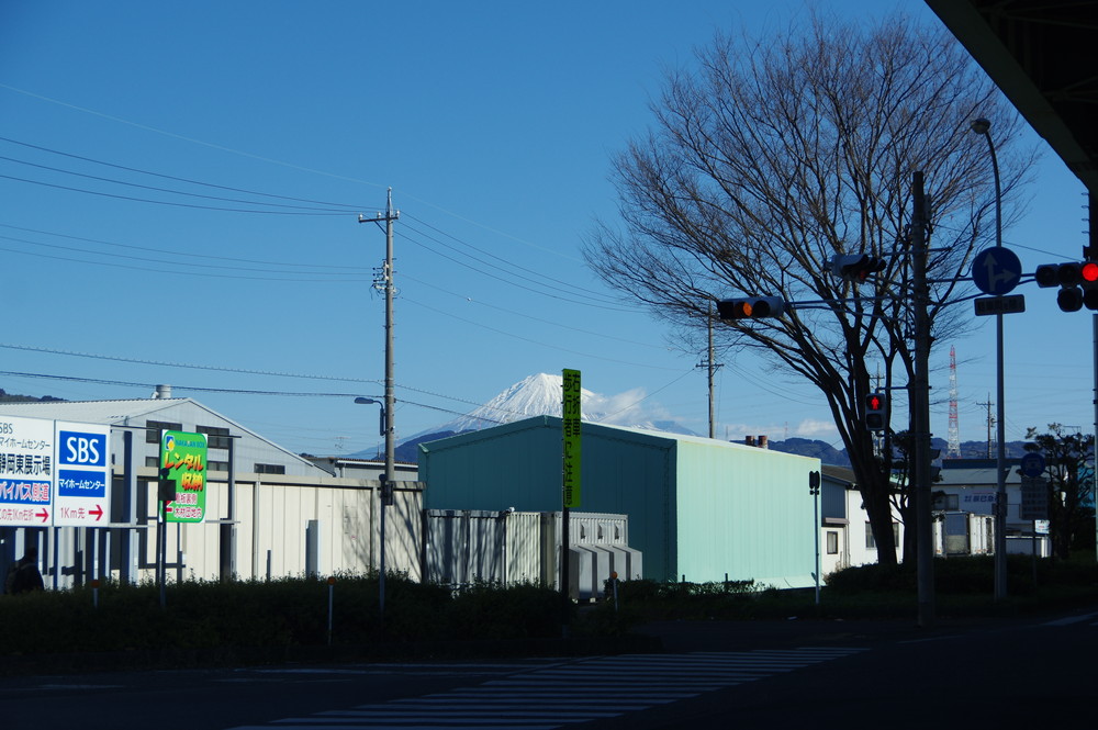 高速降りて 一般道。 日本平を目指して信号待ちの時に 富士山が見えたぞ!