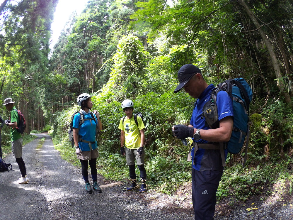 2017年8月6日 6:00東海市役所集合で沢上(そうれ)谷へ。メンバーはK師匠、弓彦くん、睦浦さん、伊串さん、のぶちゃん、みどりちゃん。