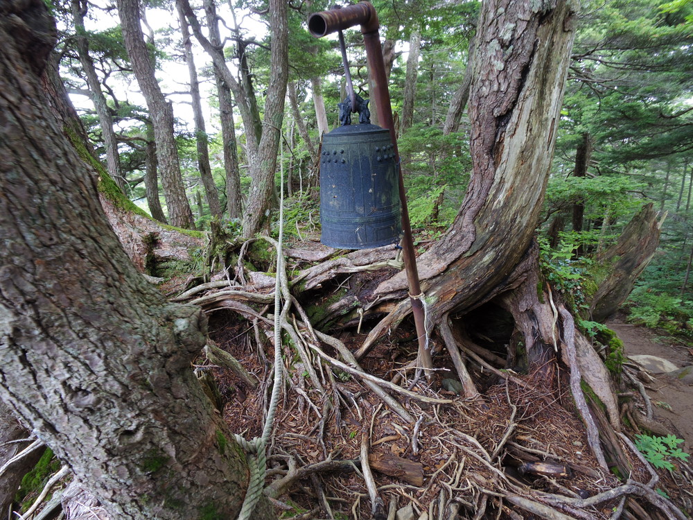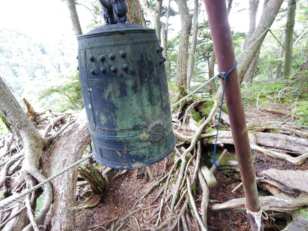 湯の花峠。 44分。 鐘を勢い良く鳴らした。