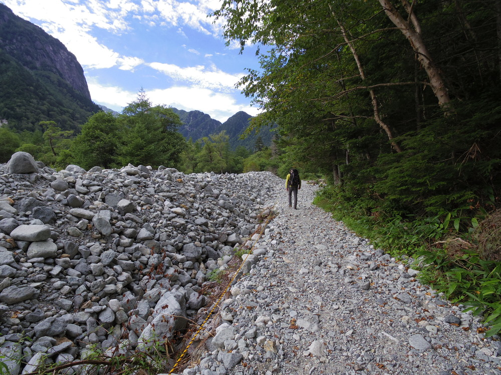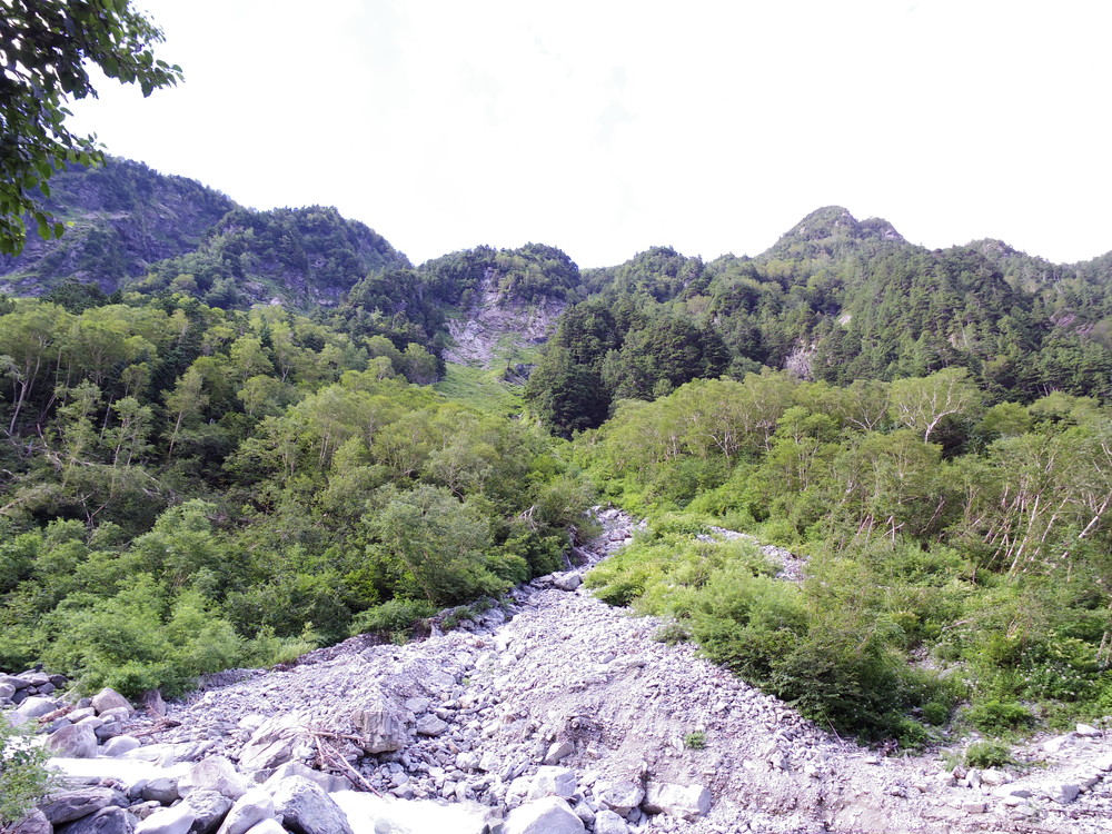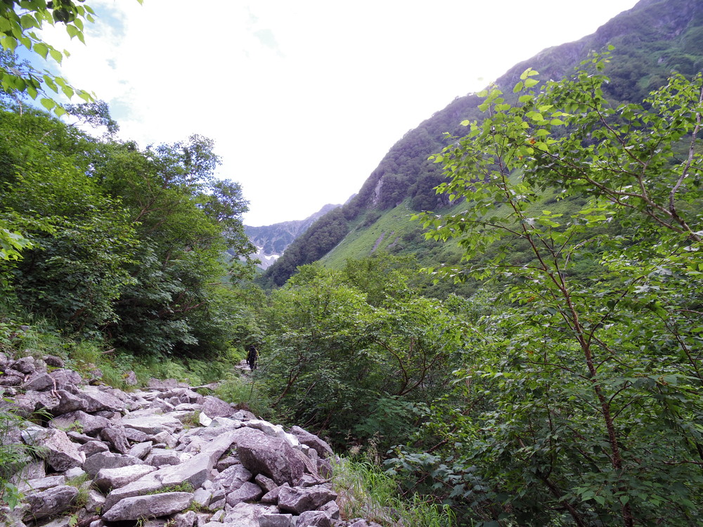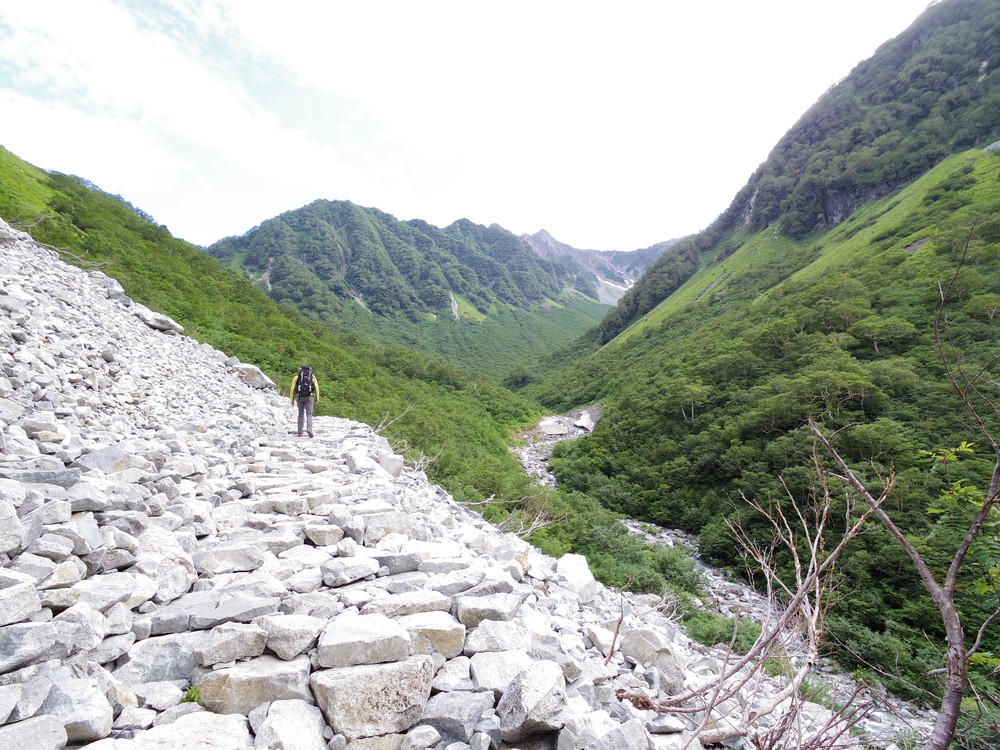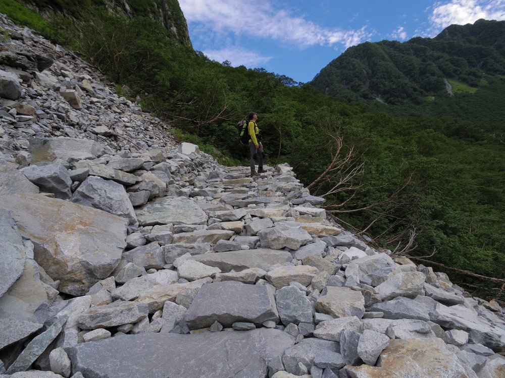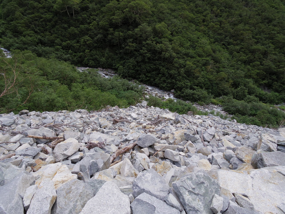 落石注意箇所。 立ち止まらずにすばやく通過しましょう。
