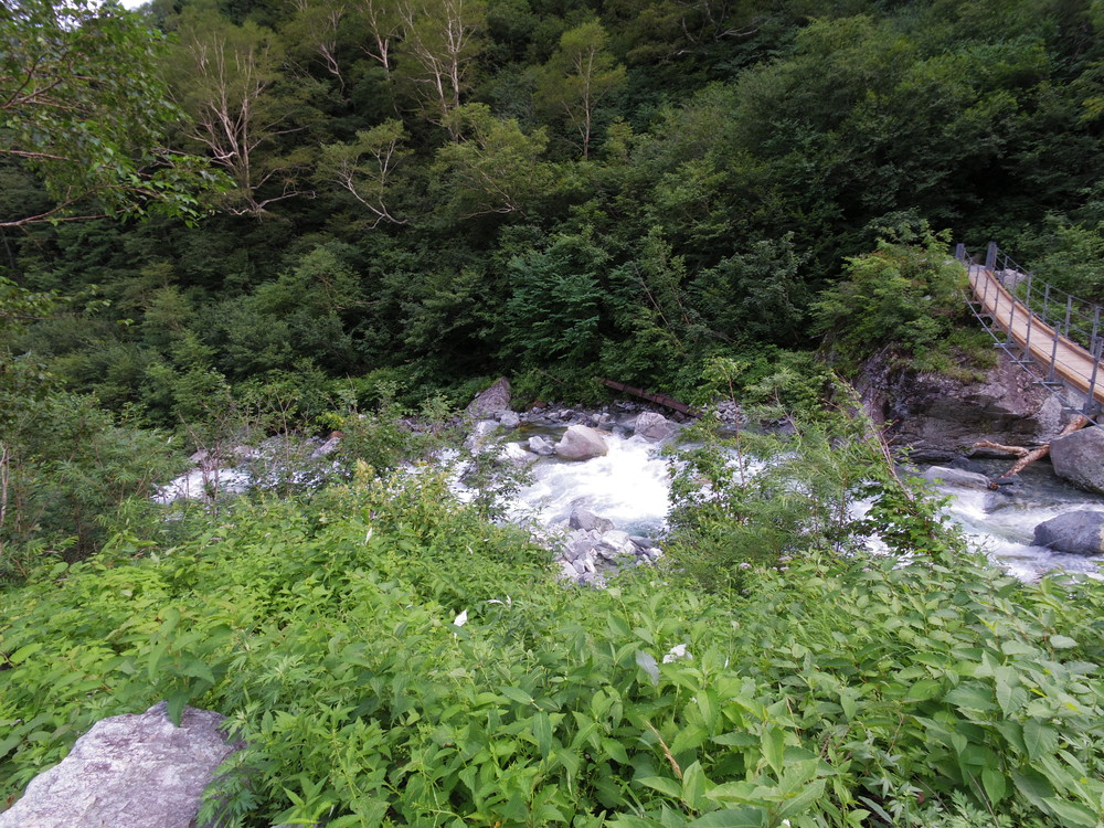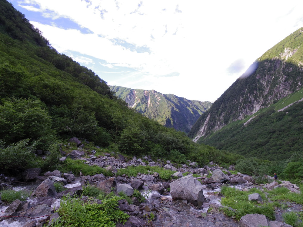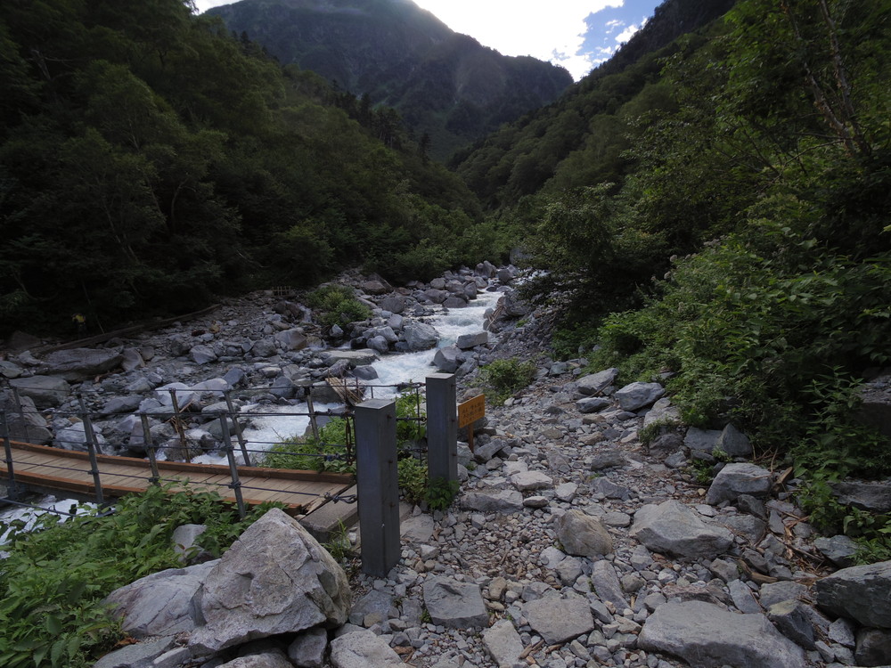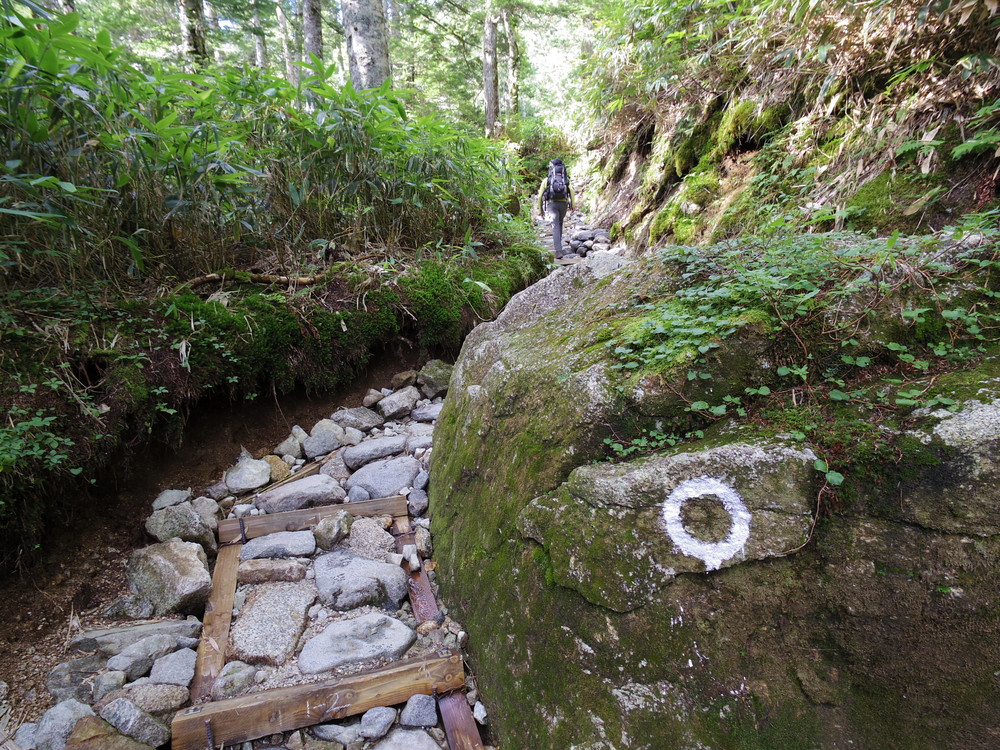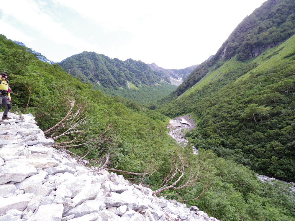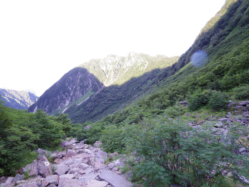 落石注意箇所。 立ち止まらずにすばやく通過しましょう。