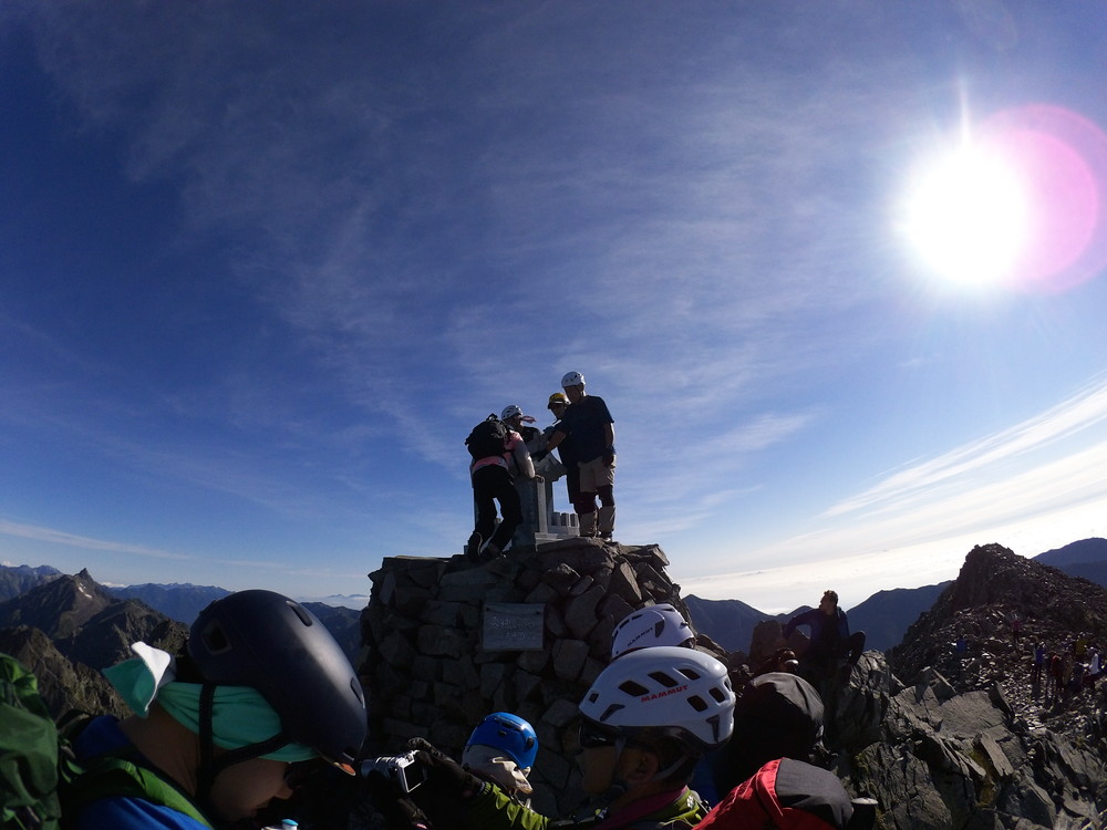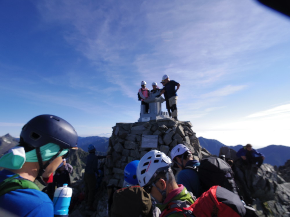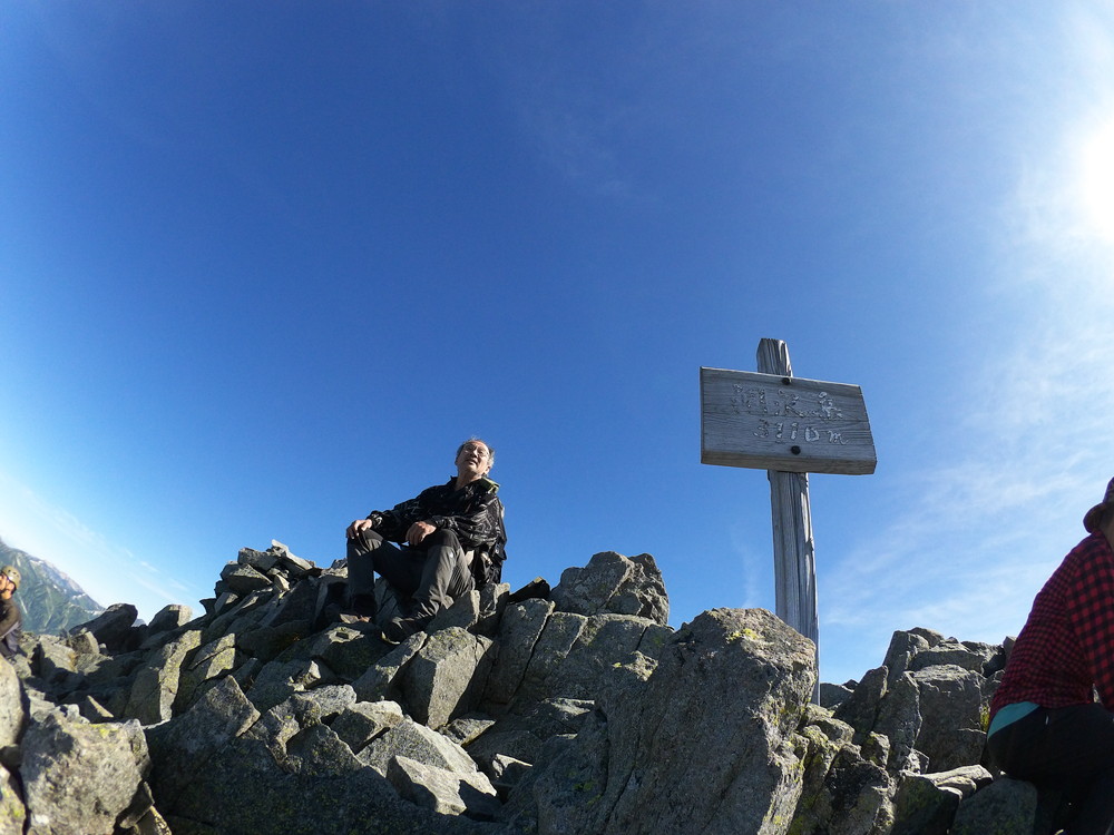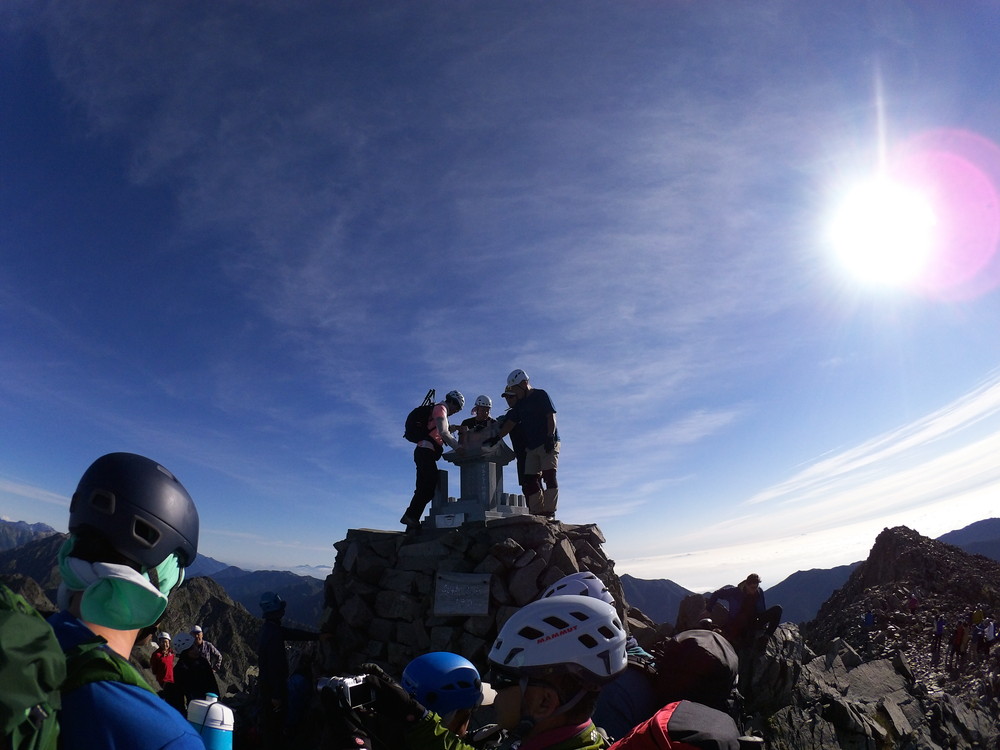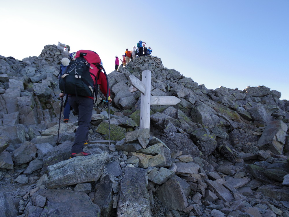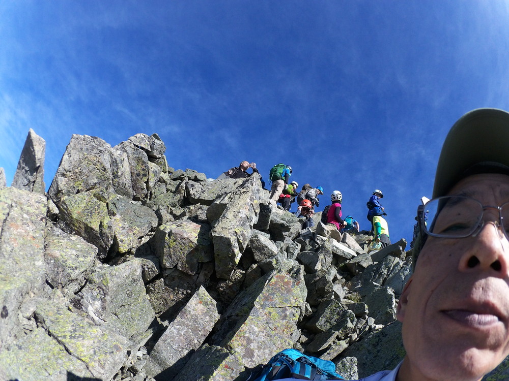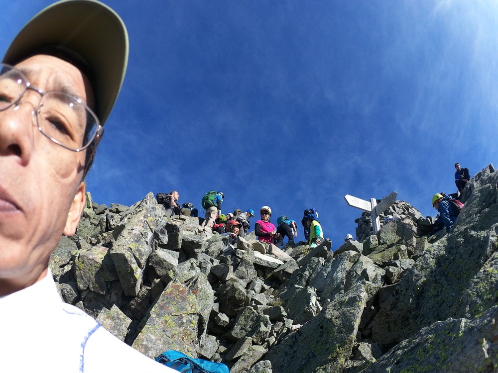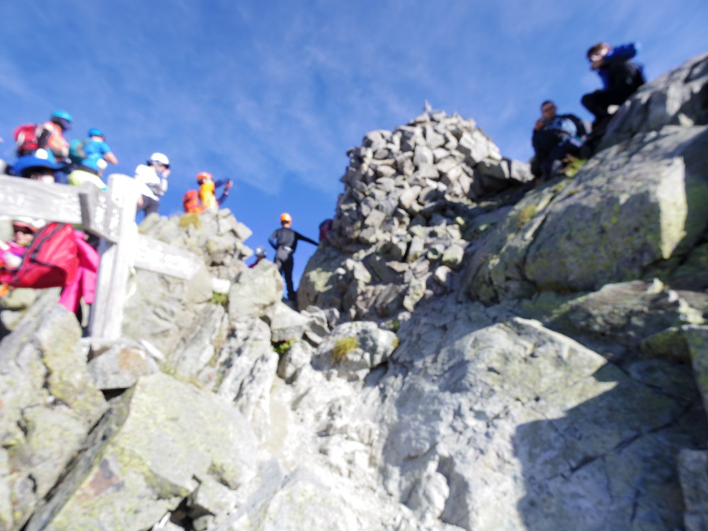 人ごみの奥穂山頂を抜け出て 北隣の頂に