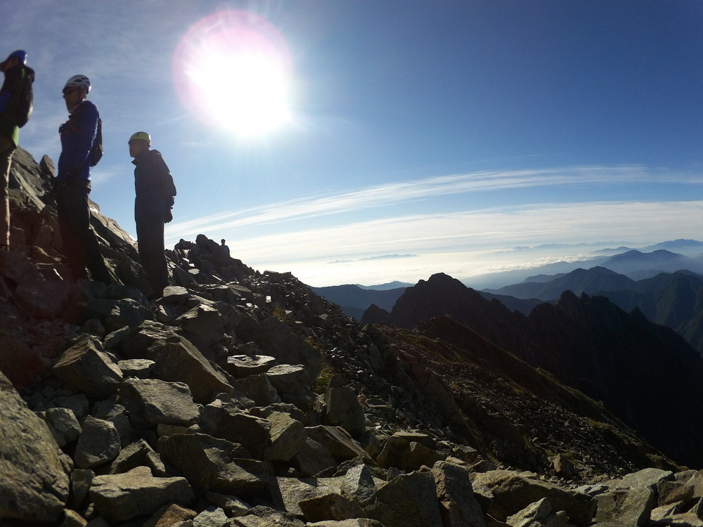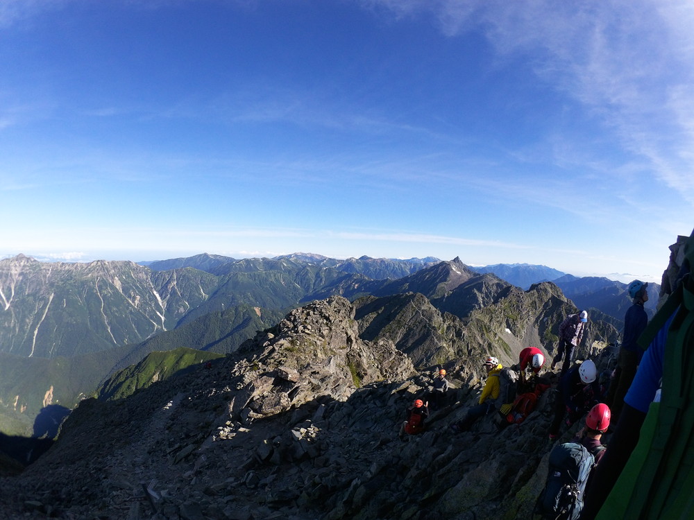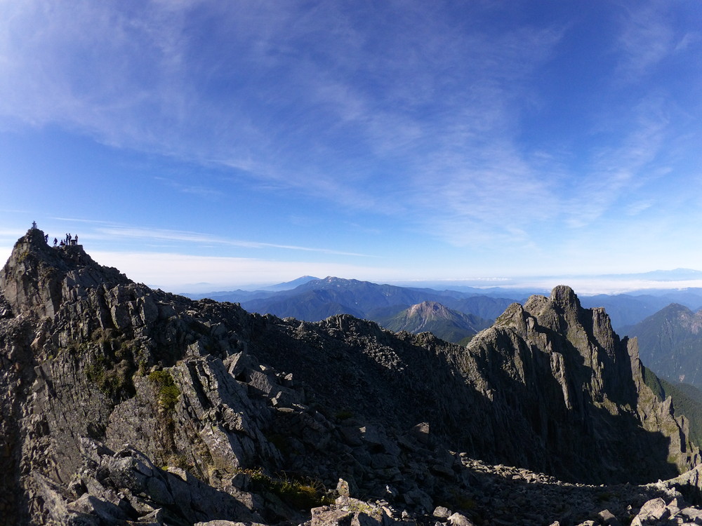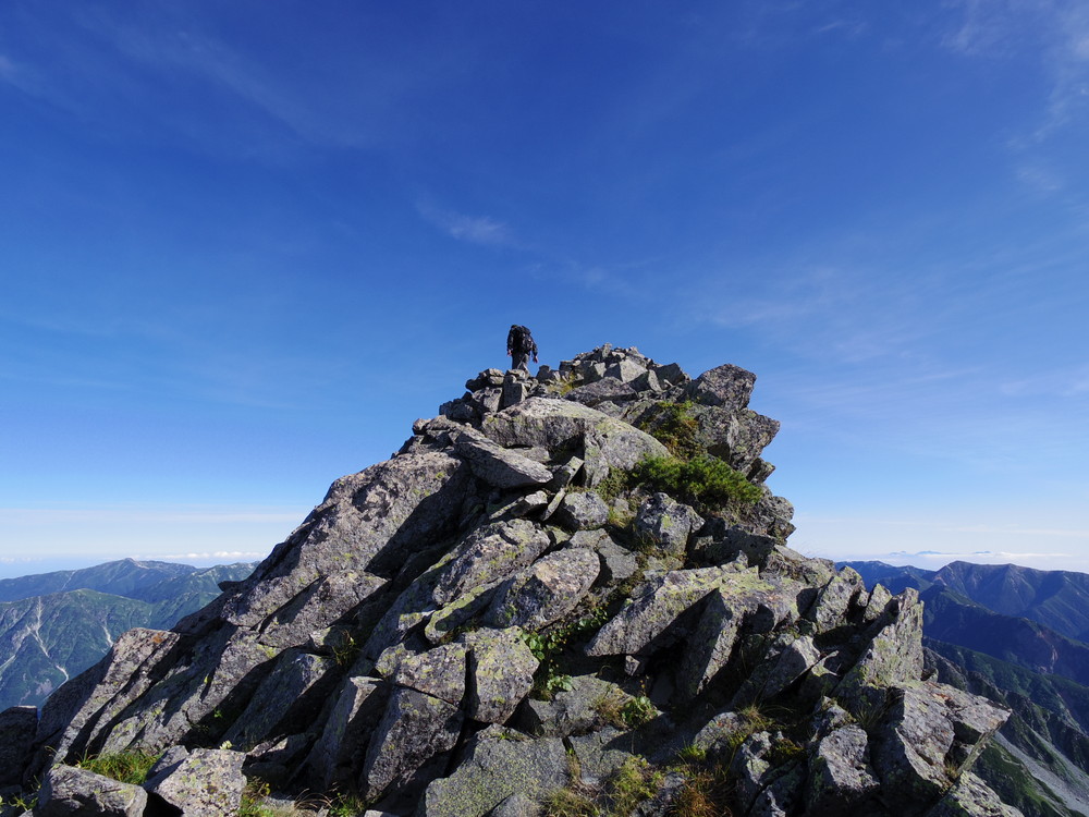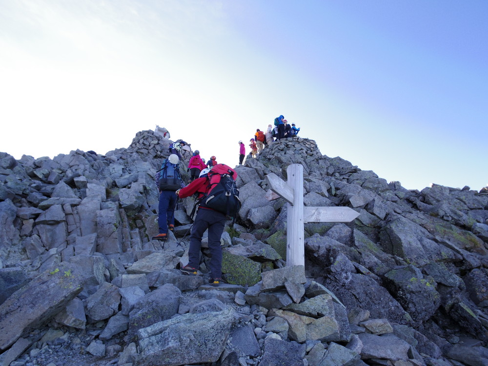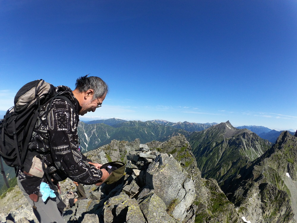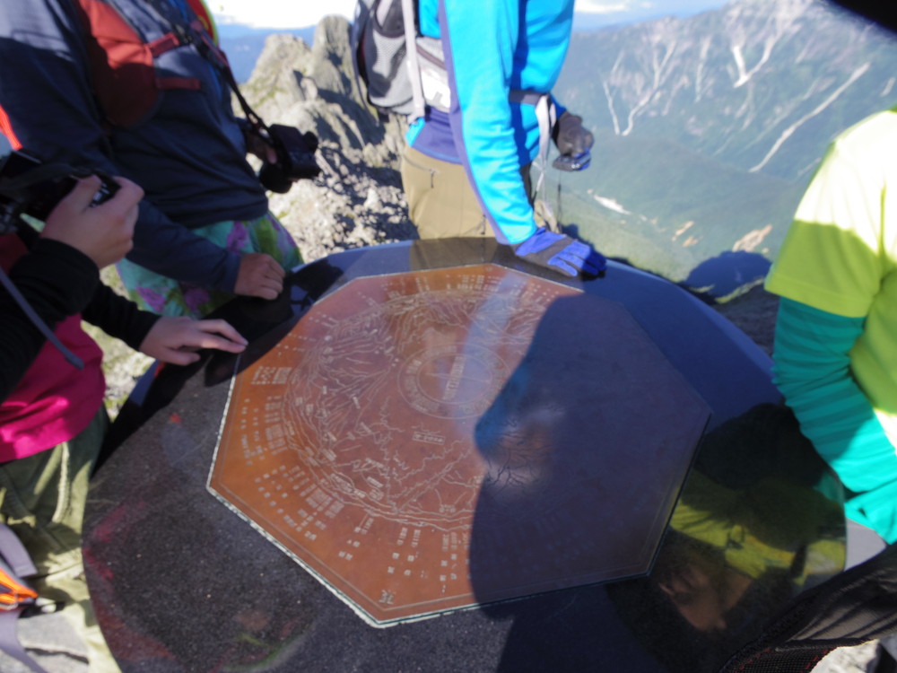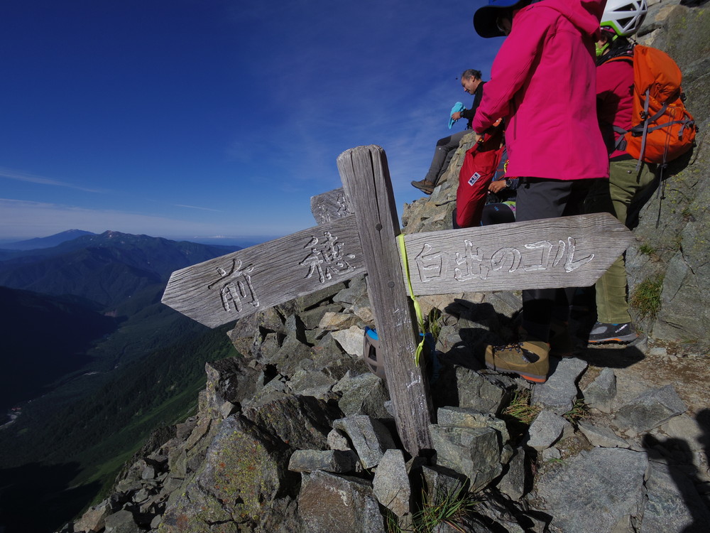 人ごみの奥穂山頂を抜け出て 北隣の頂に