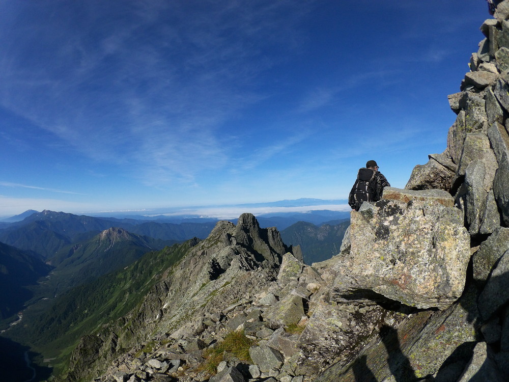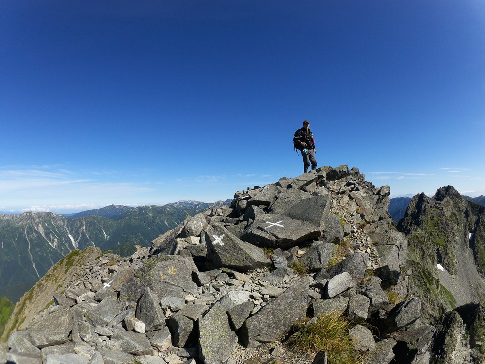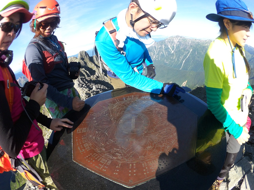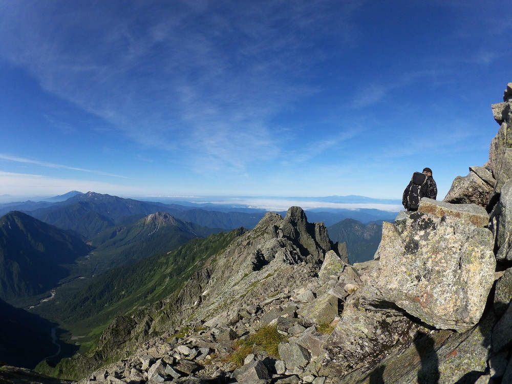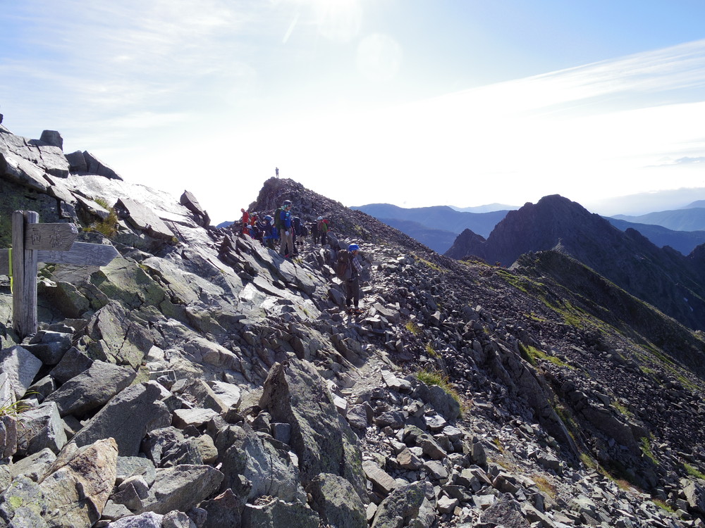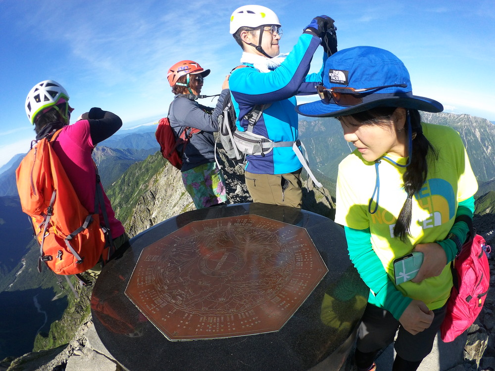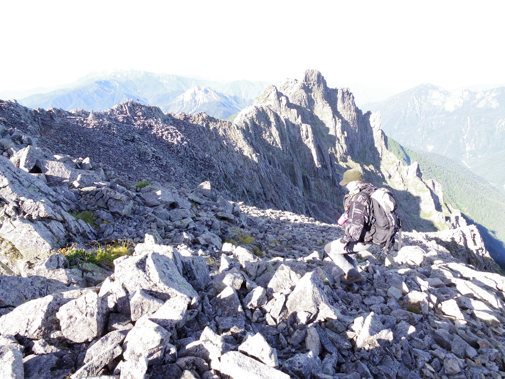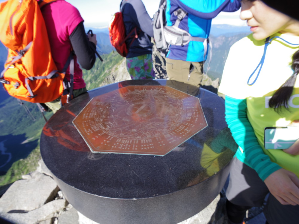 人ごみの奥穂山頂を抜け出て 北隣の頂に