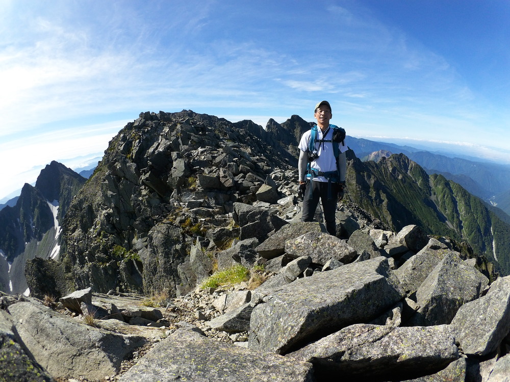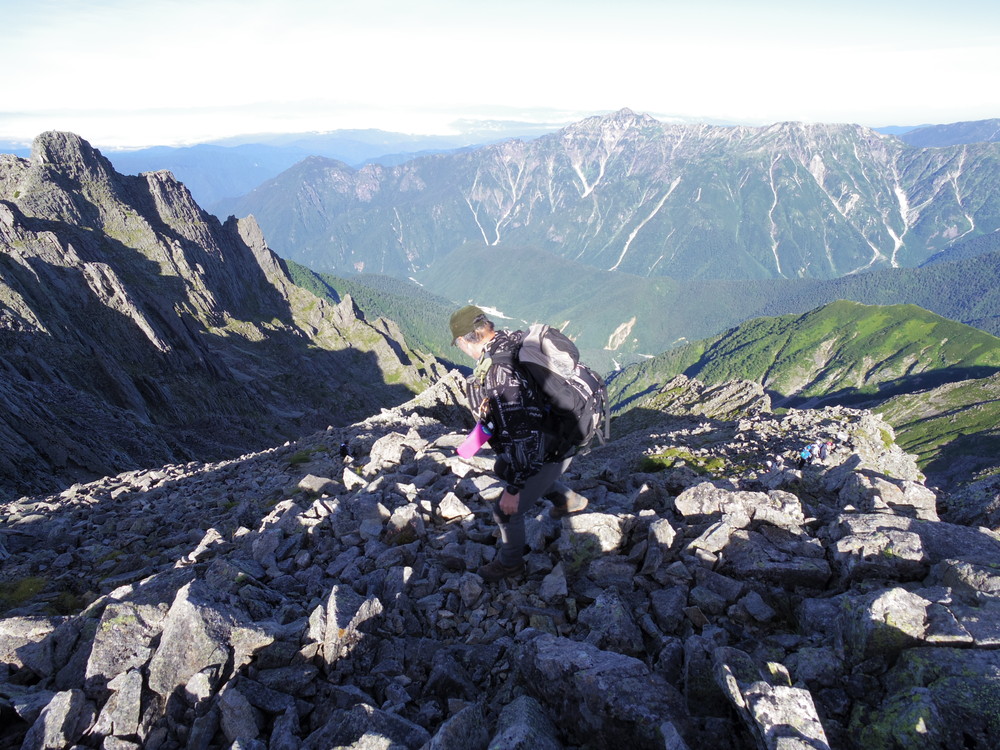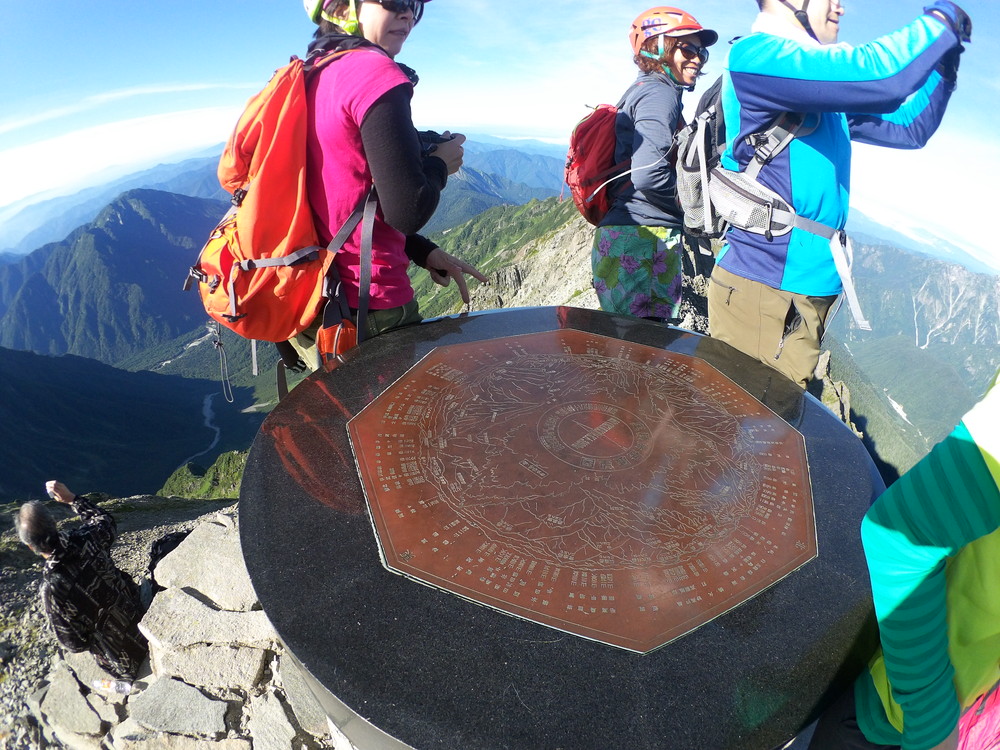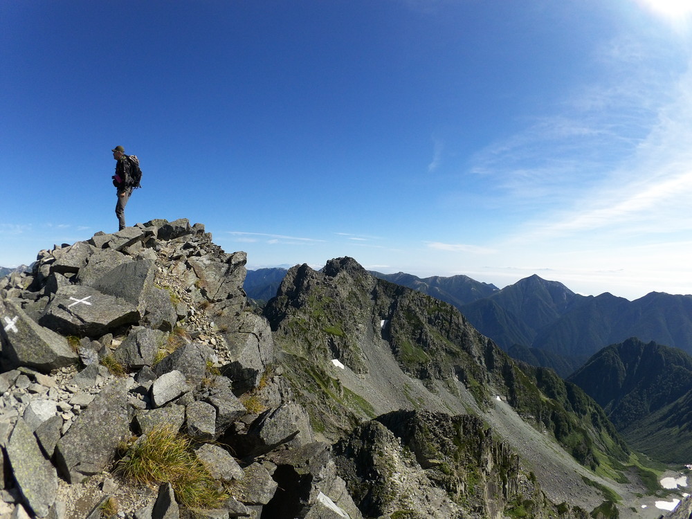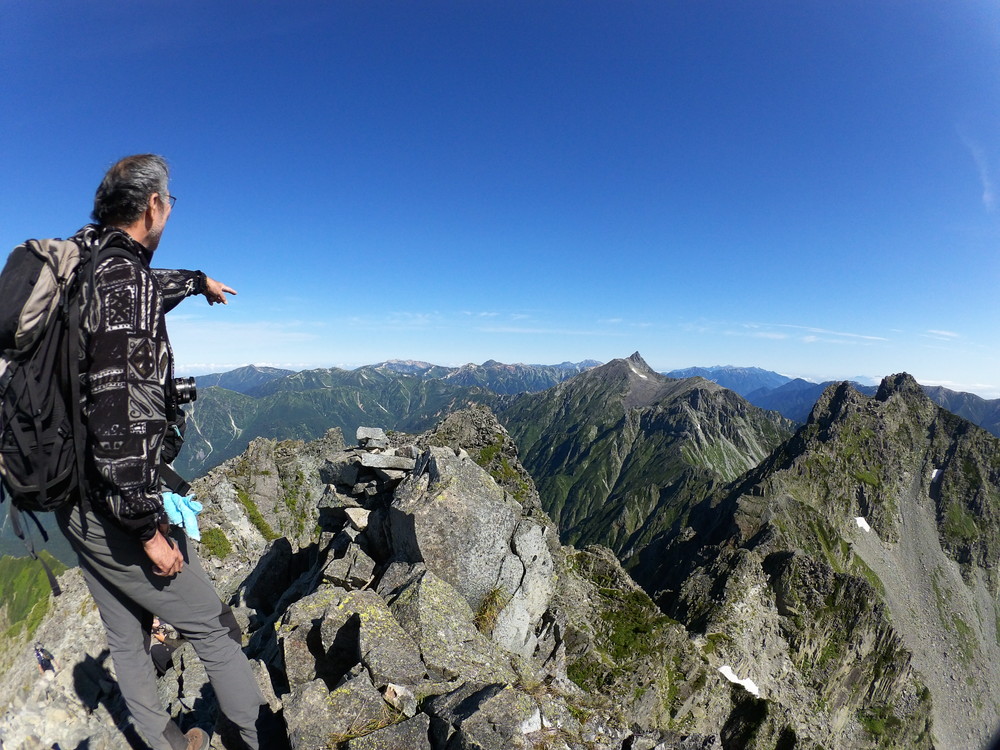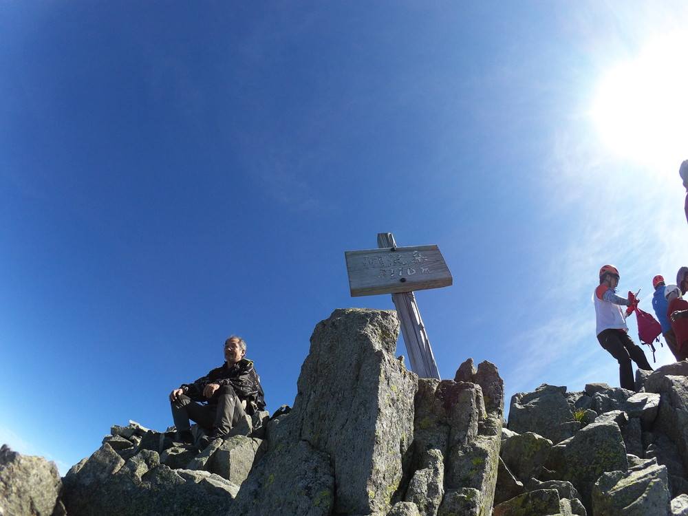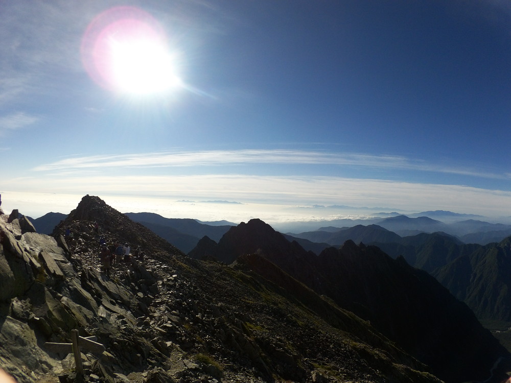 人ごみの奥穂山頂を抜け出て 北隣の頂に
