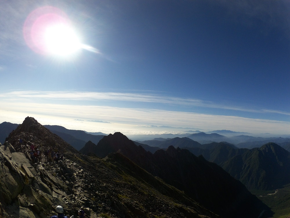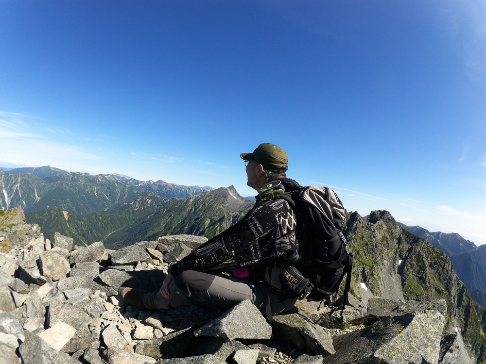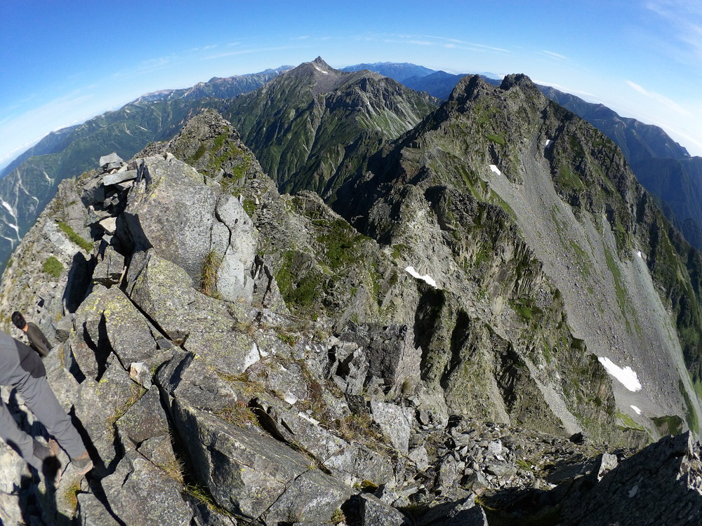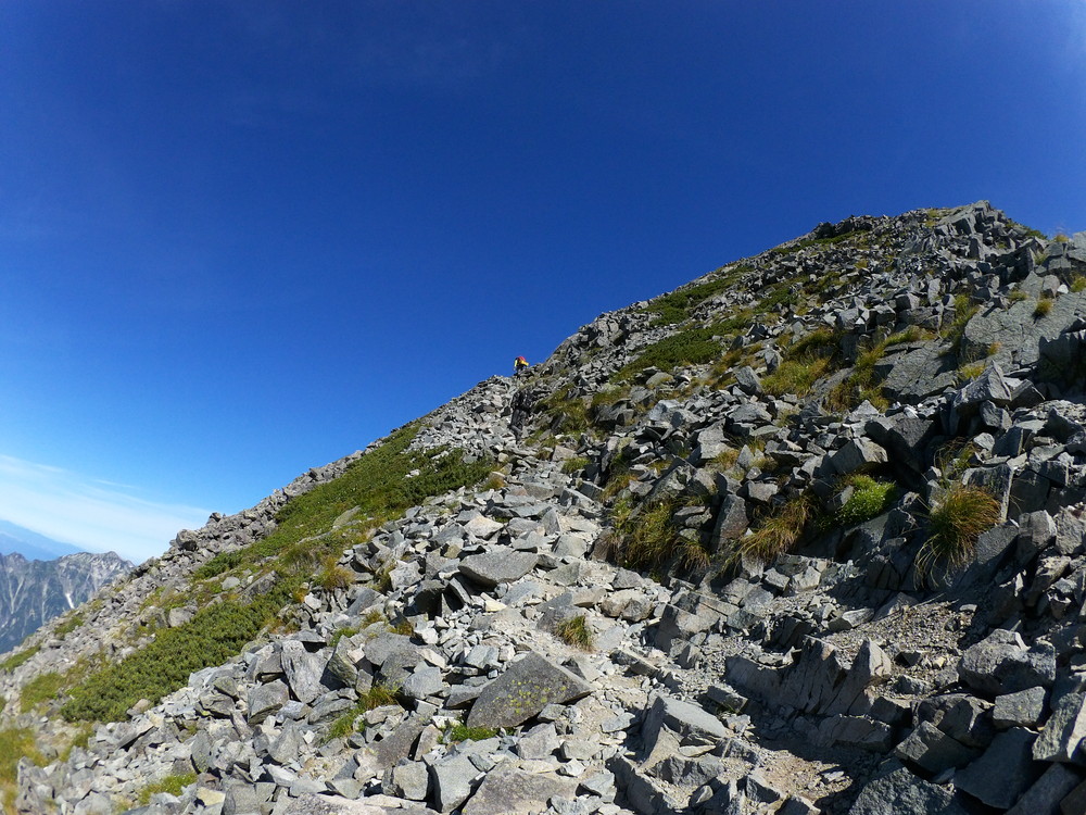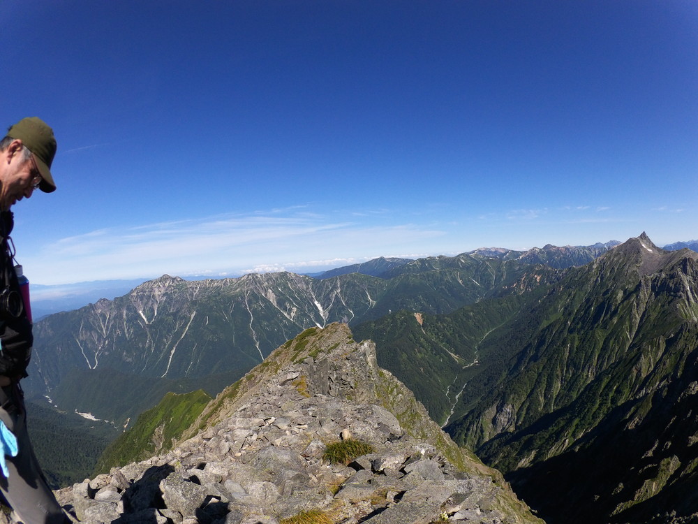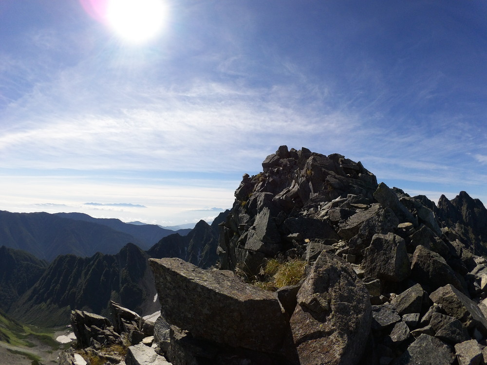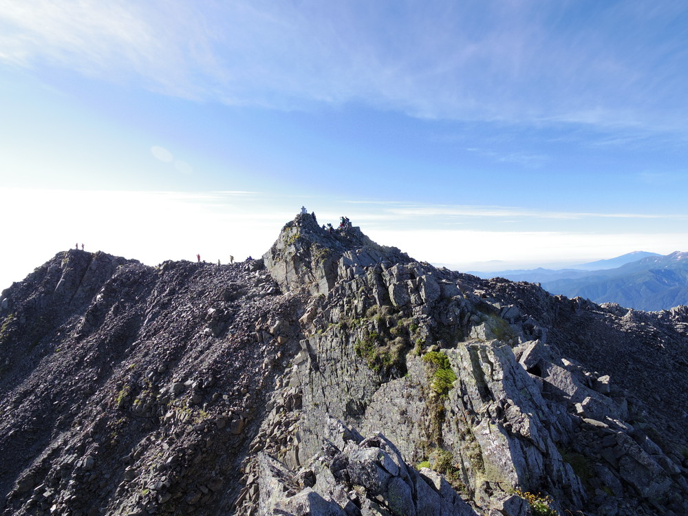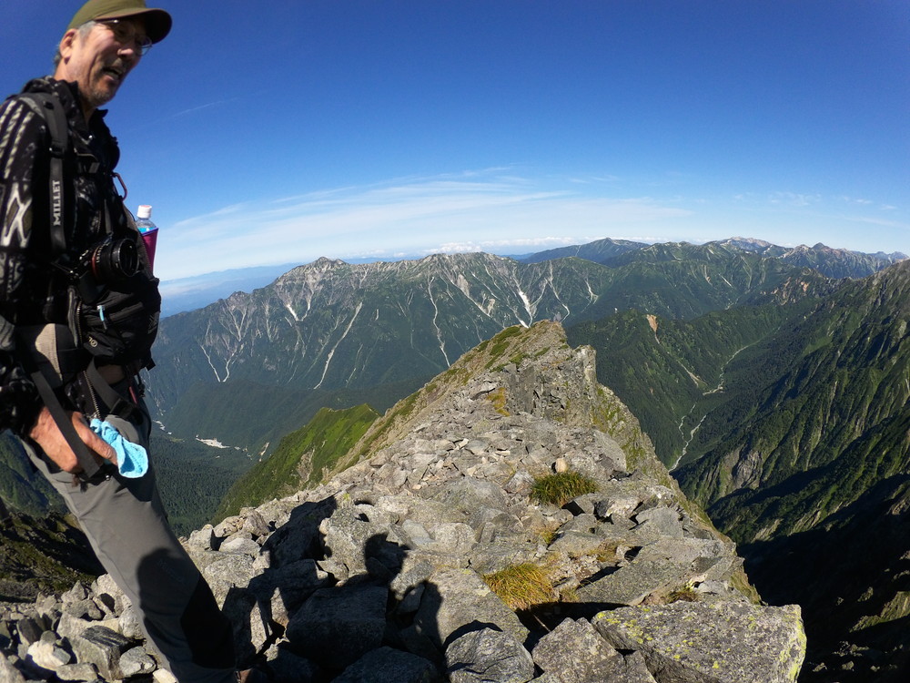 人ごみの奥穂山頂を抜け出て 北隣の頂に
