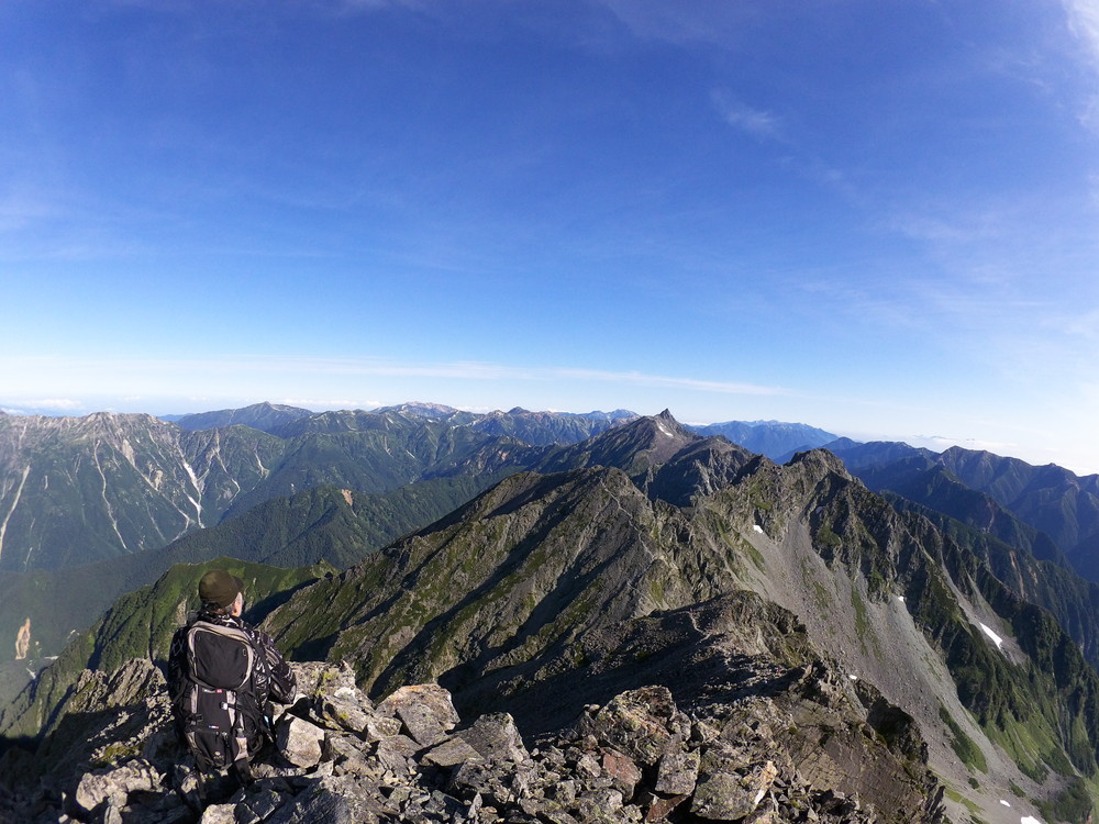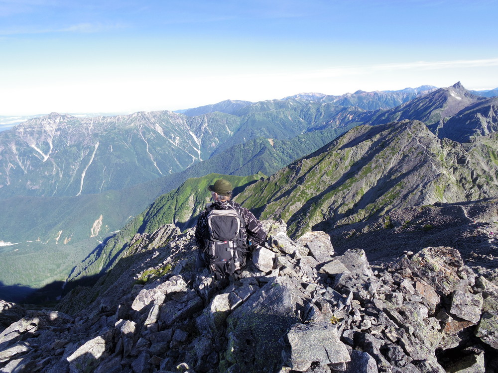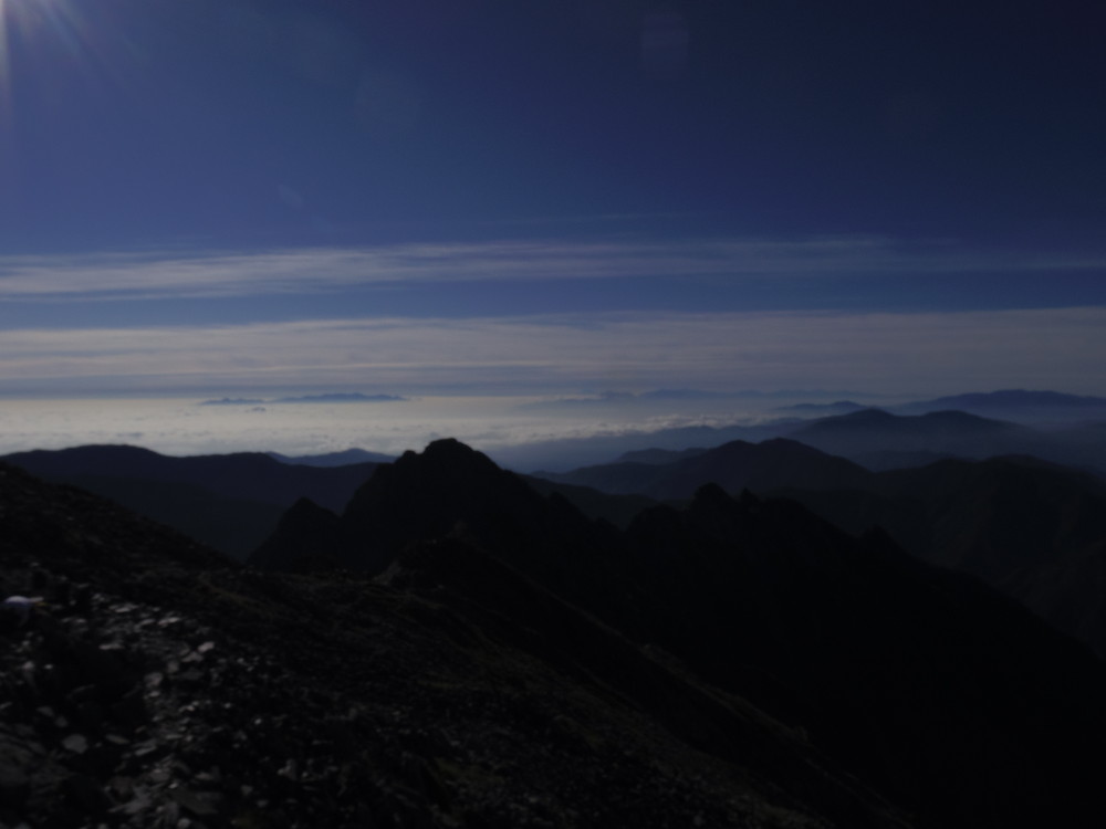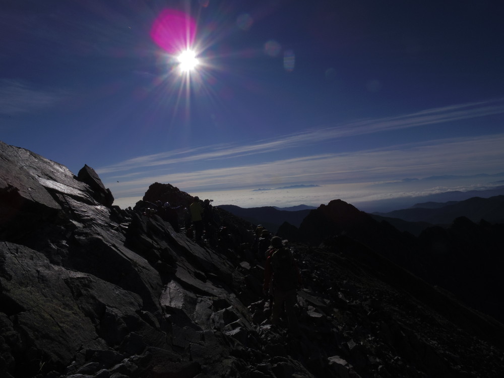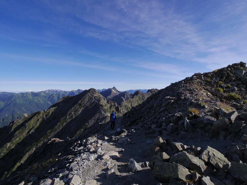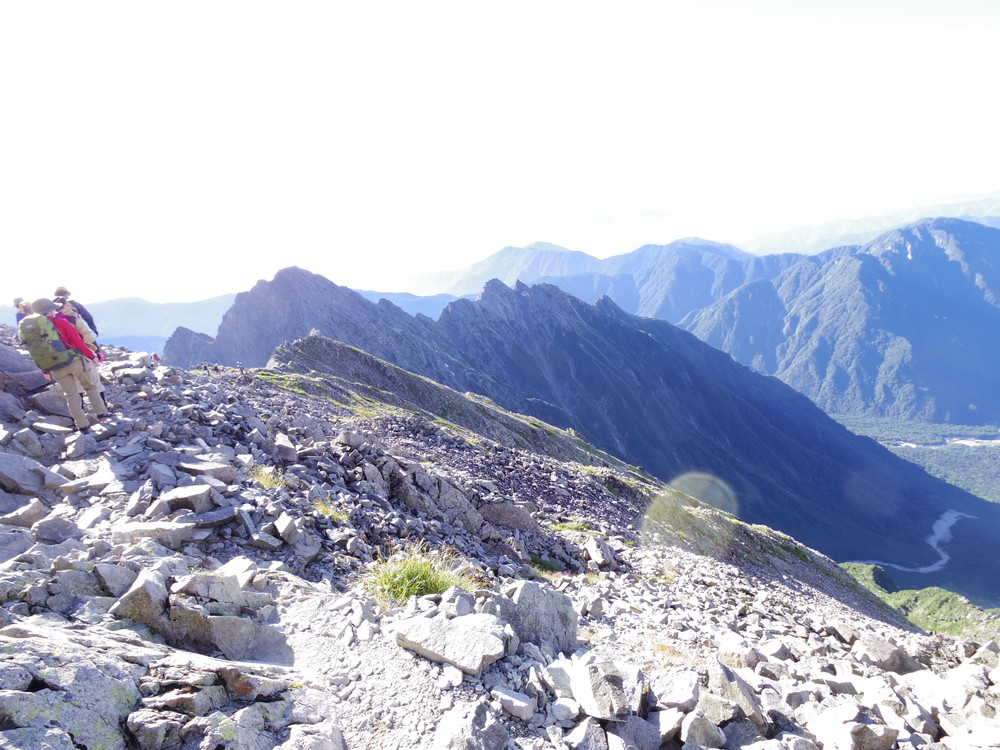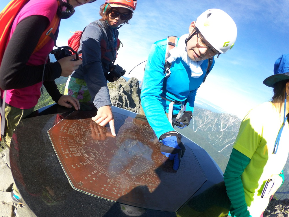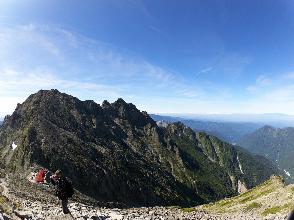 人ごみの奥穂山頂を抜け出て 北隣の頂に