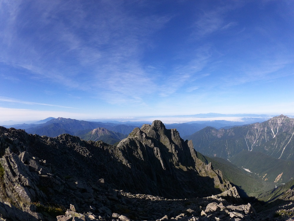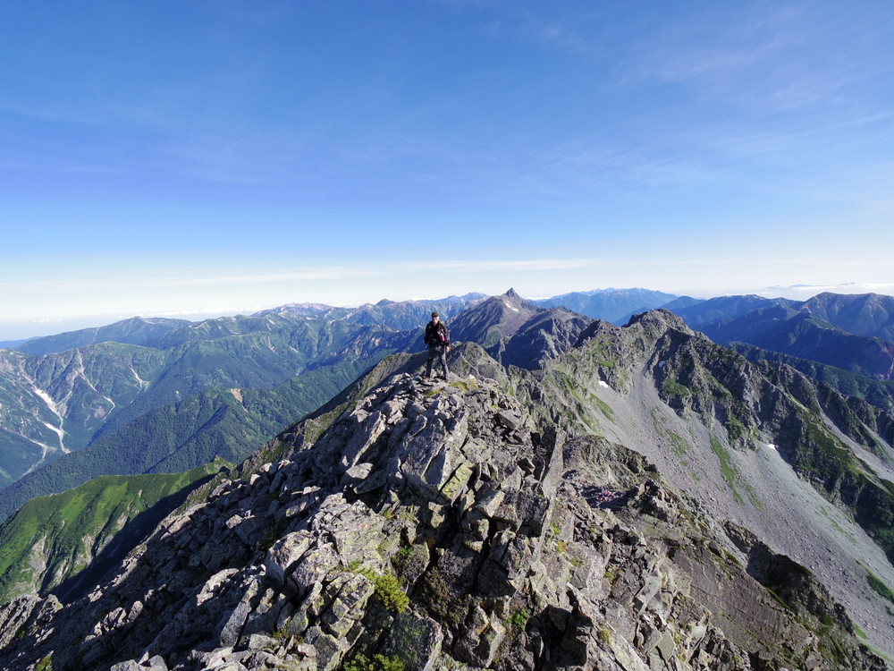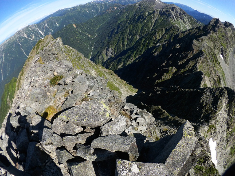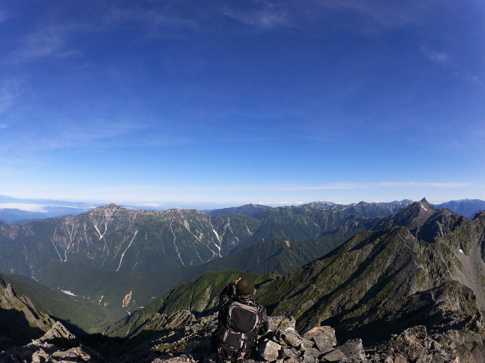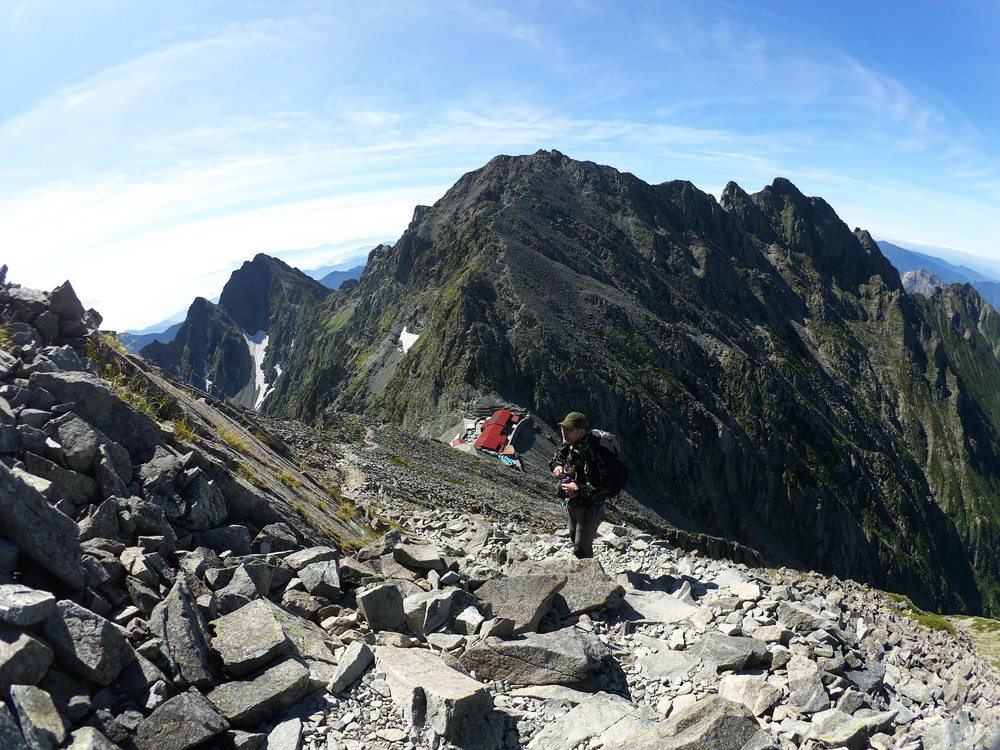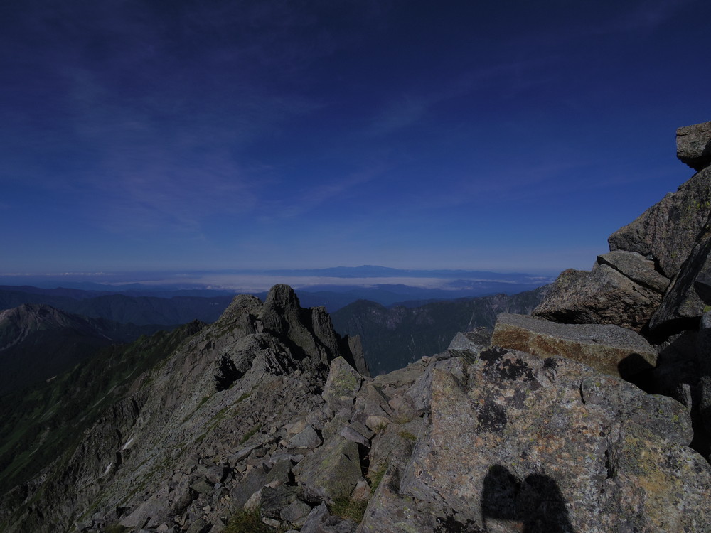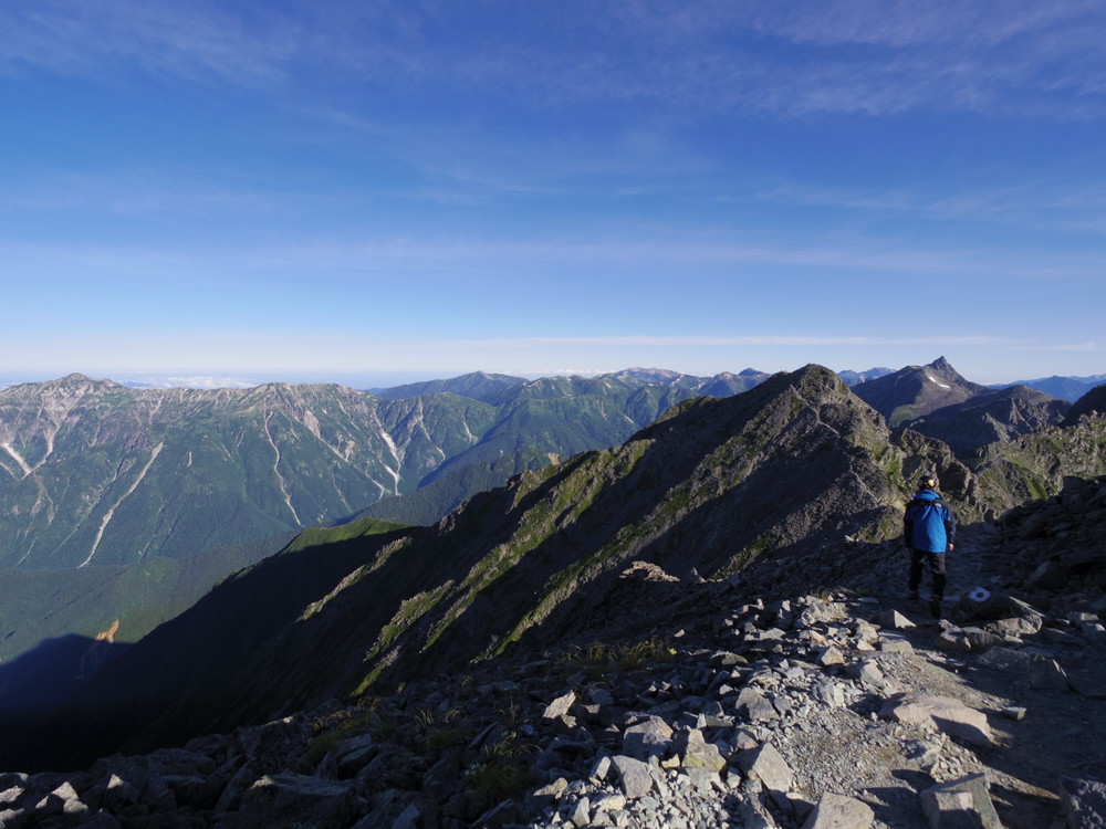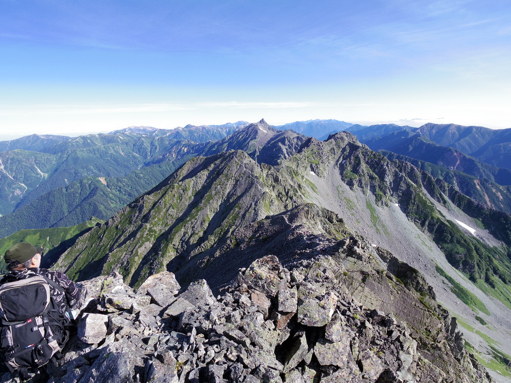 人ごみの奥穂山頂を抜け出て 北隣の頂に