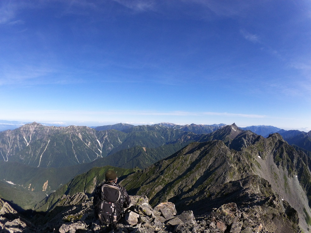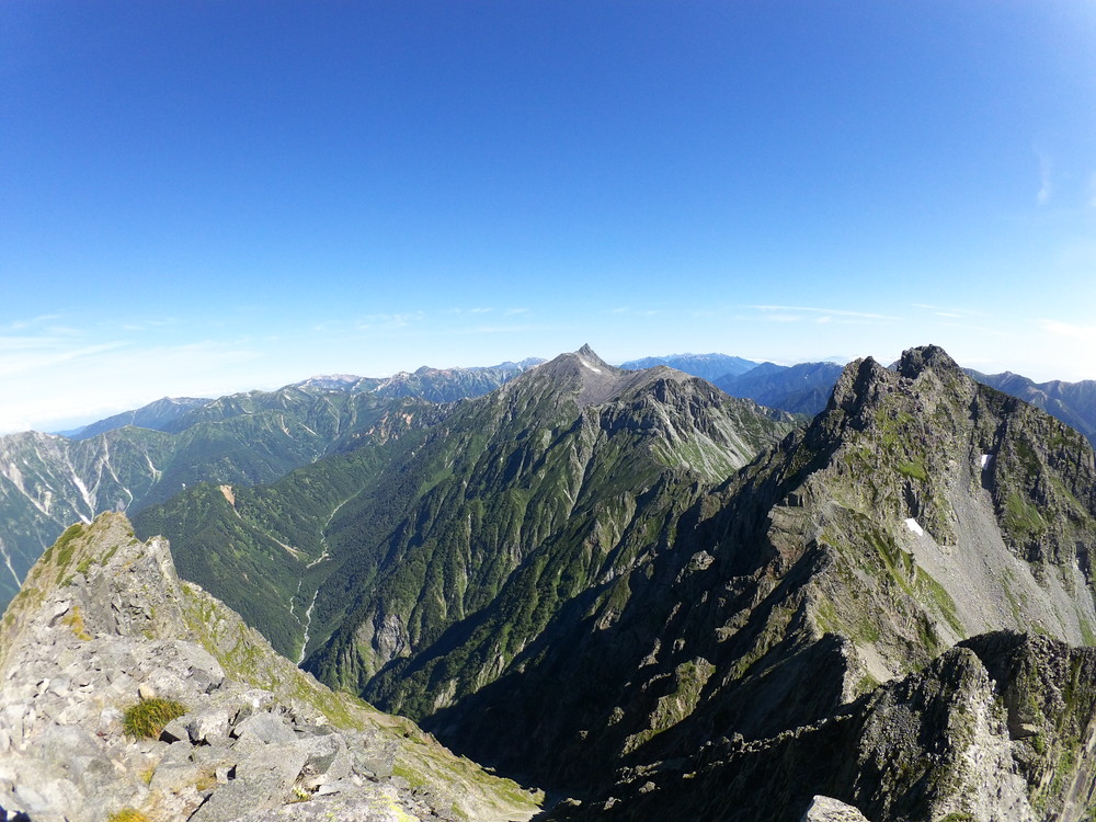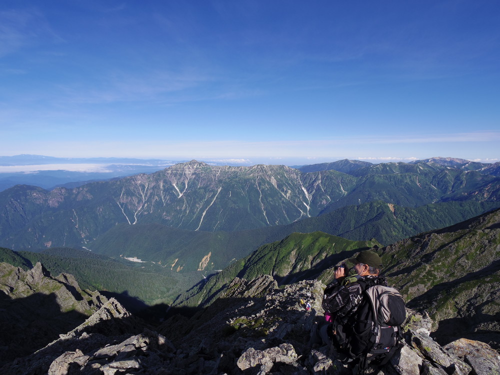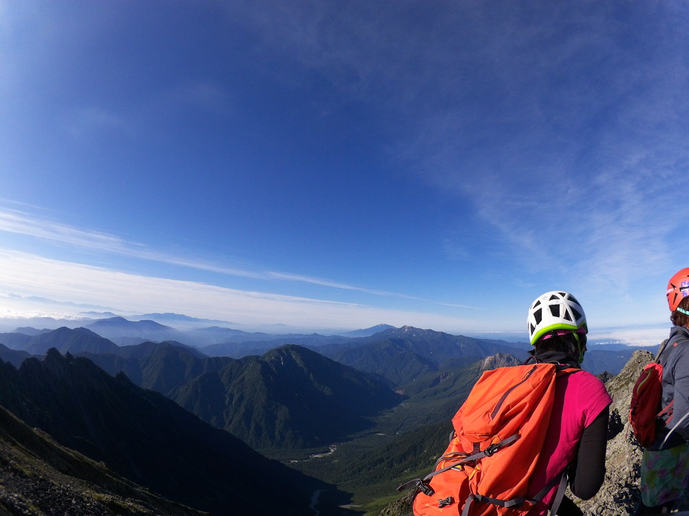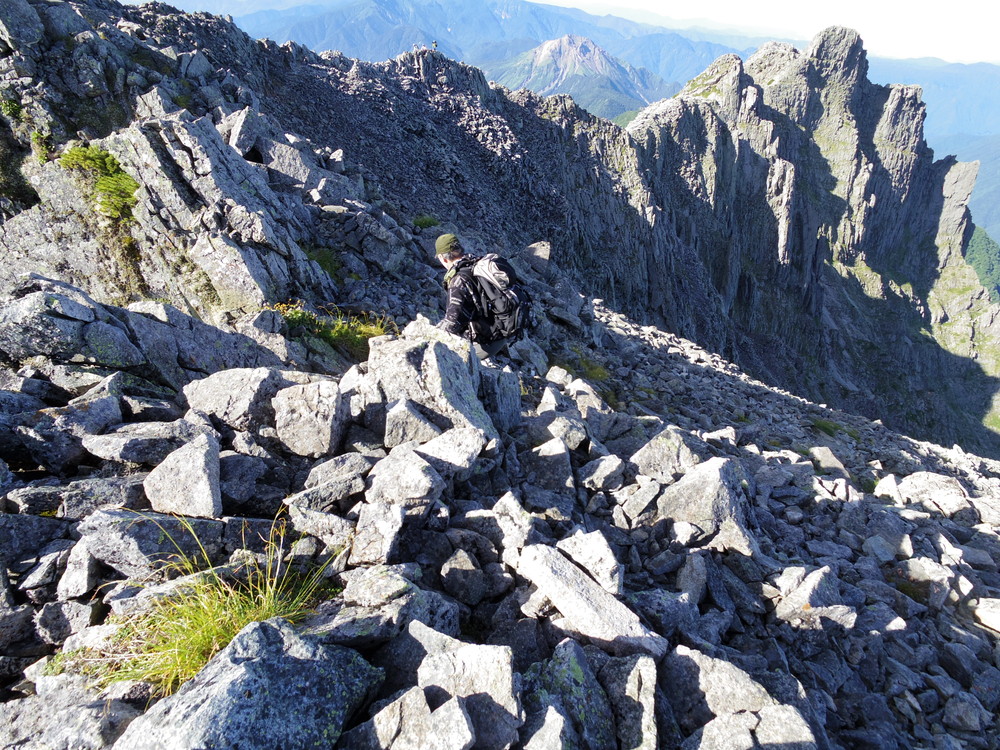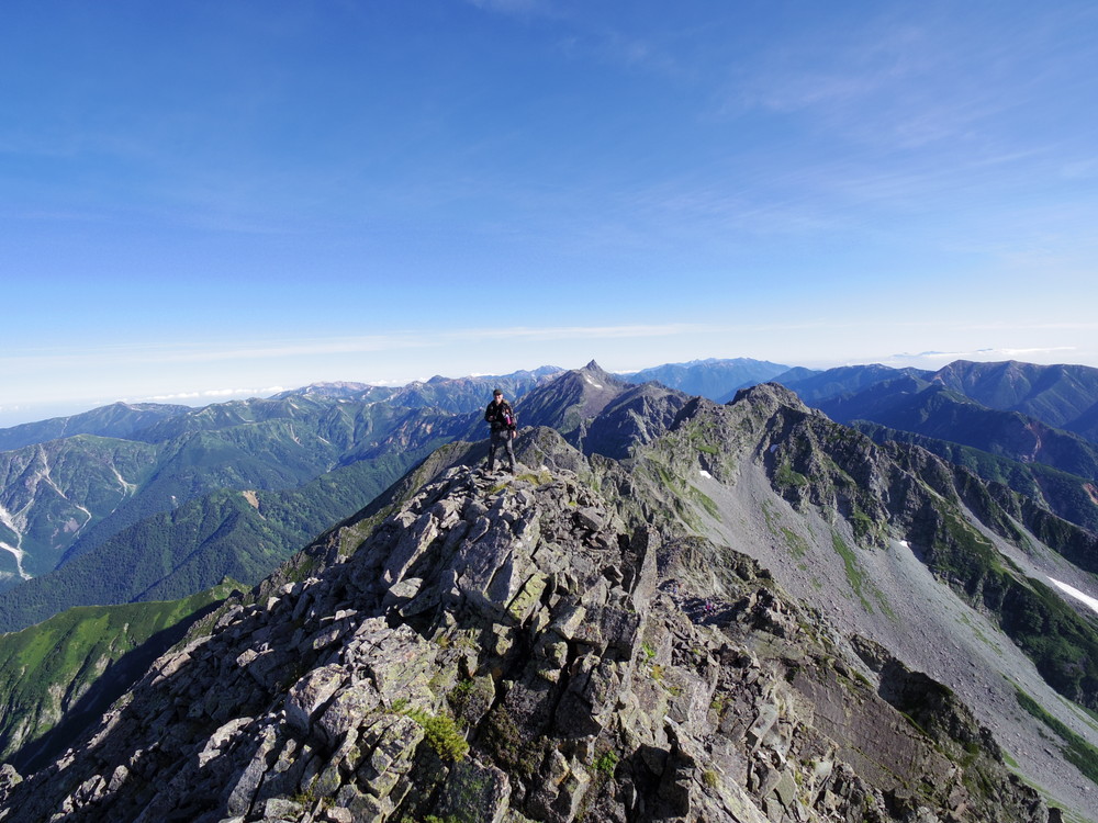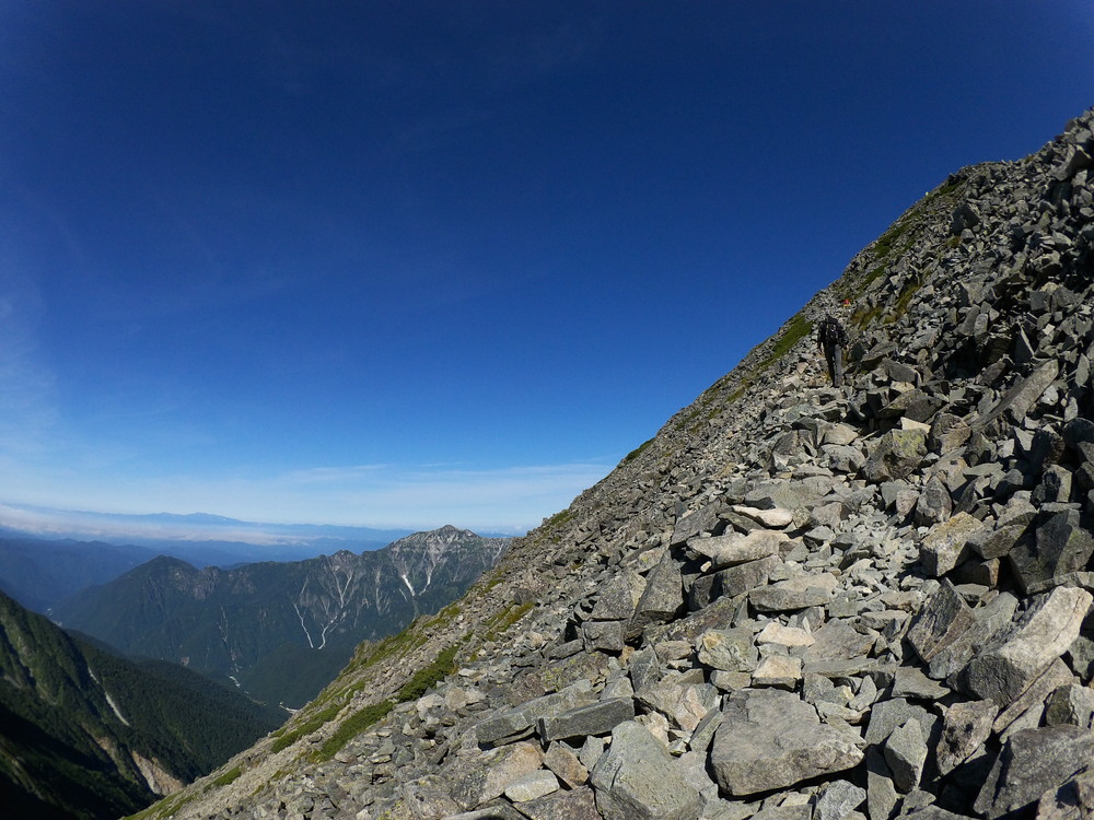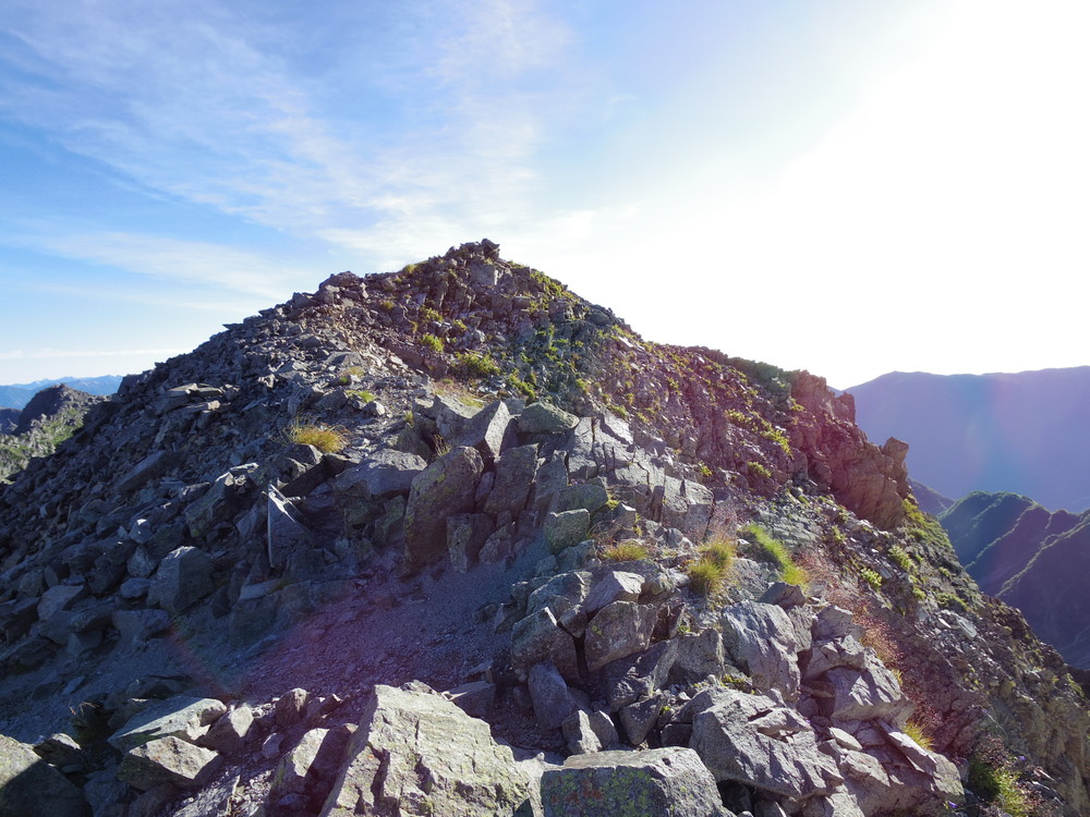 人ごみの奥穂山頂を抜け出て 北隣の頂に