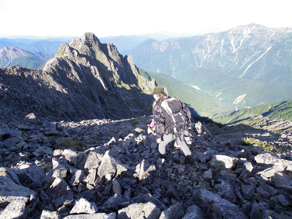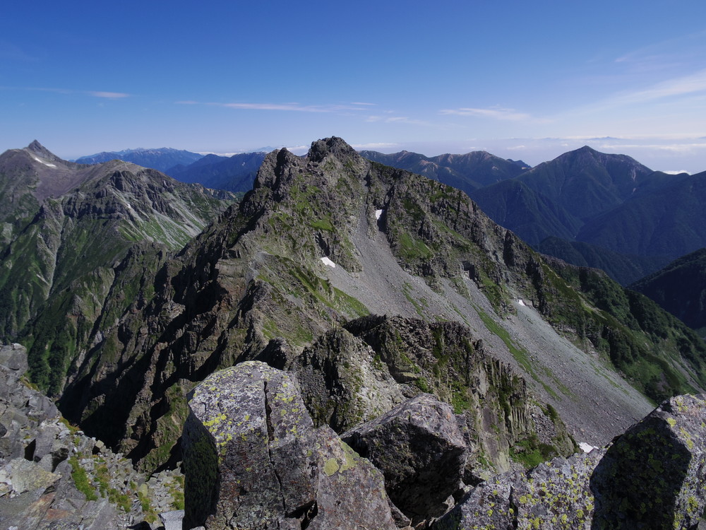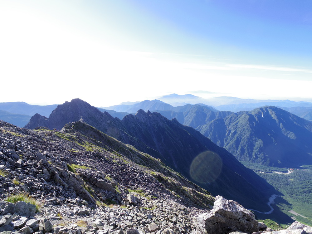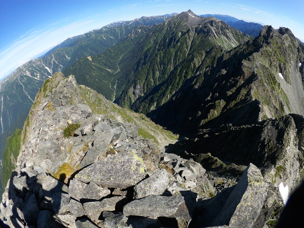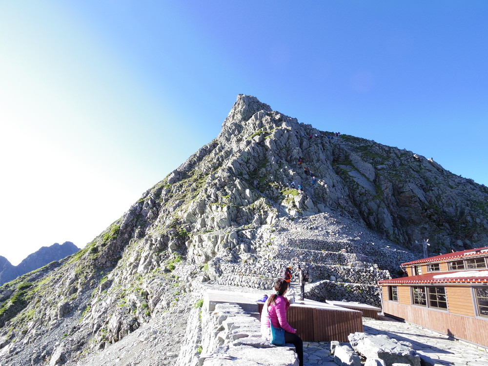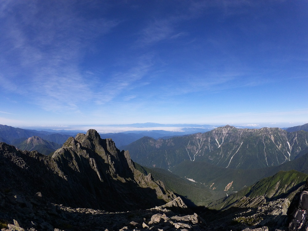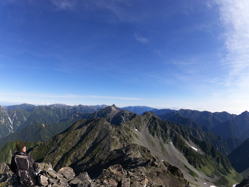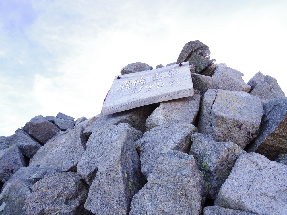 人ごみの奥穂山頂を抜け出て 北隣の頂に