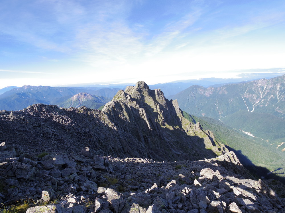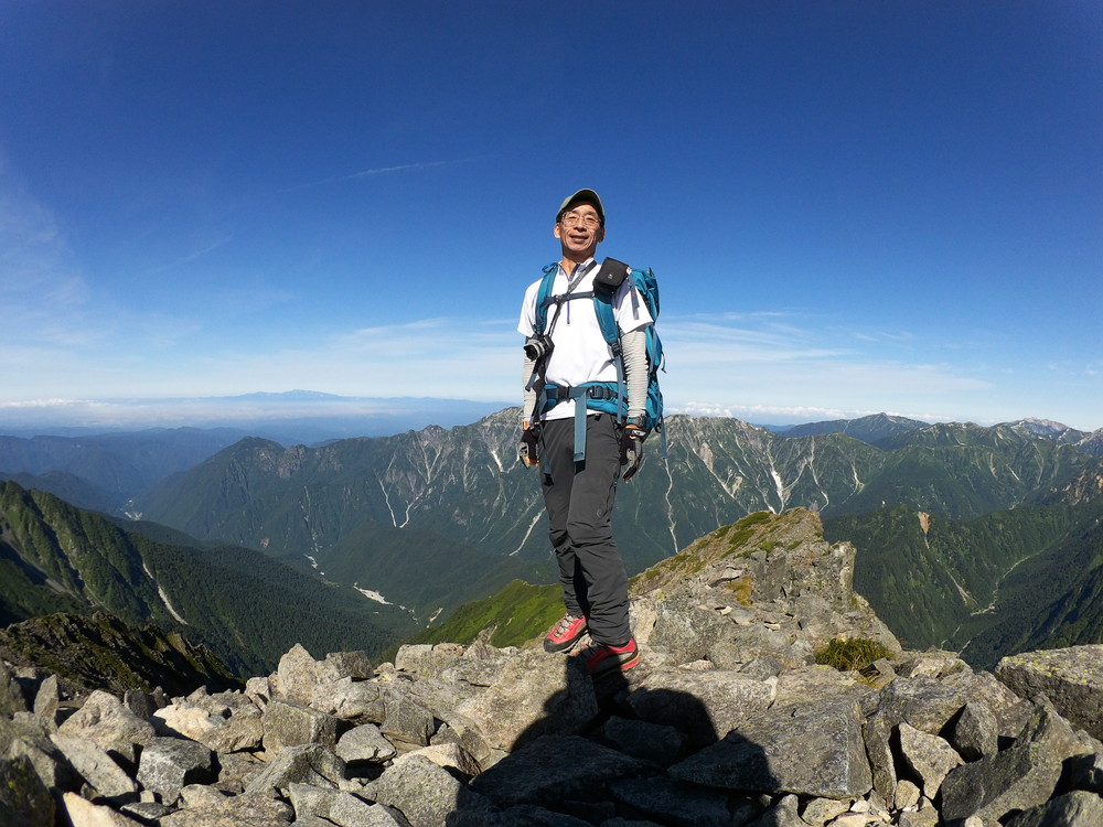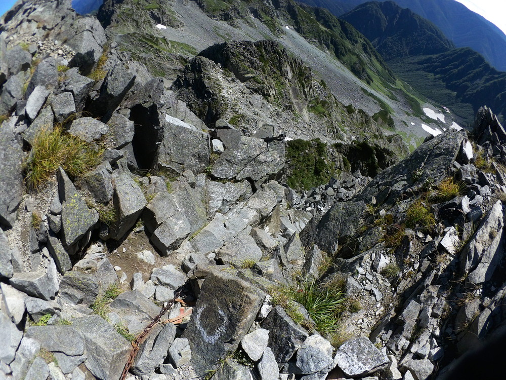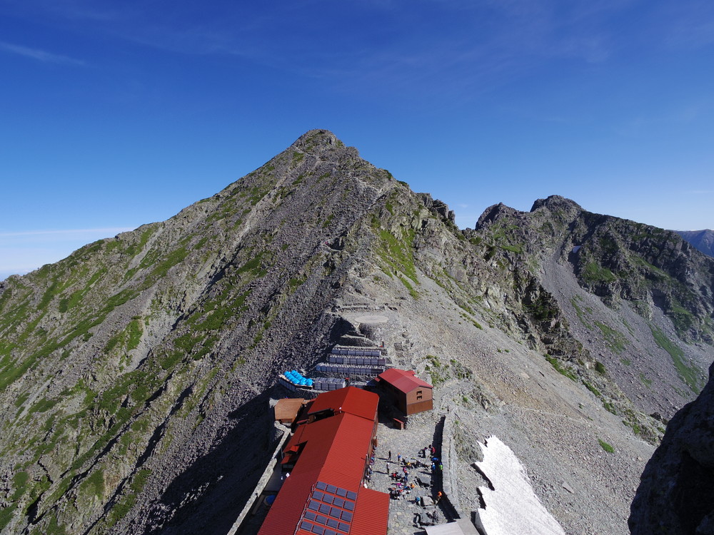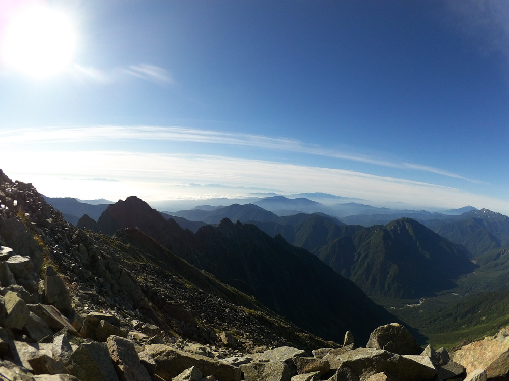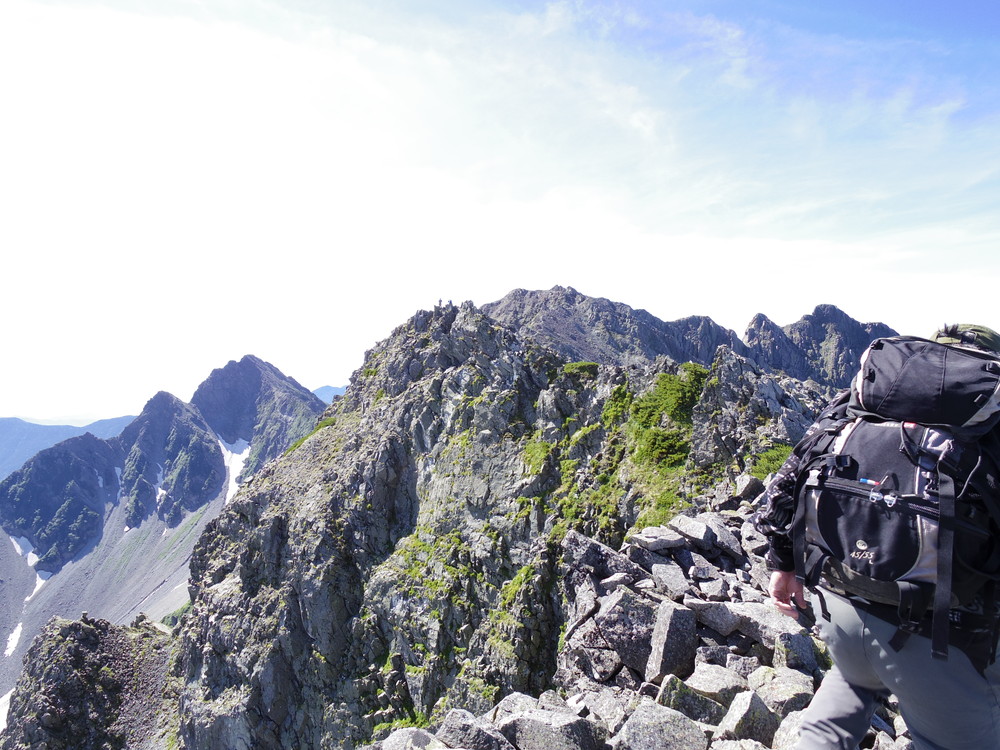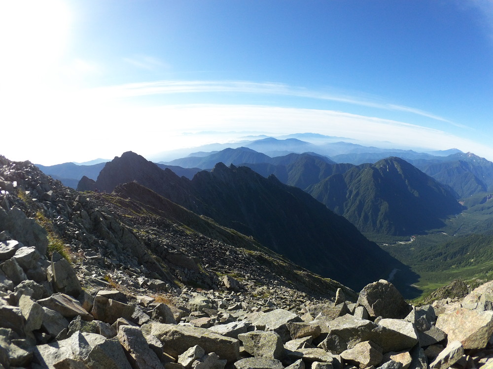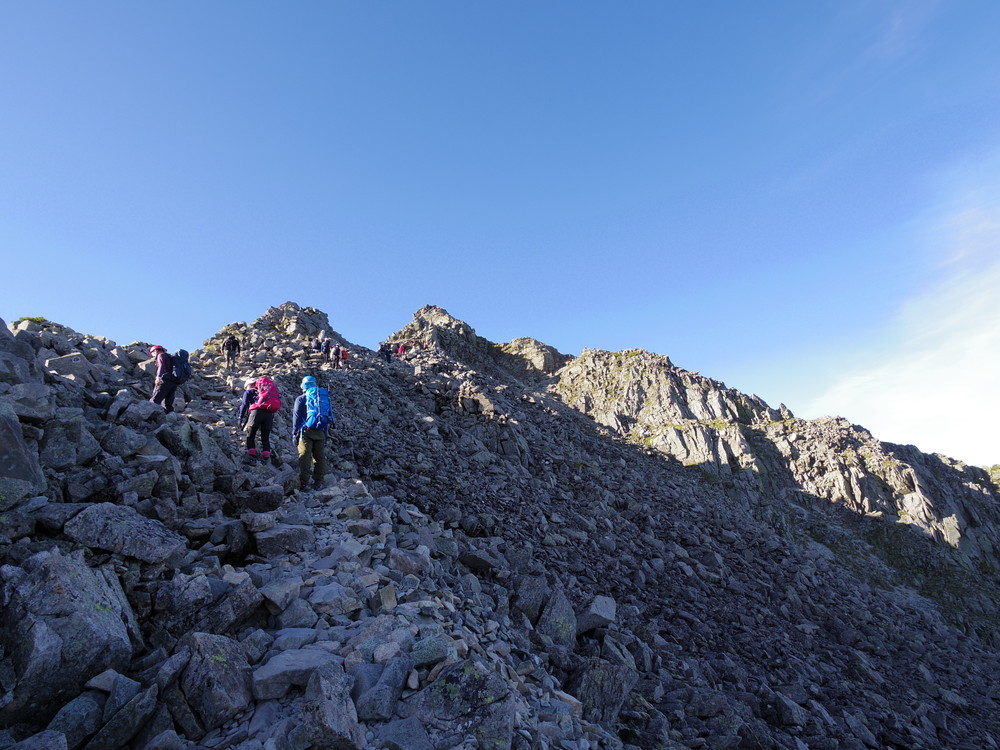 人ごみの奥穂山頂を抜け出て 北隣の頂に