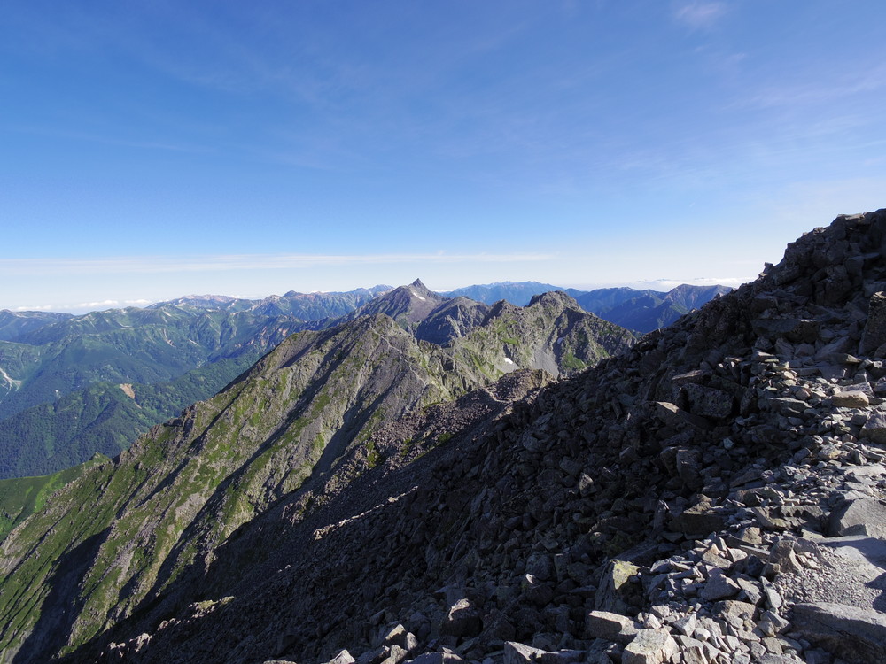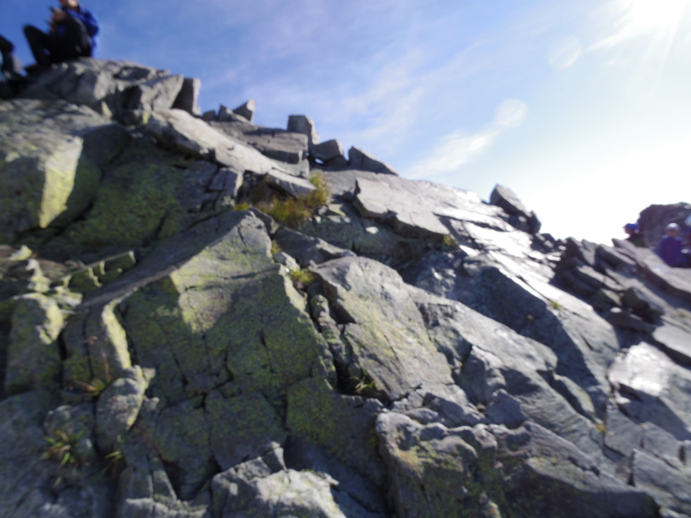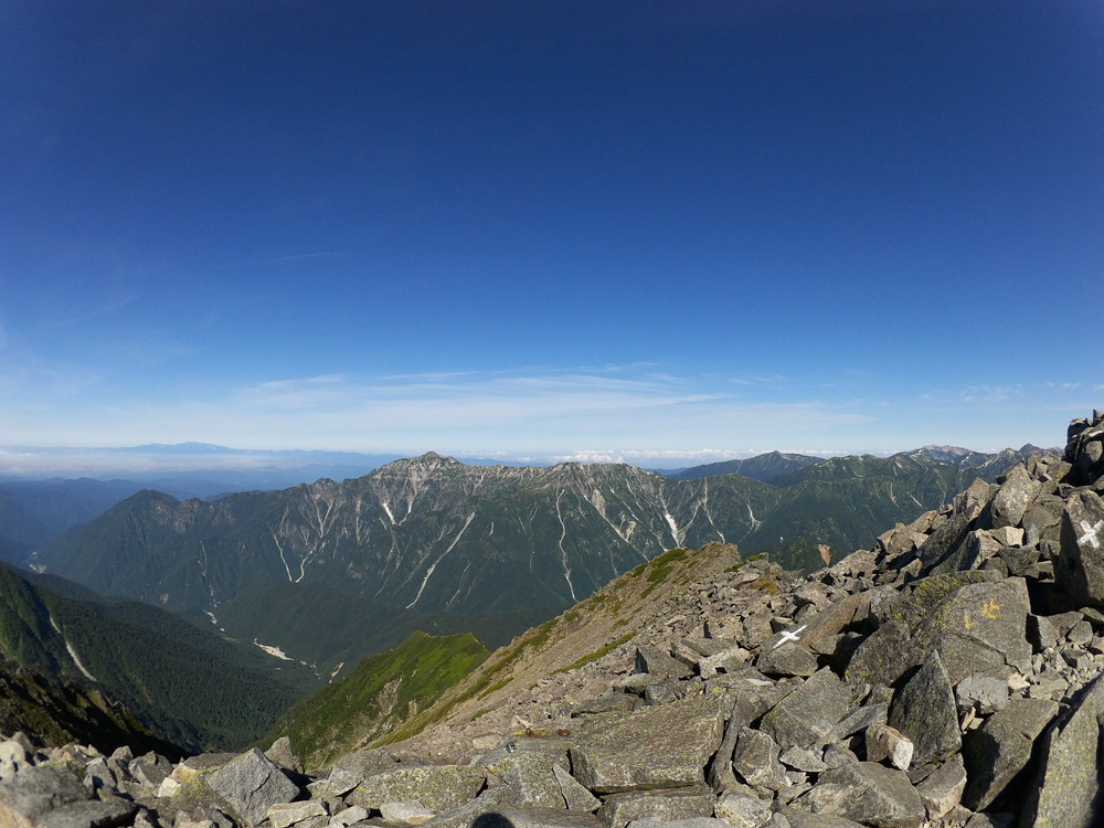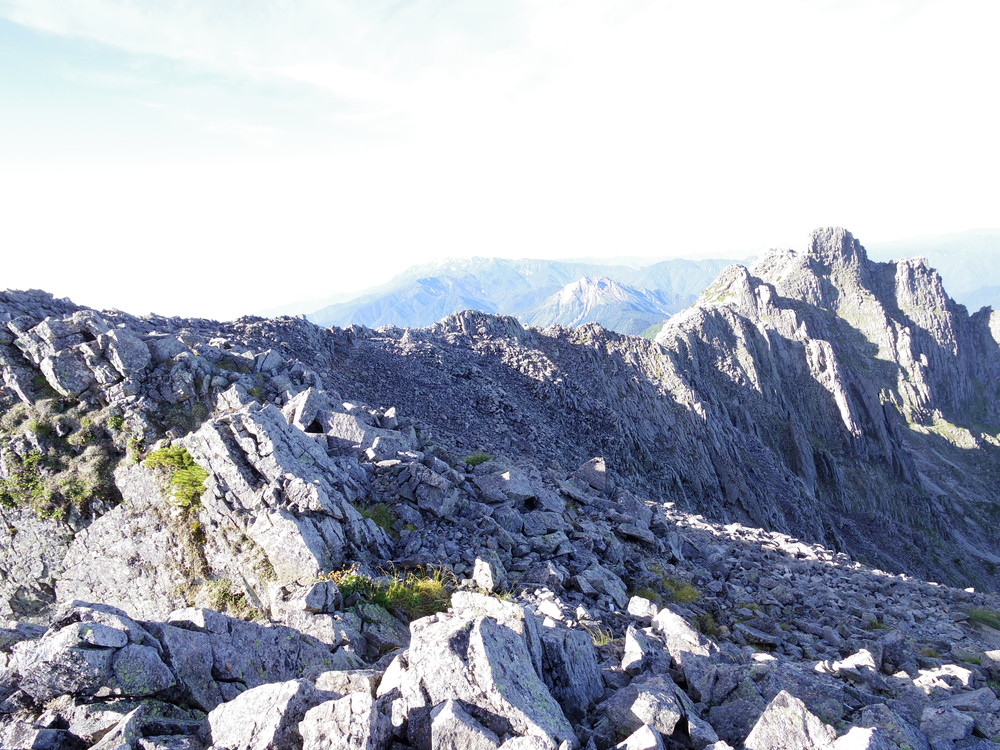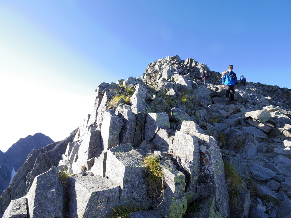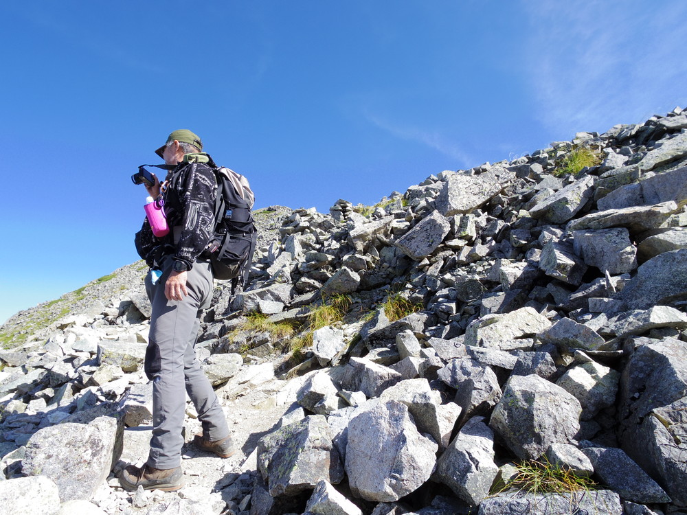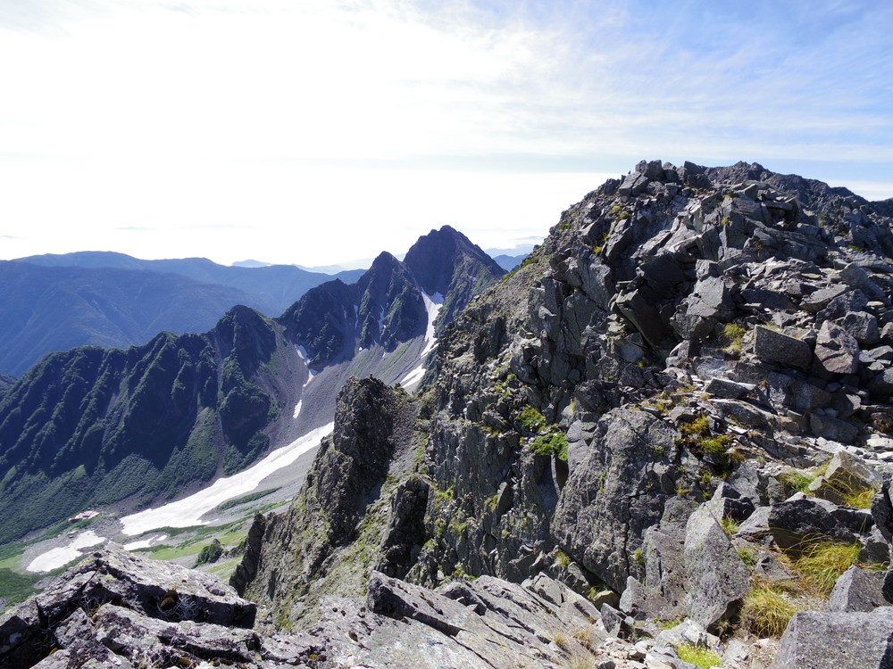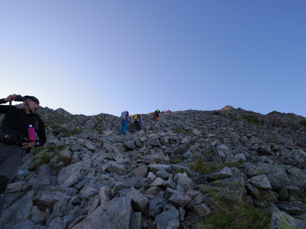 人ごみの奥穂山頂を抜け出て 北隣の頂に