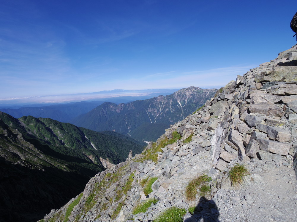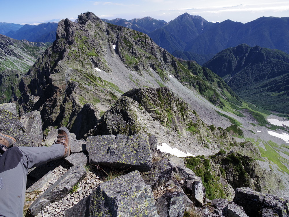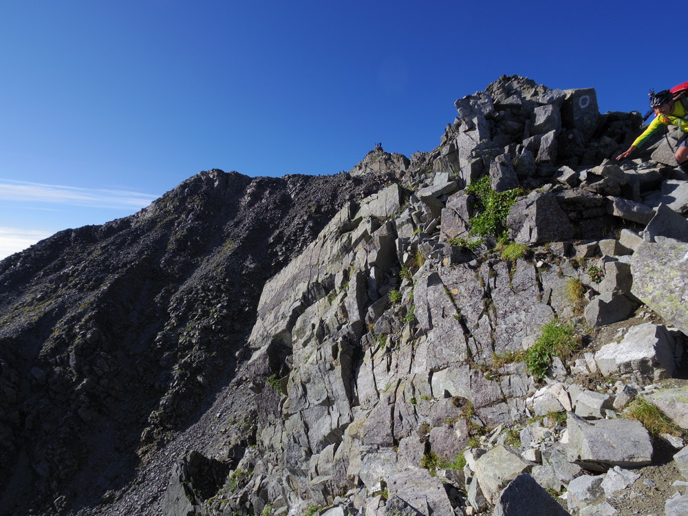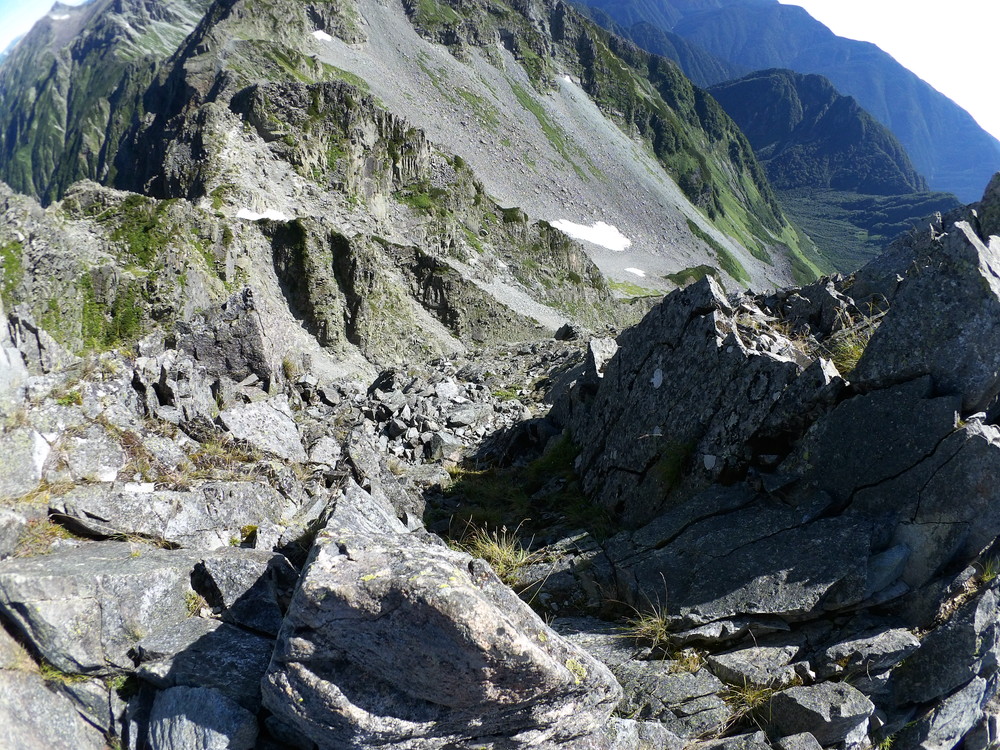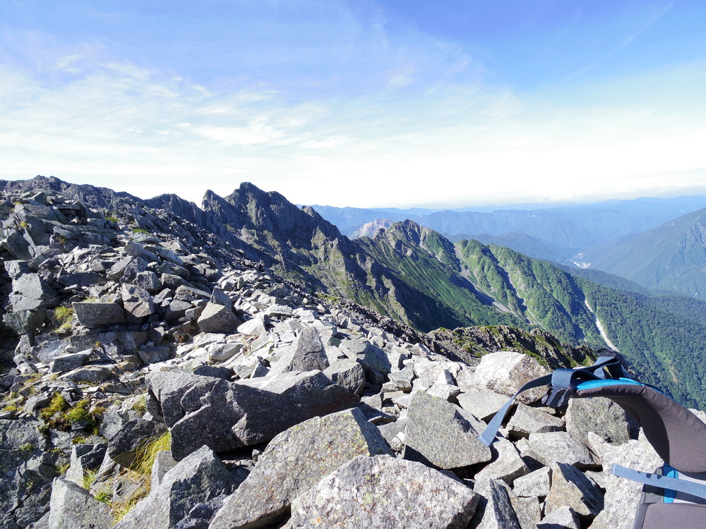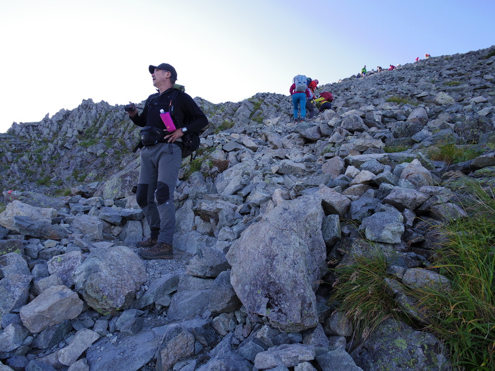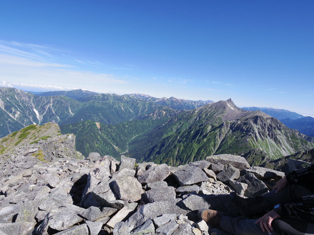 人ごみの奥穂山頂を抜け出て 北隣の頂に