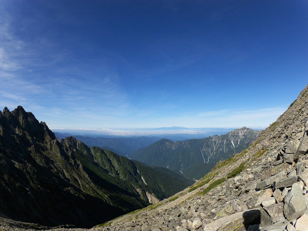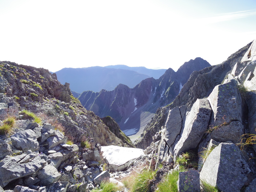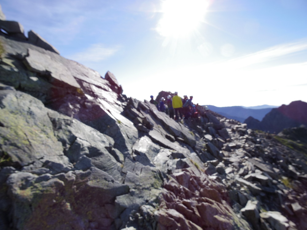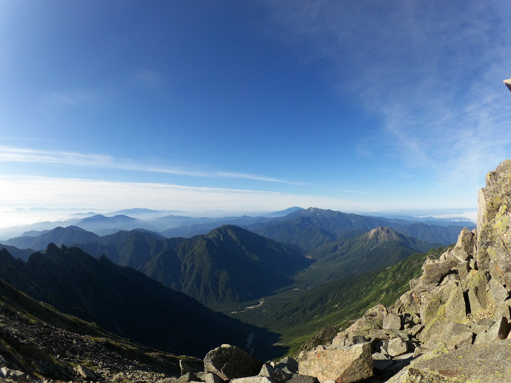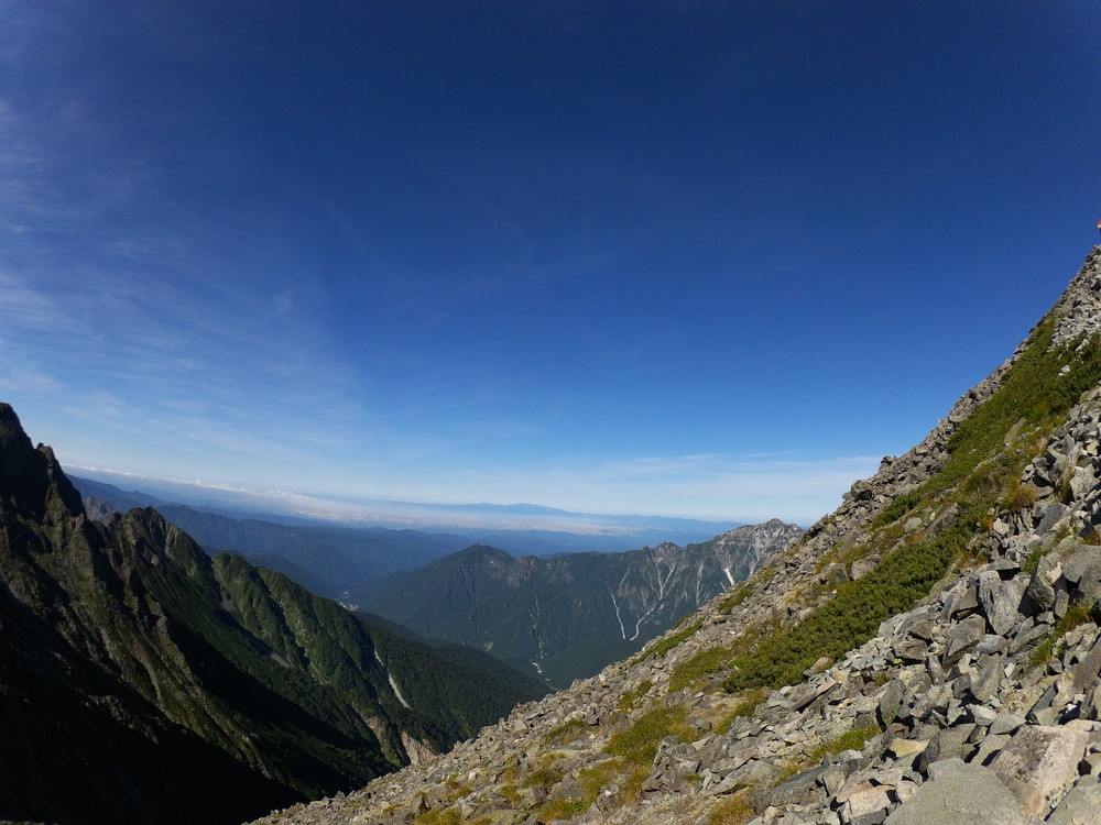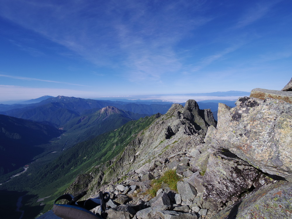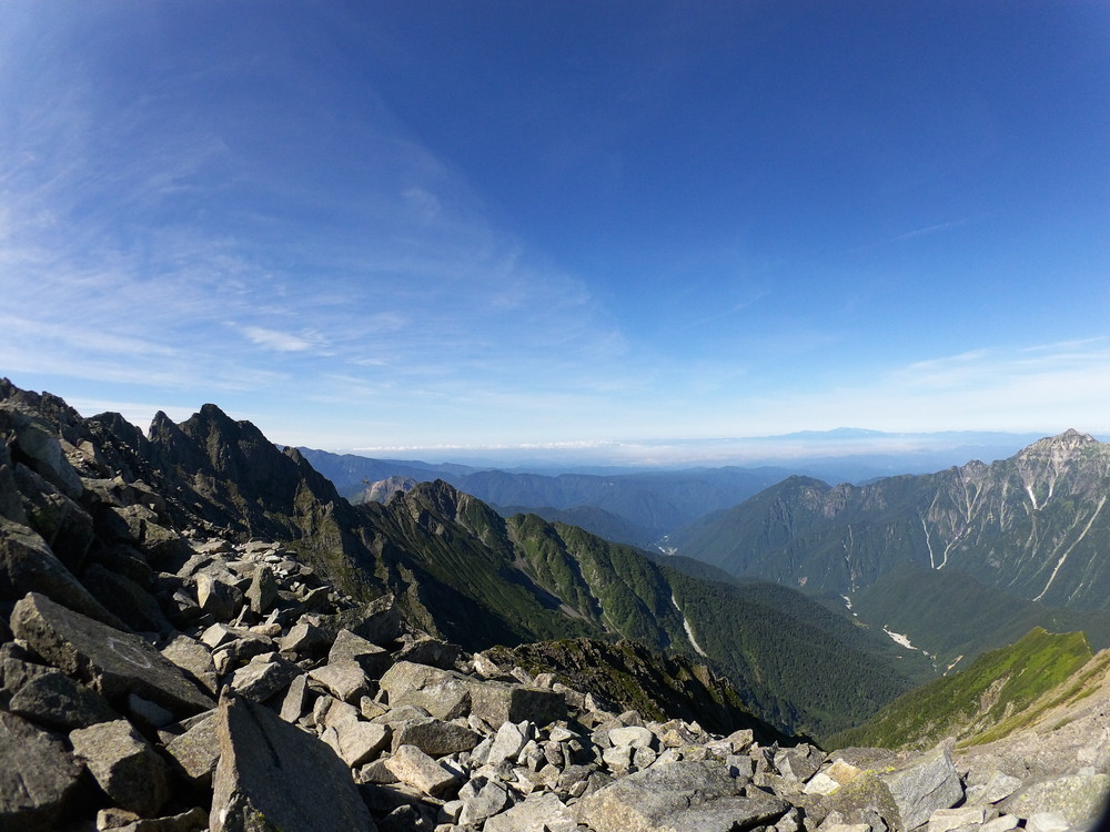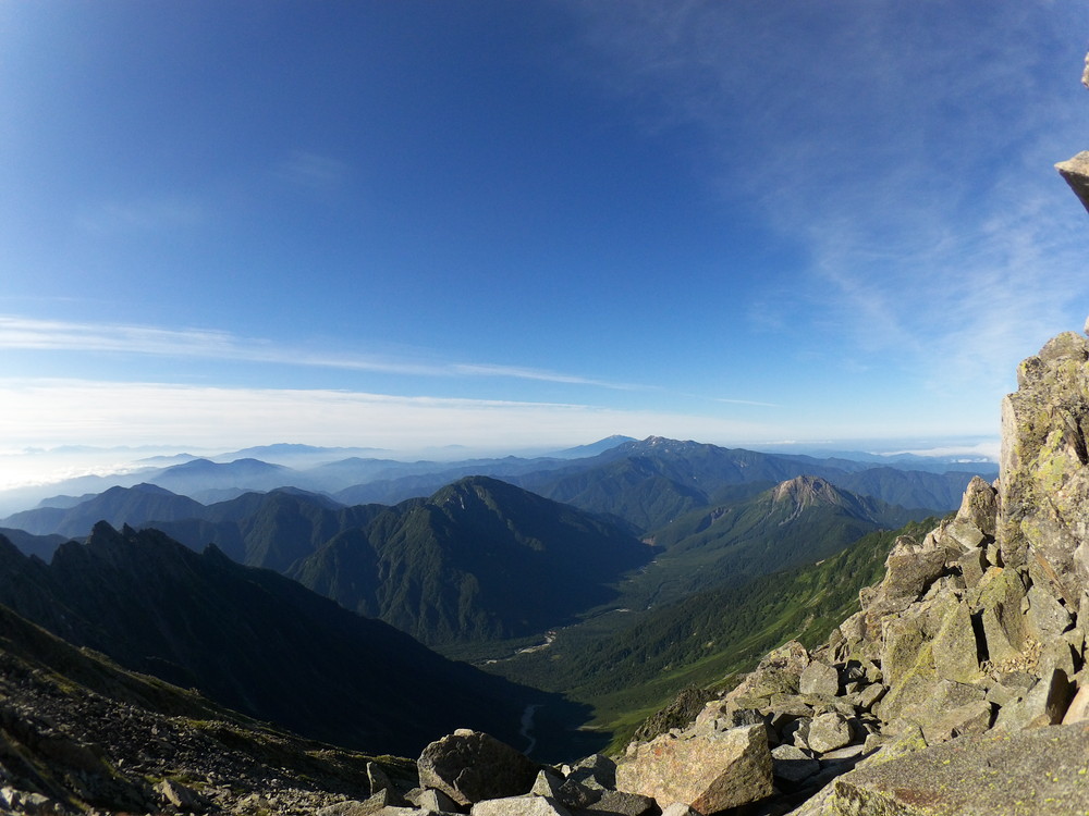 人ごみの奥穂山頂を抜け出て 北隣の頂に