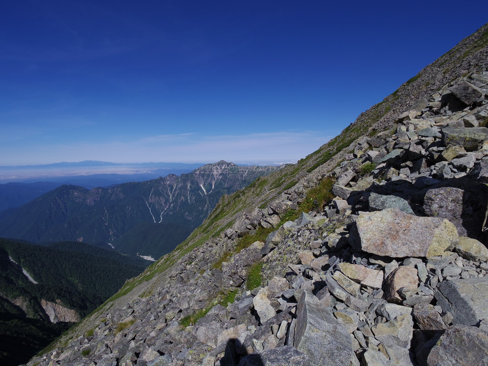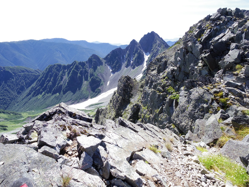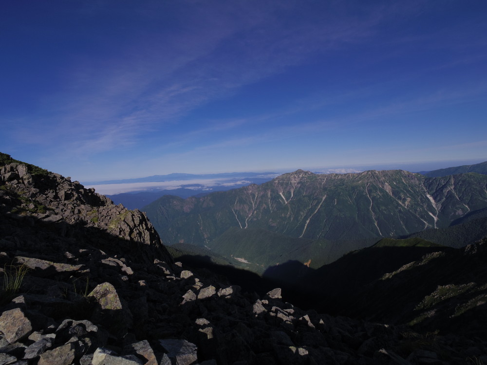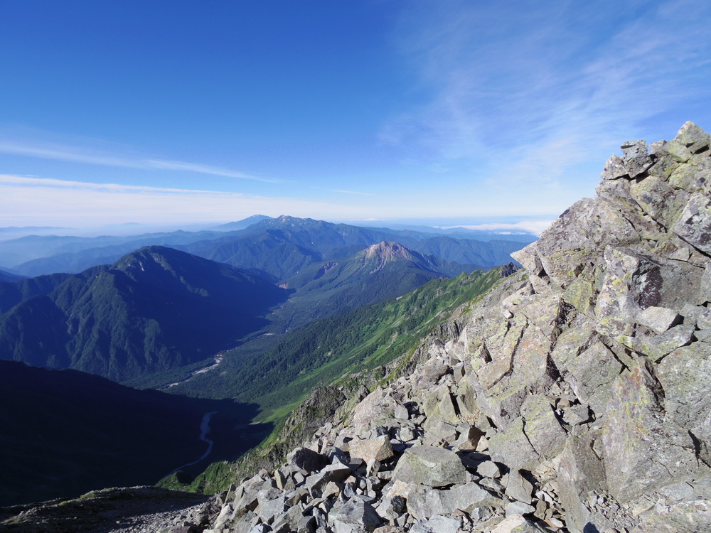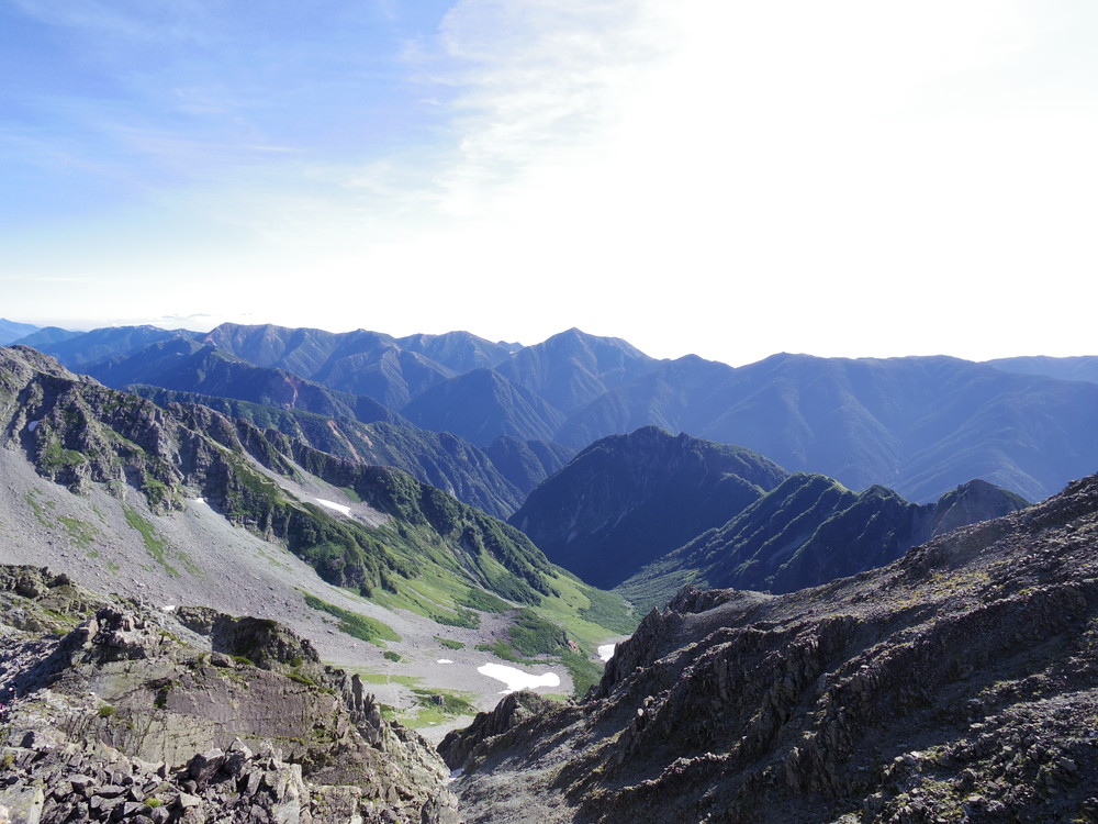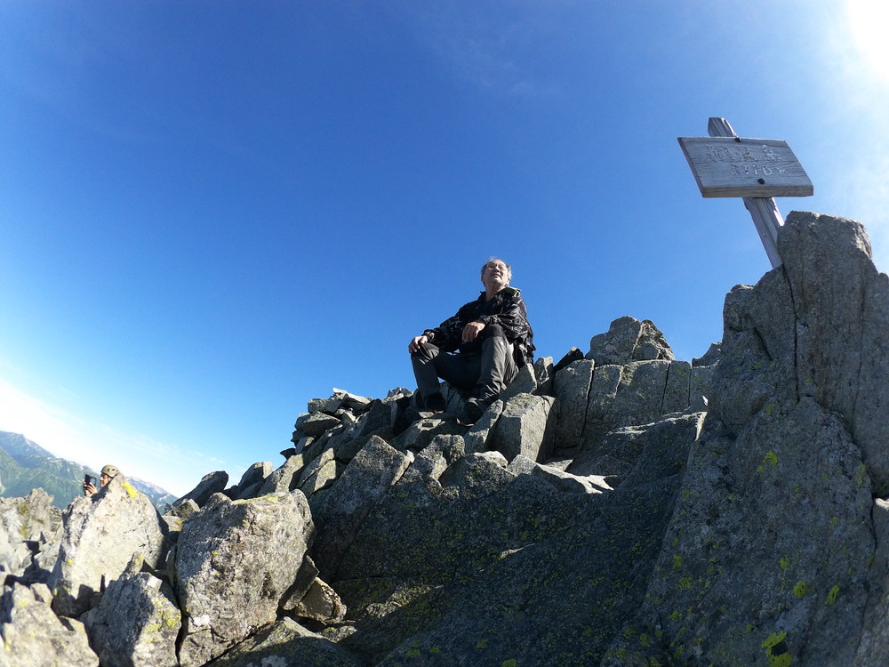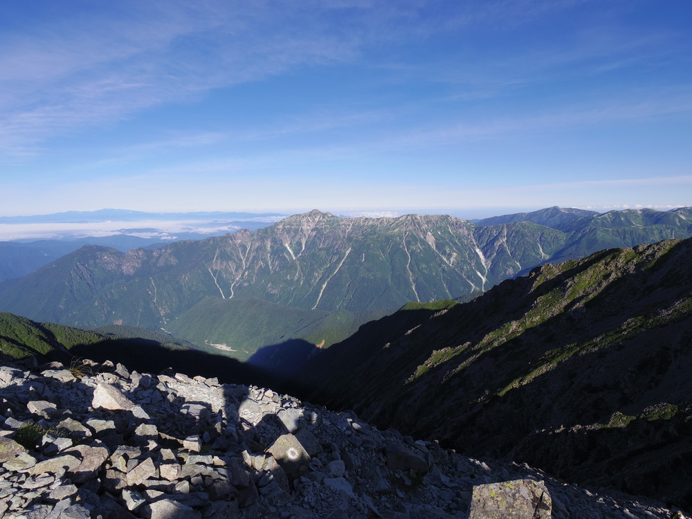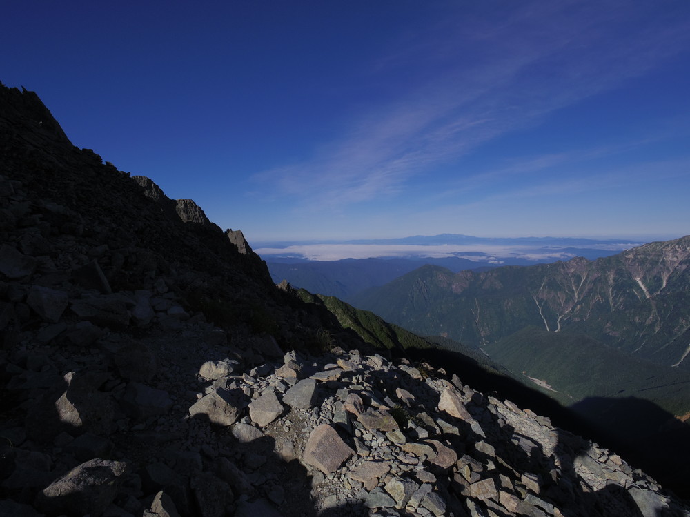 人ごみの奥穂山頂を抜け出て 北隣の頂に