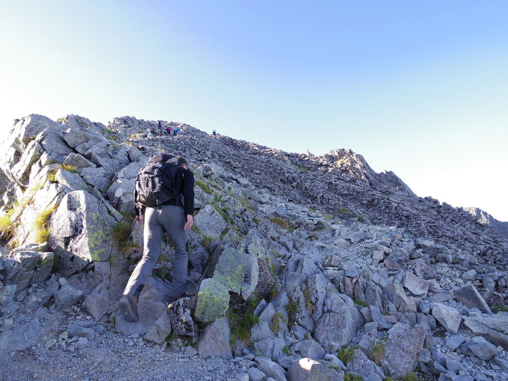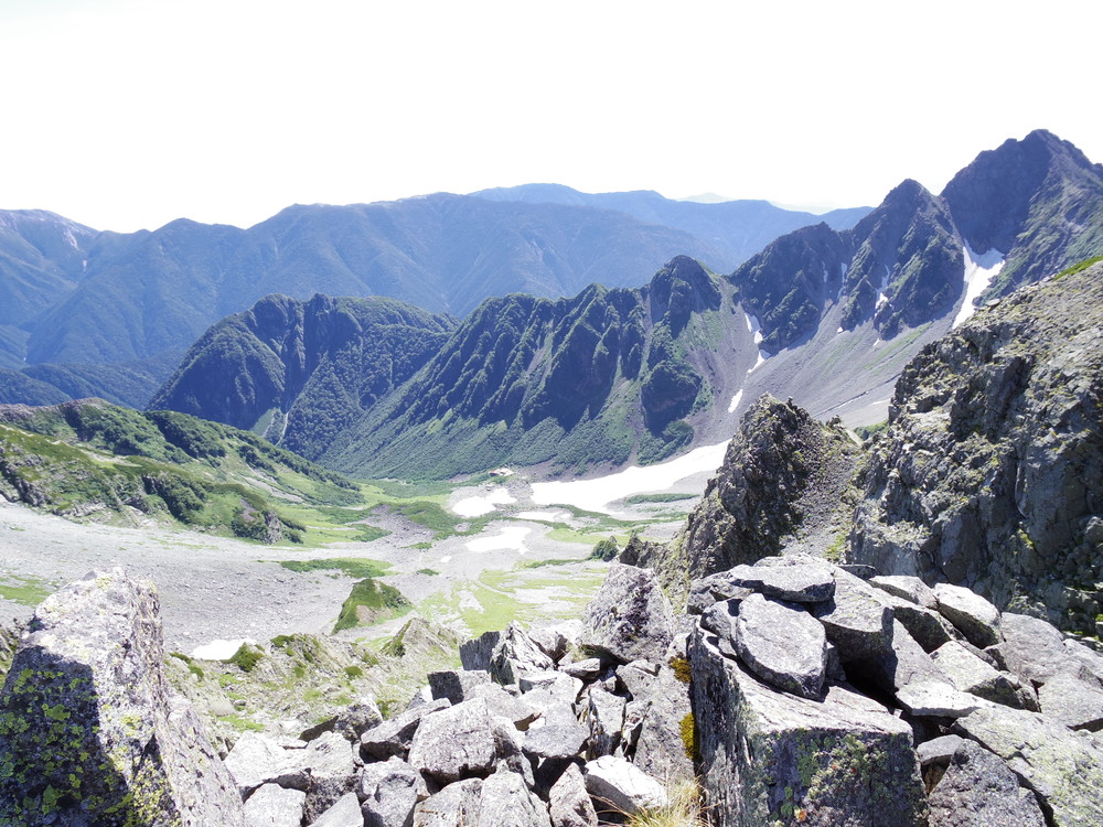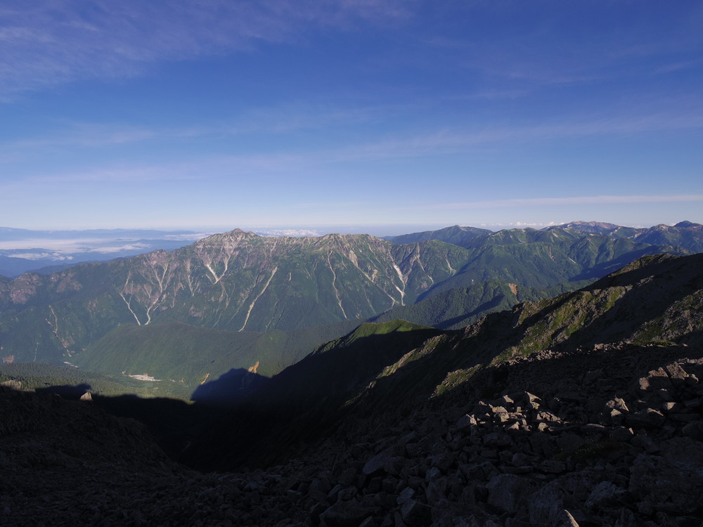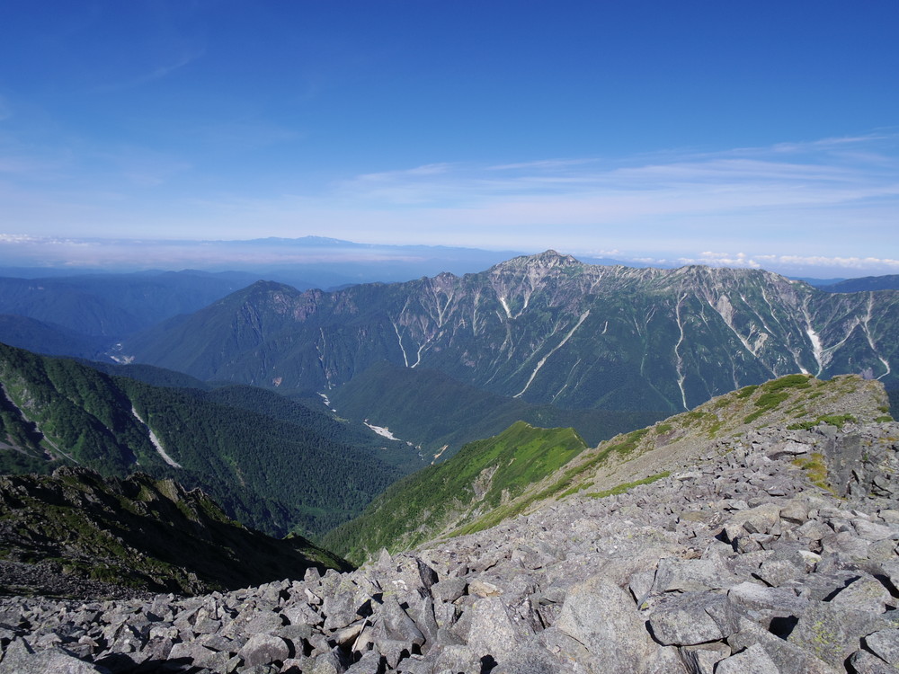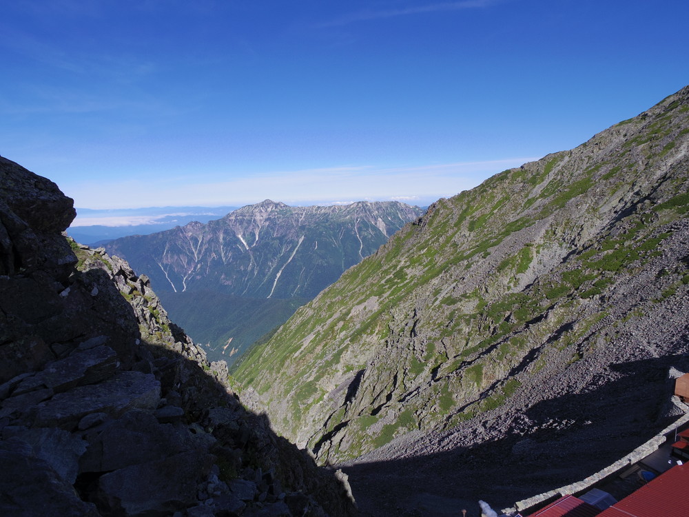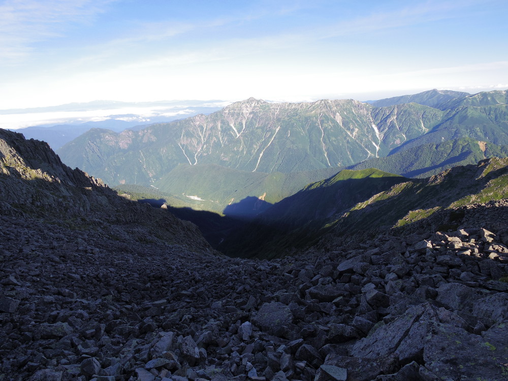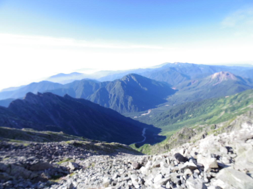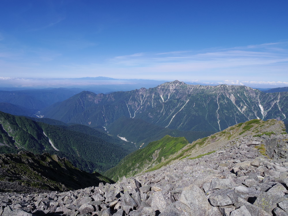 人ごみの奥穂山頂を抜け出て 北隣の頂に