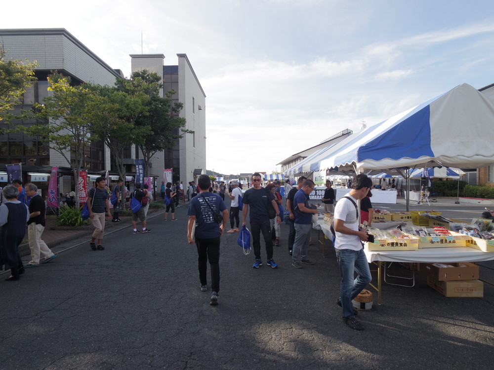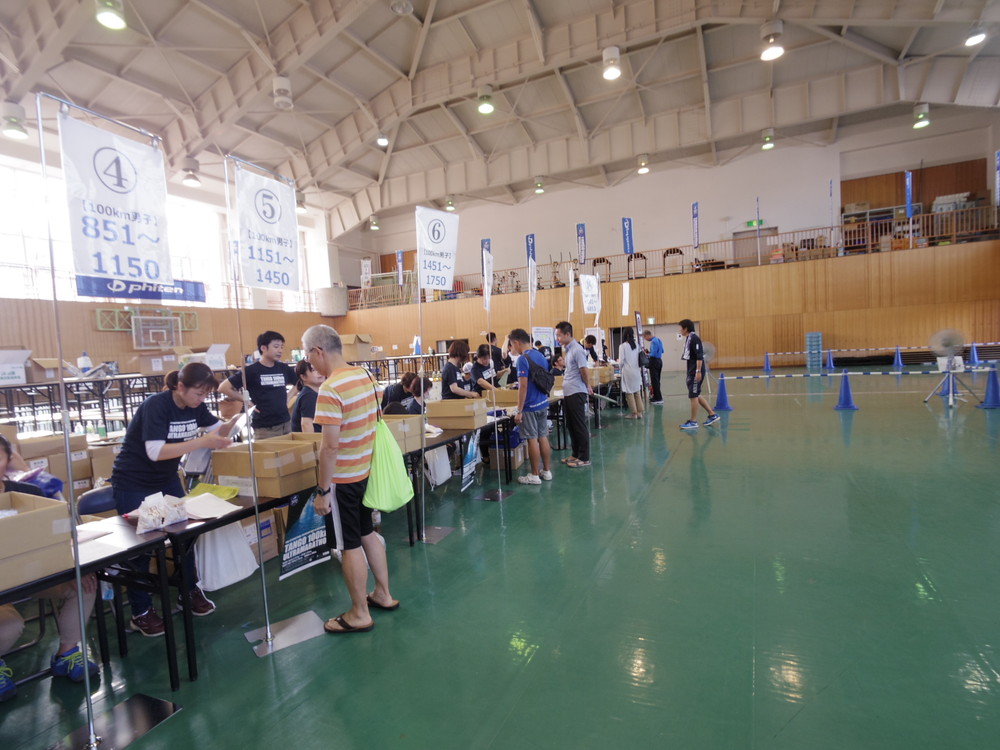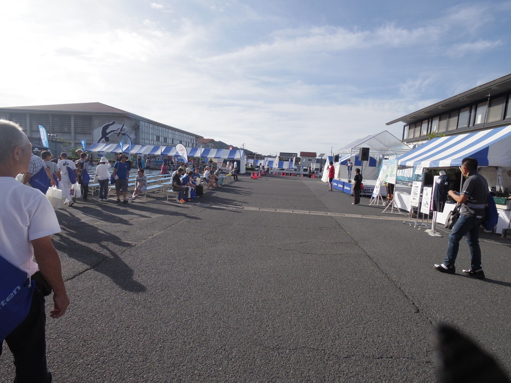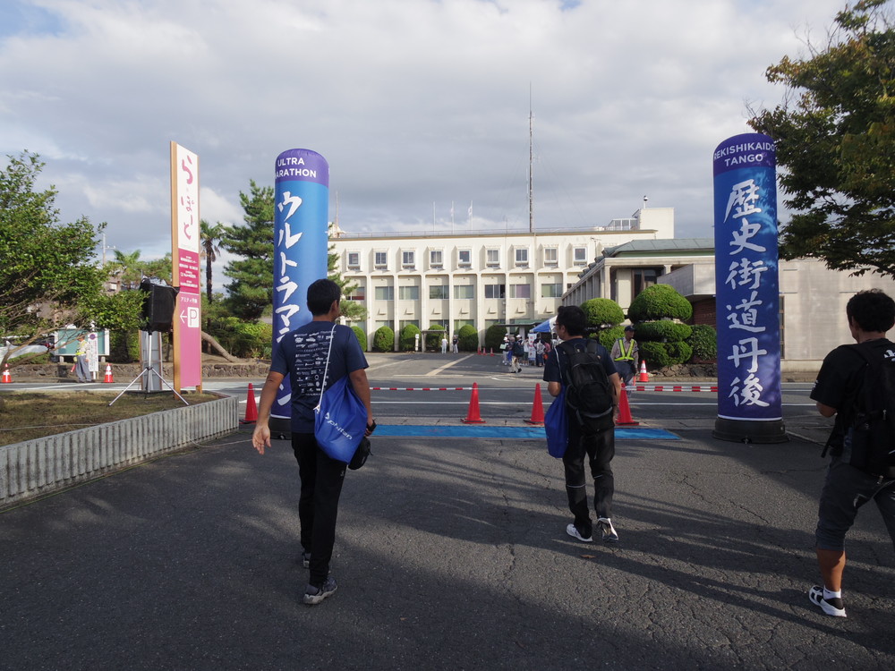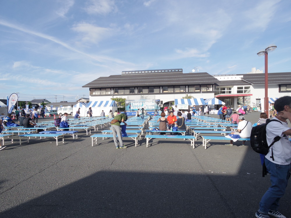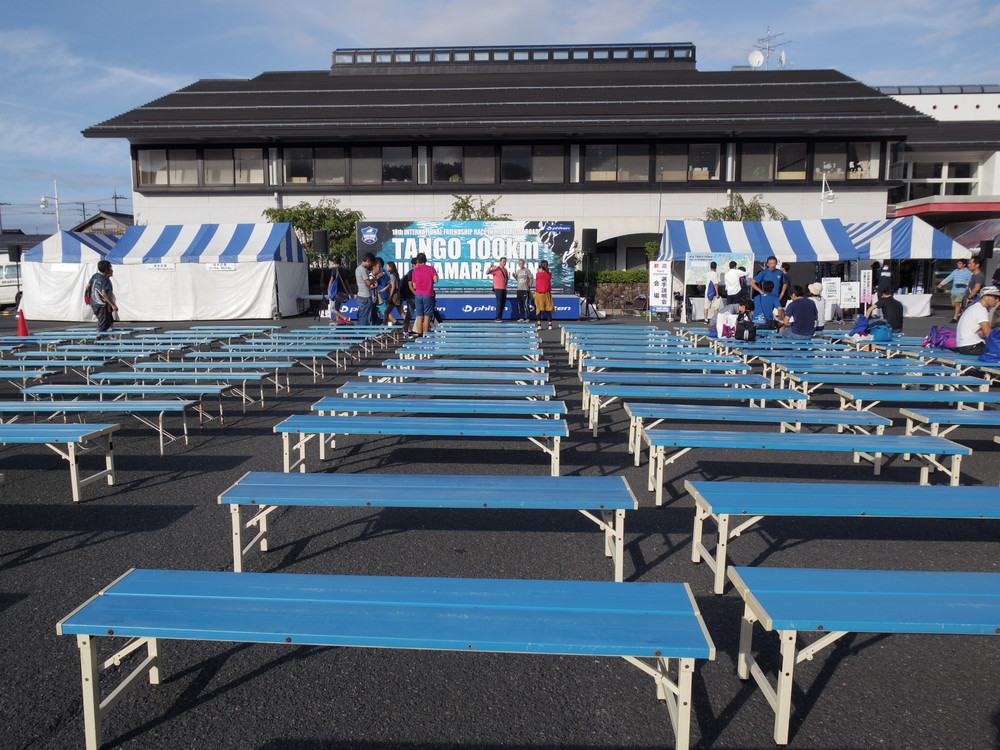 で会場のアミティ丹後に。 ゲートやお店のテント等設置されていました。 体育館で受付してその後お宿のリゾーピア久美浜にチェックイン。