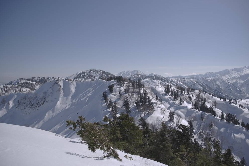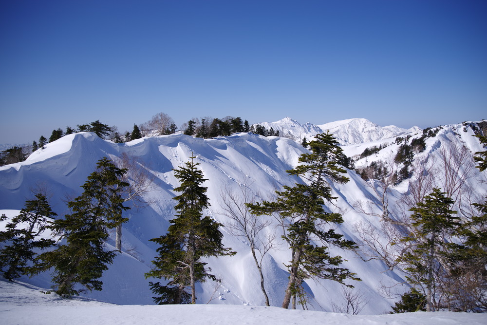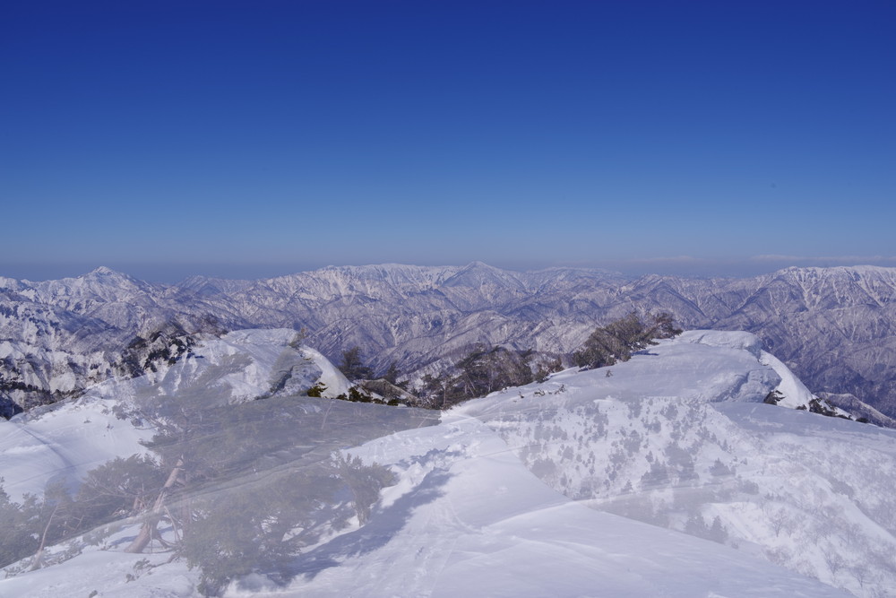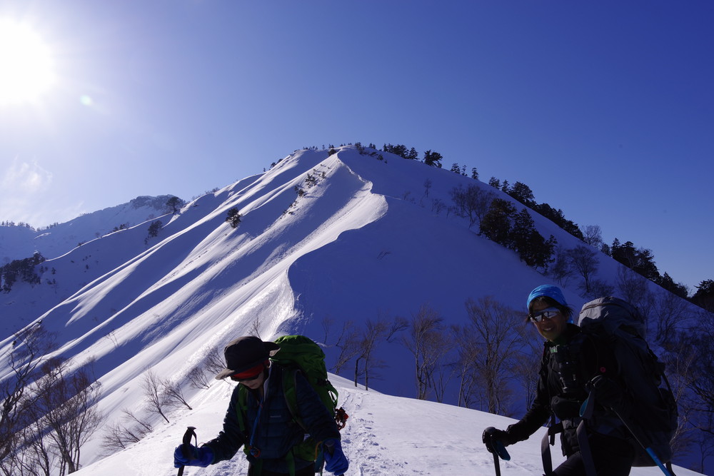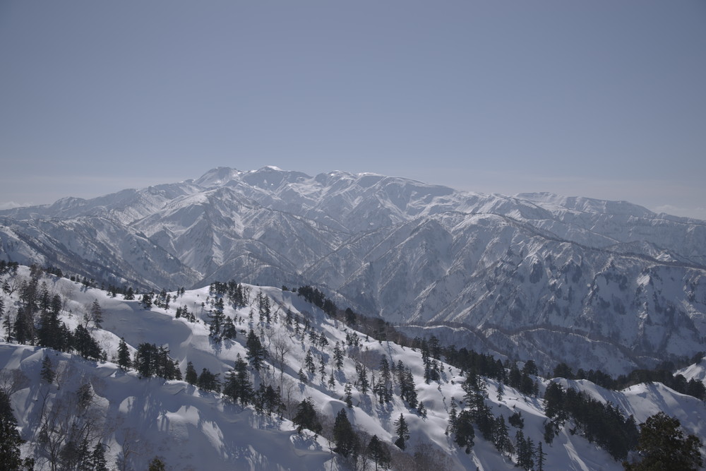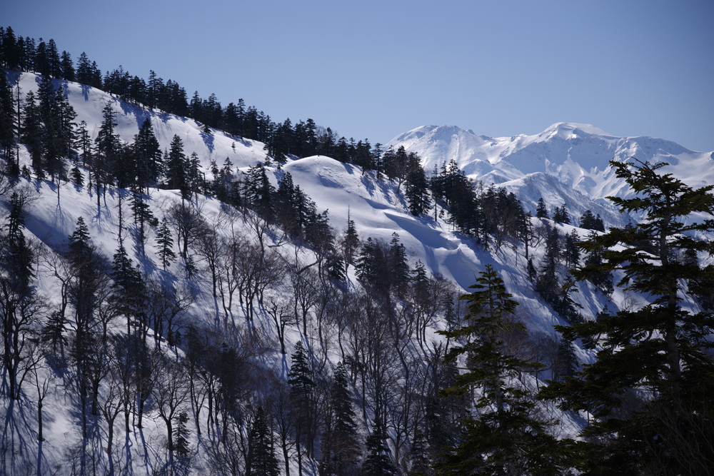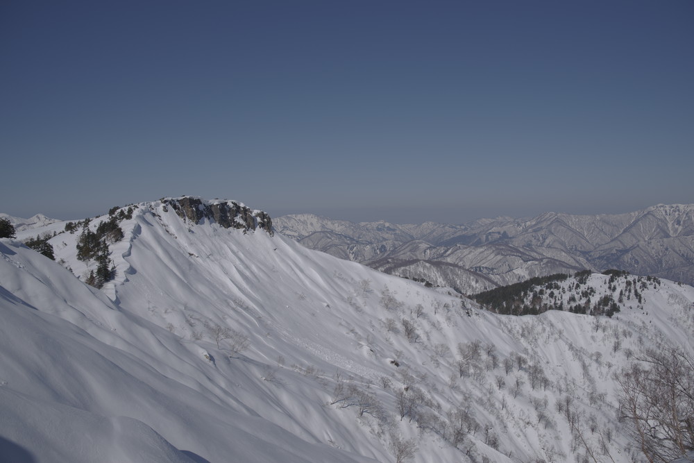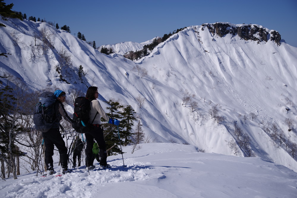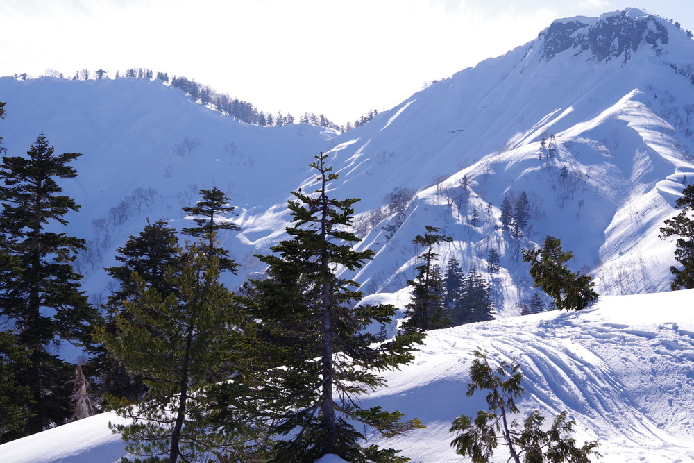 天気も良く雪の状態もよく、素晴らしい山行でした。一カ所 三方岩岳の頂上からの下山時 西端の岩を巻いてトラバースするところが怖かったなぁ