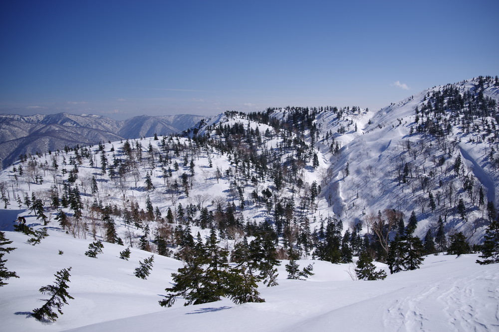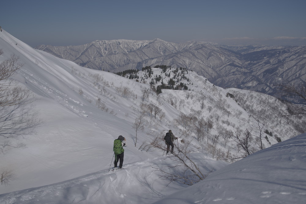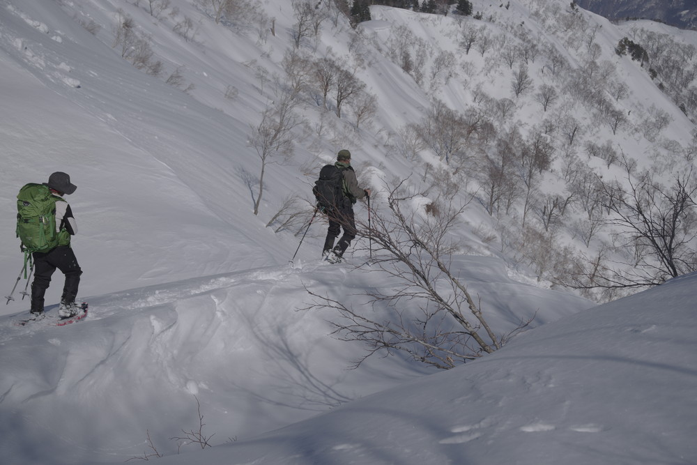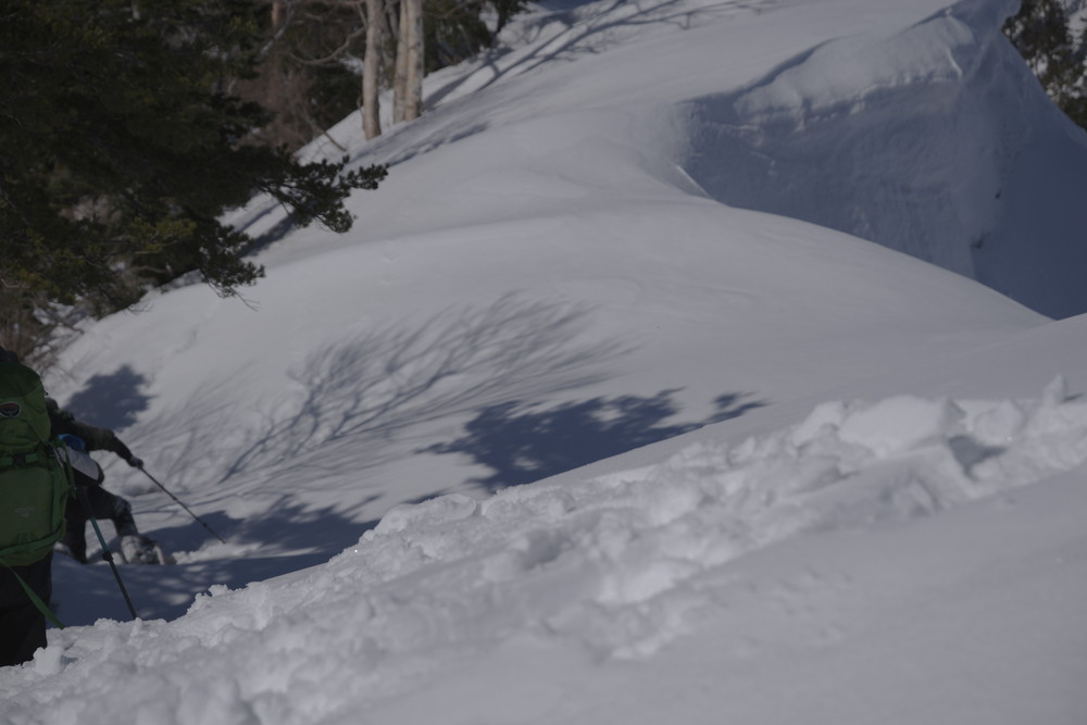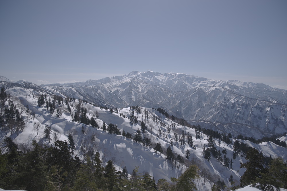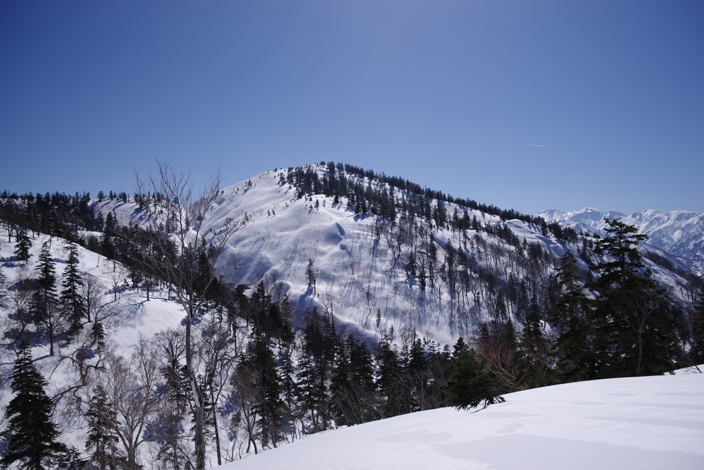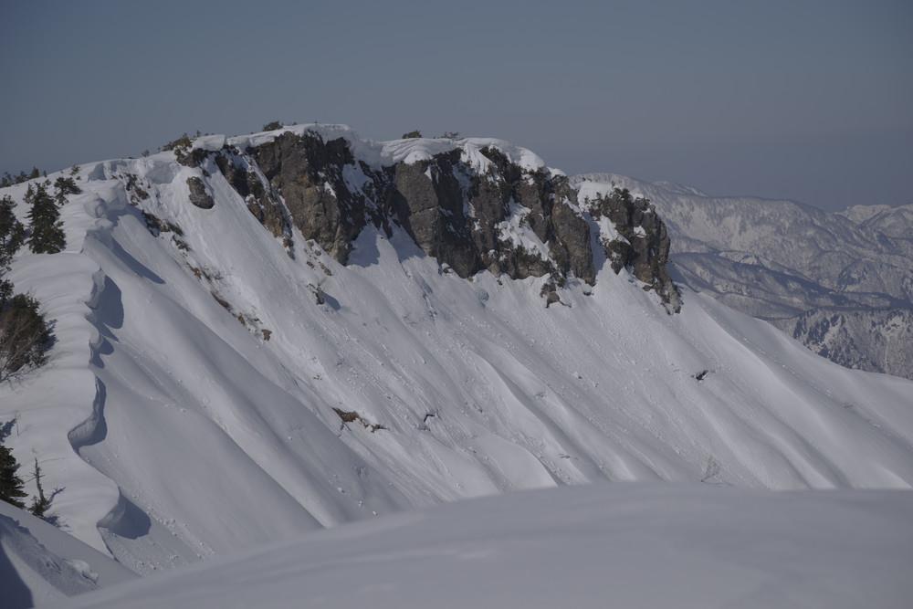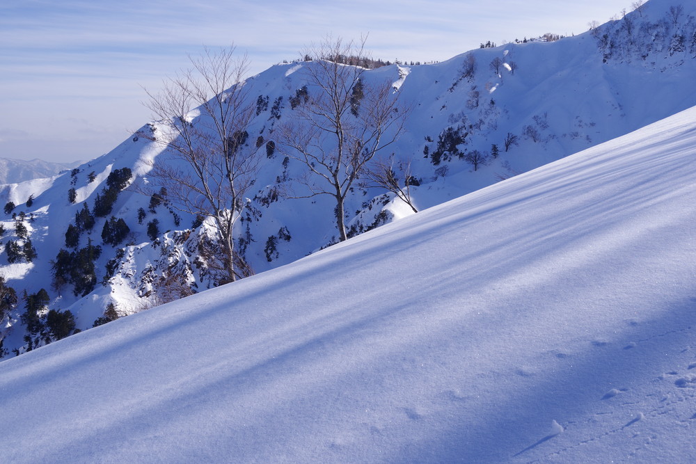 天気も良く雪の状態もよく、素晴らしい山行でした。一カ所 三方岩岳の頂上からの下山時 西端の岩を巻いてトラバースするところが怖かったなぁ