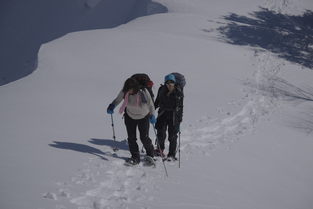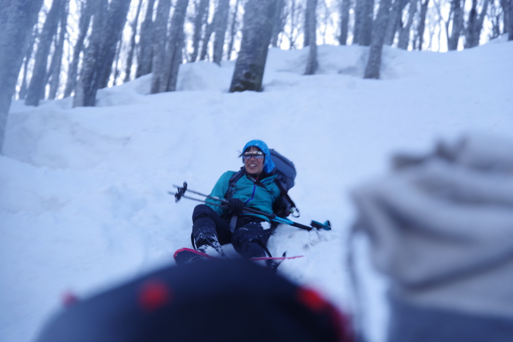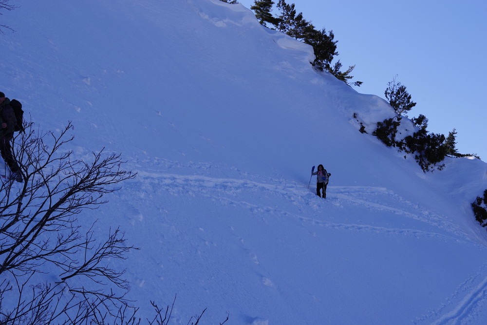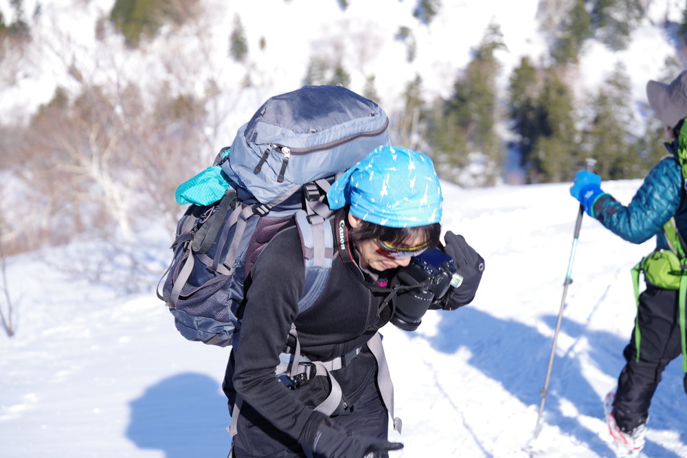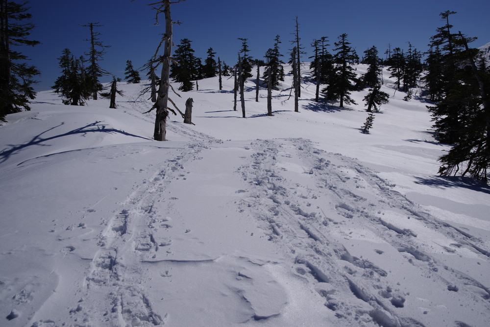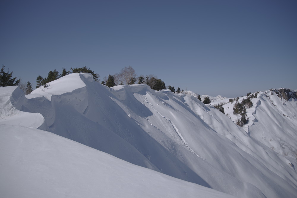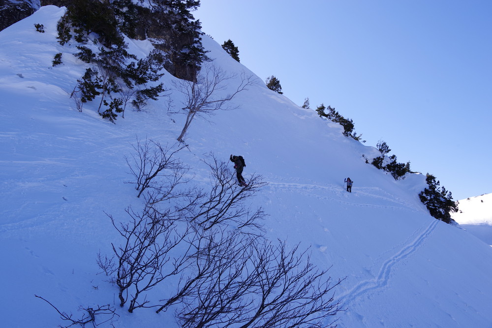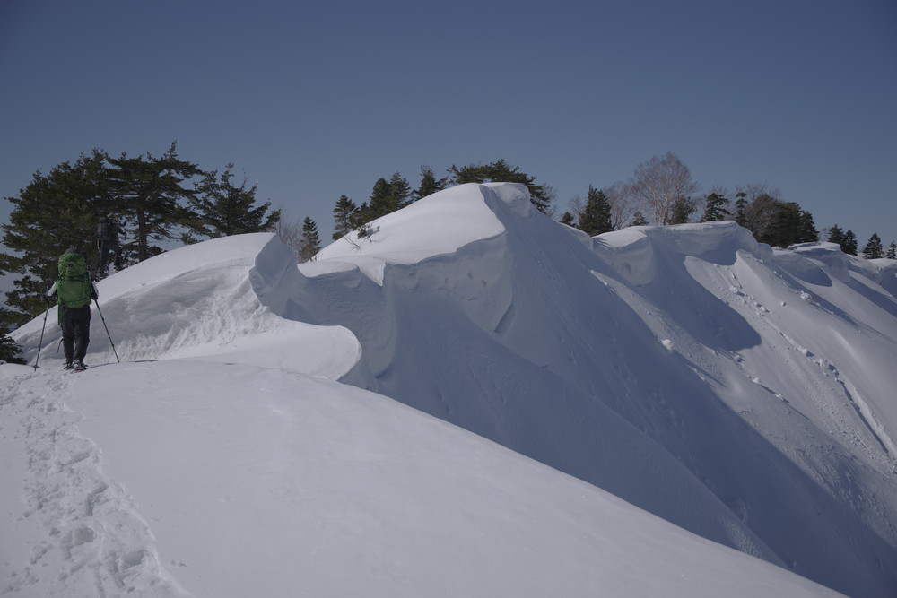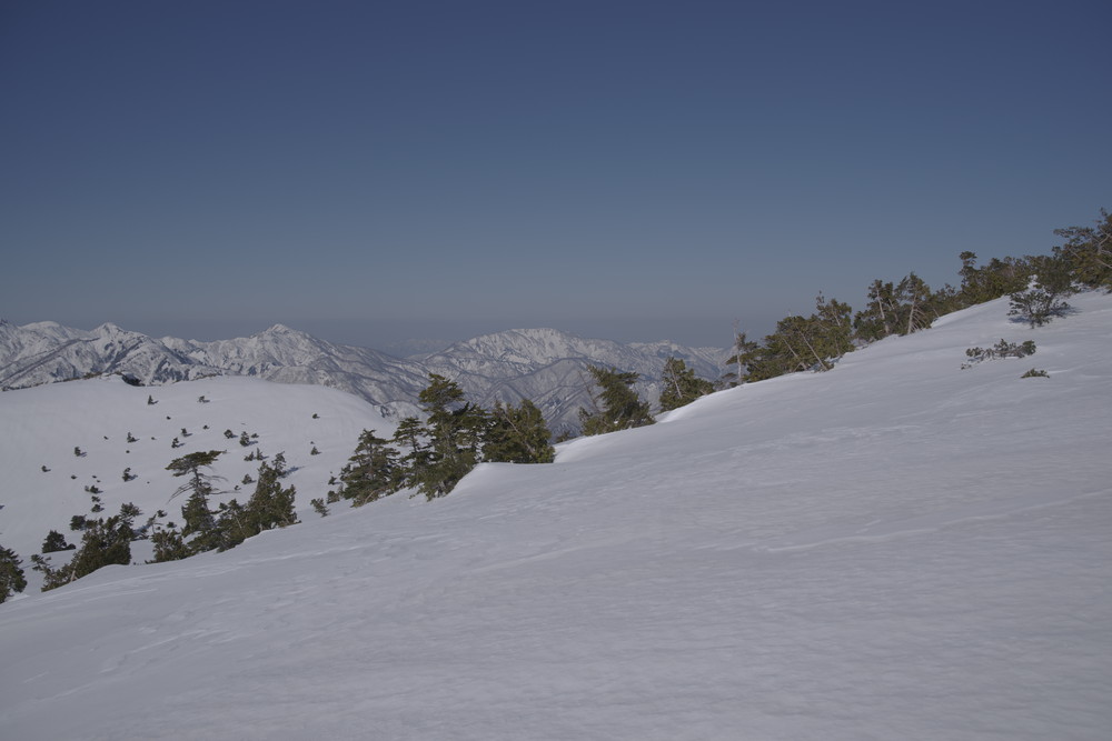 天気も良く雪の状態もよく、素晴らしい山行でした。一カ所 三方岩岳の頂上からの下山時 西端の岩を巻いてトラバースするところが怖かったなぁ