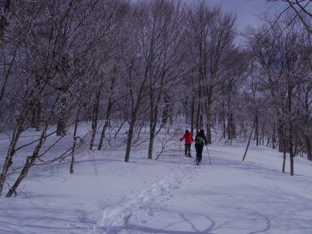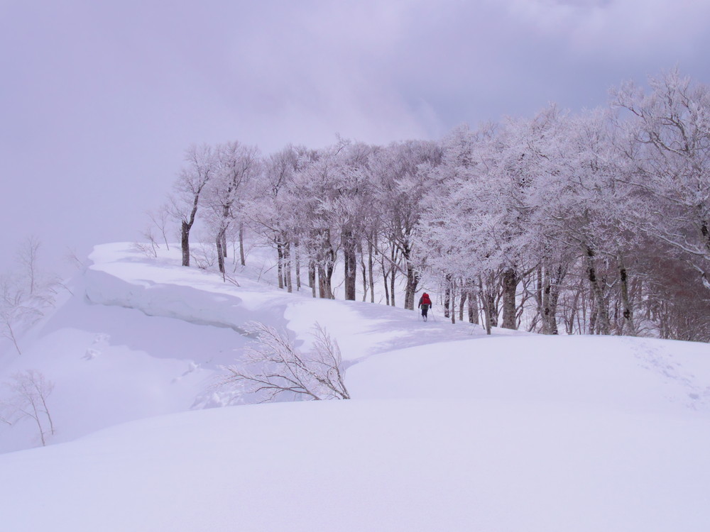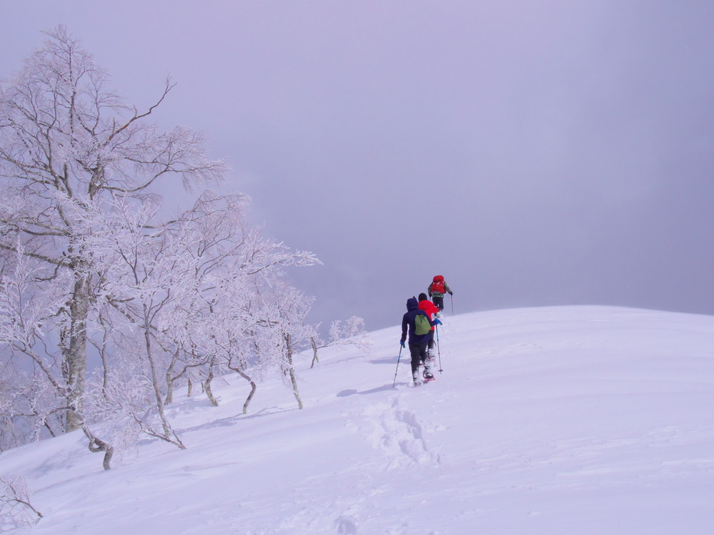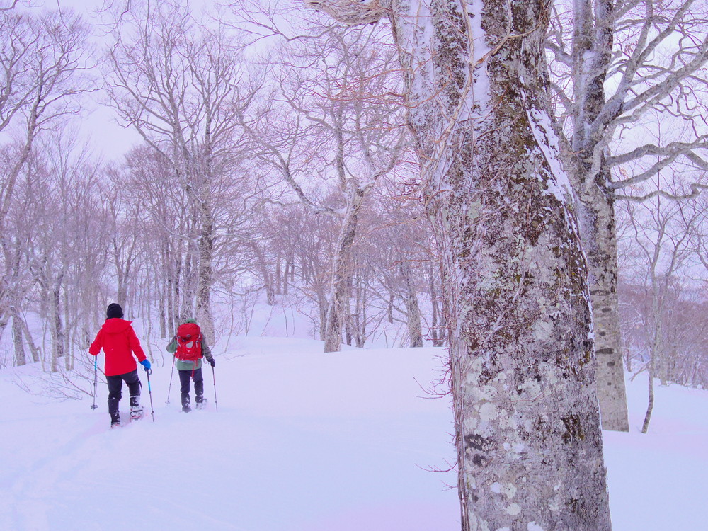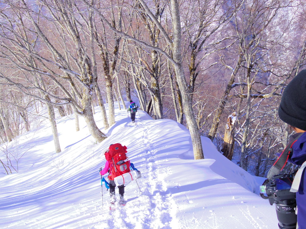 二日目は行動開始が8:10。夜中からの積雪で新雪ふかふかでした。