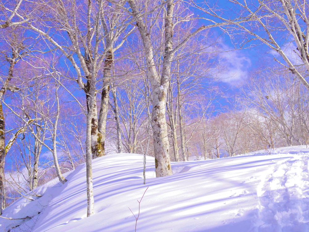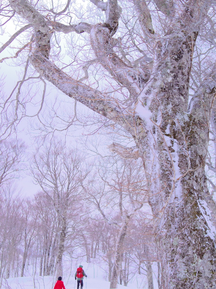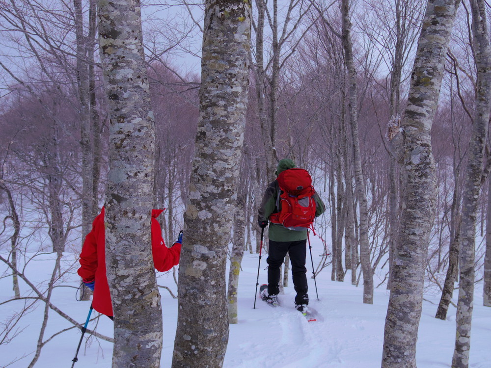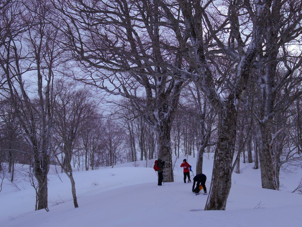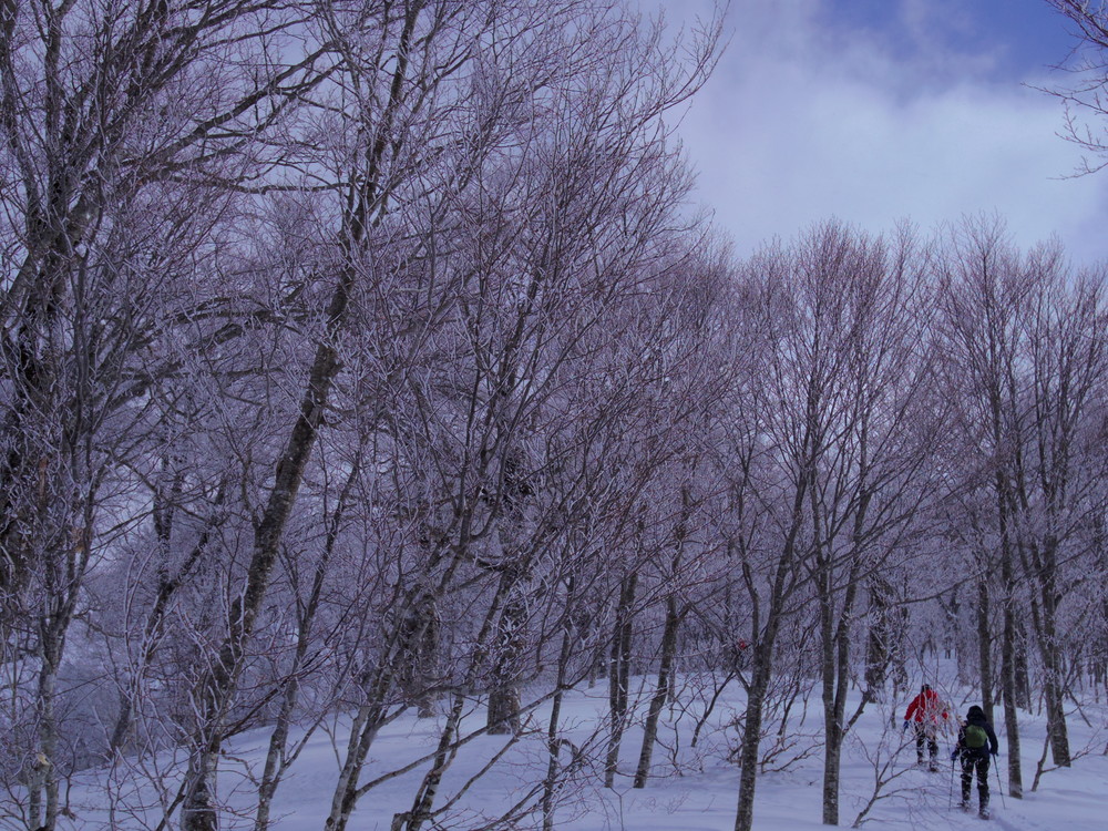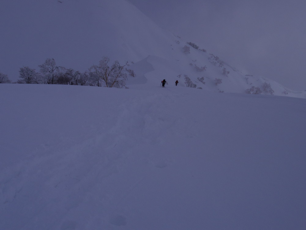 二日目は行動開始が8:10。夜中からの積雪で新雪ふかふかでした。