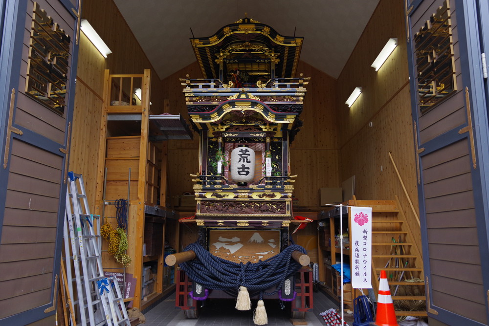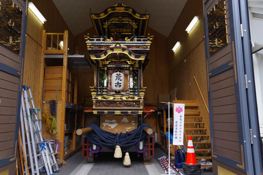本日は大田まつり本楽のはずでしたがコロナ禍による中止で神事のみとなりました。 女房よりお使いを頼まれて先着200個のパンを目当てに9:30には高横須賀のヤマナカに行きたい。 神事は10:00からでそれに合わせて山車蔵を開けるという。 9:10に山車蔵に行ったらまだ開いていなかった。 しばらく待っていたら開けてくれたので動画と写真を撮った。