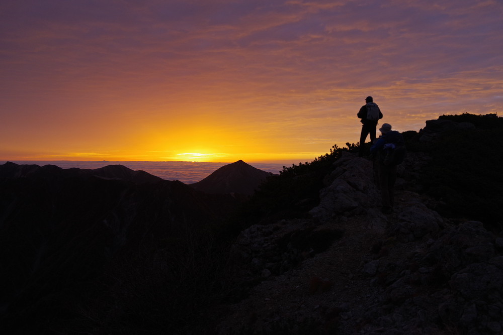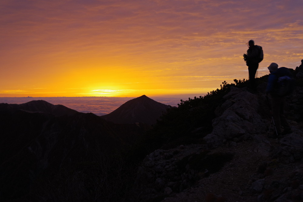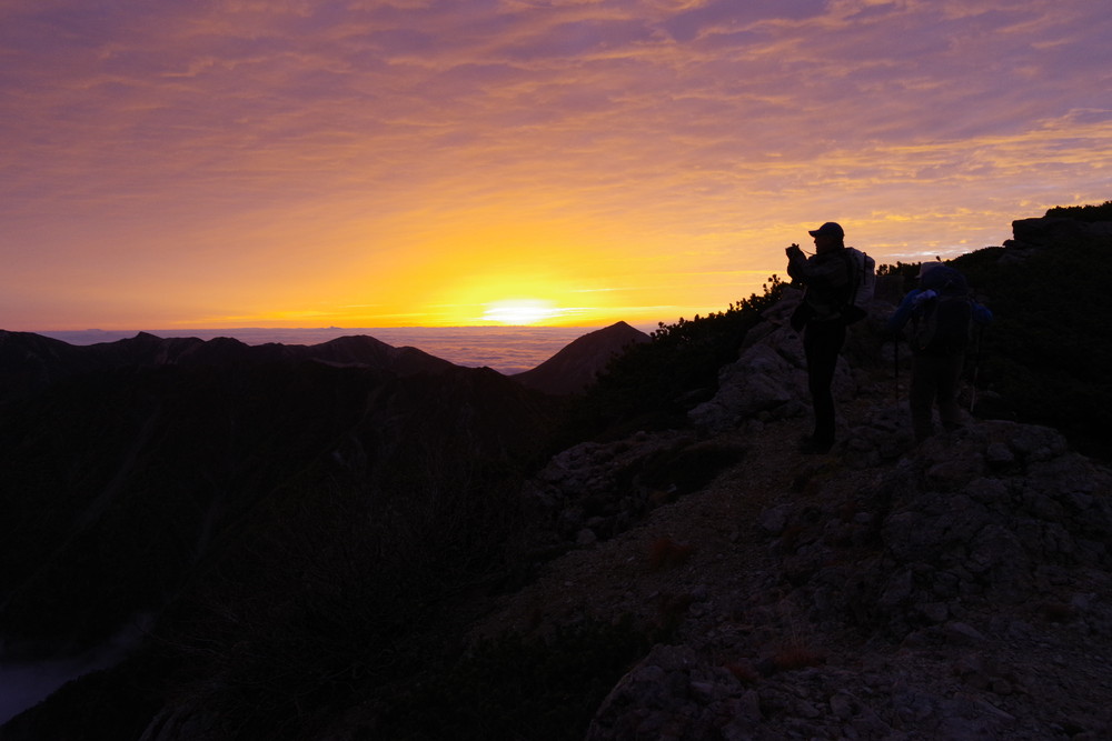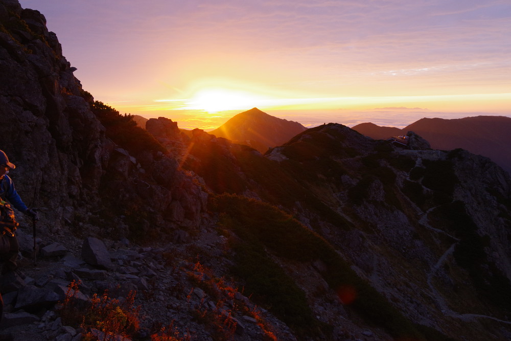 途中常念岳の横から登る日の出を拝みお得な気分になりました。