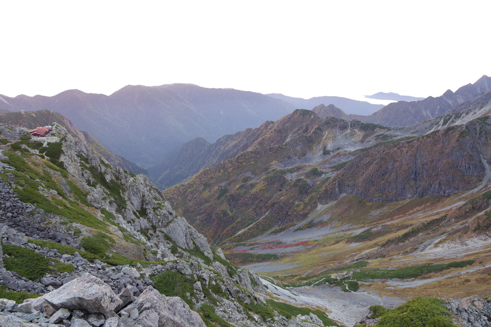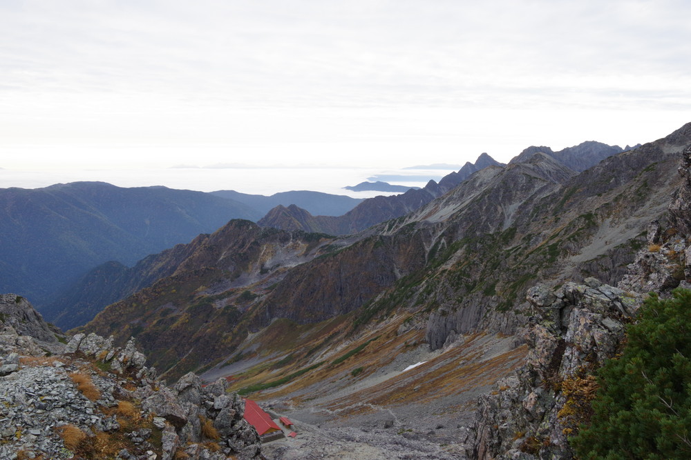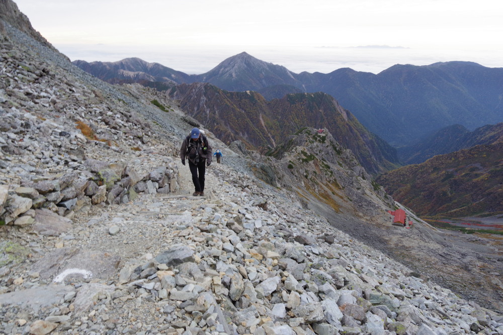 南岳小屋から南岳新道を槍平小屋まで降りてきました。
