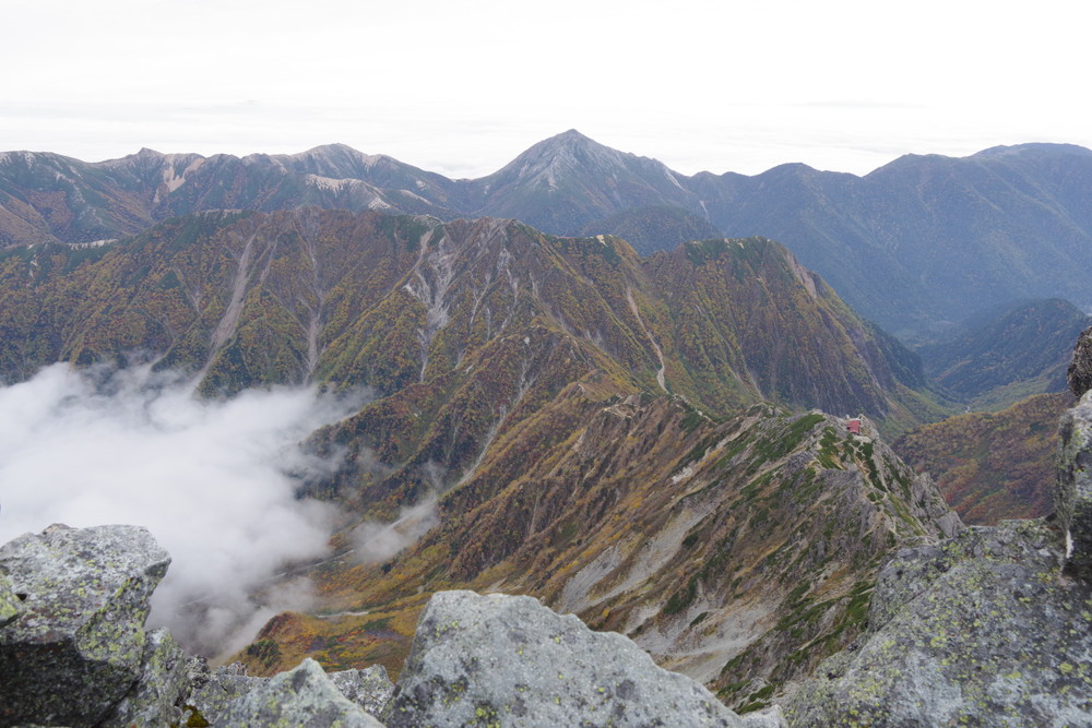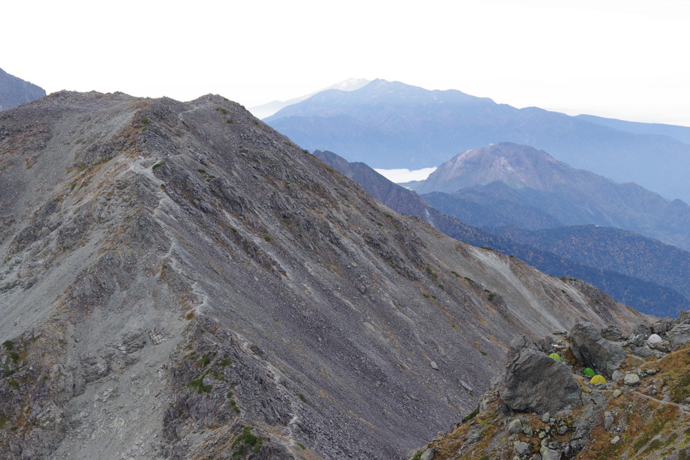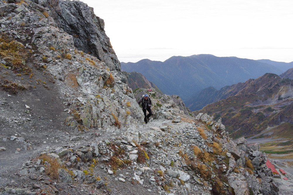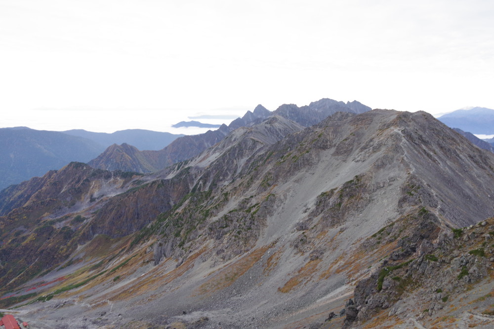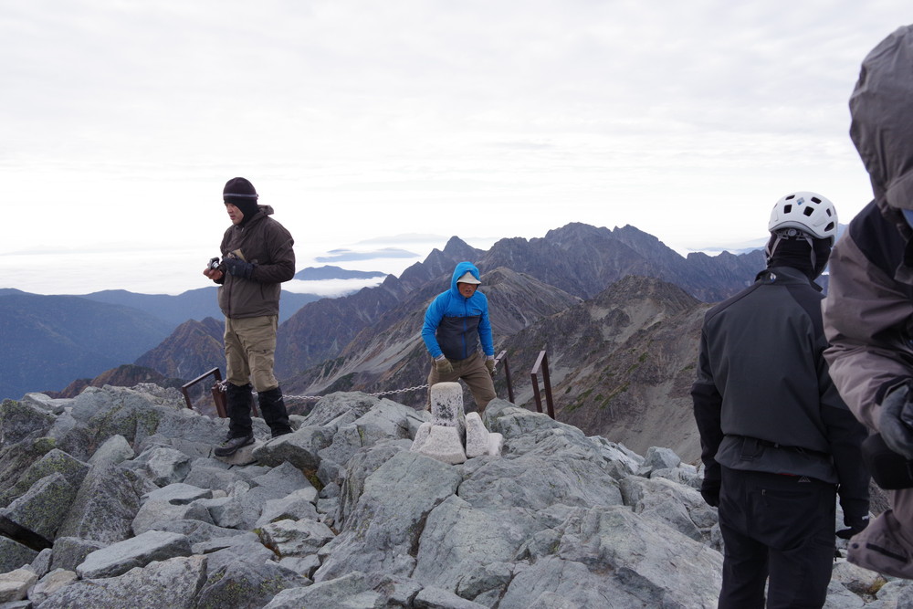 その後テント場を抜けて飛騨乗越をとおり大喰岳(3101m) 中岳(3084m) 南岳(3032.9m)を制覇し