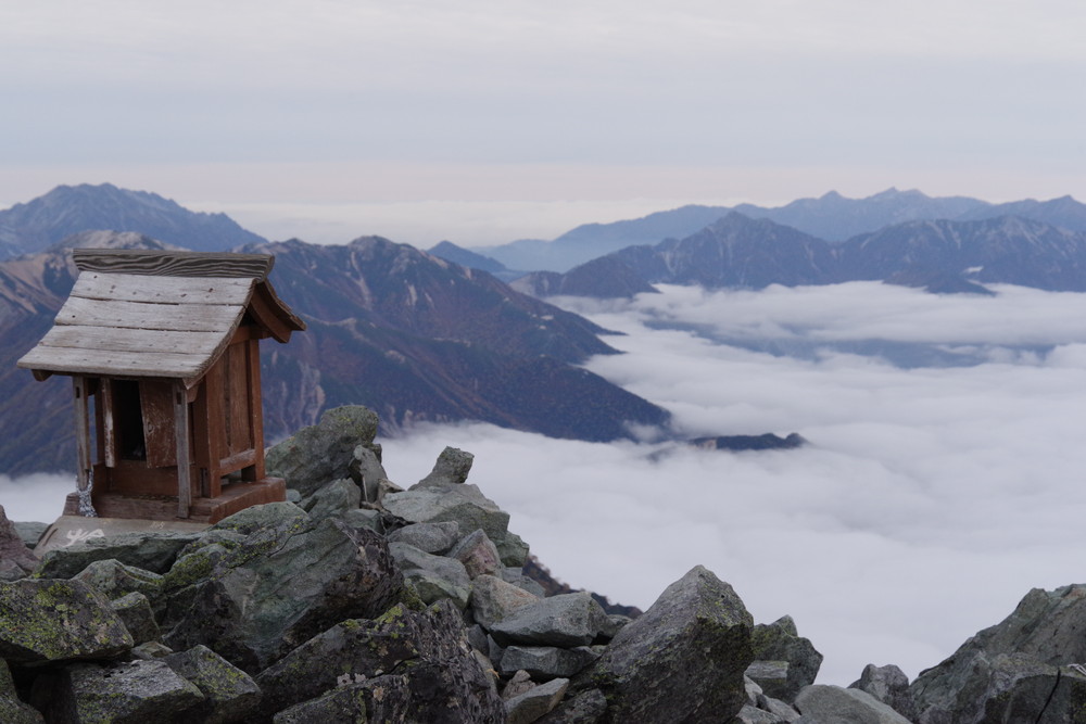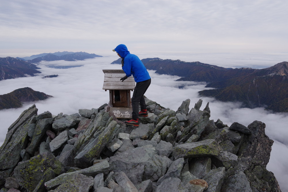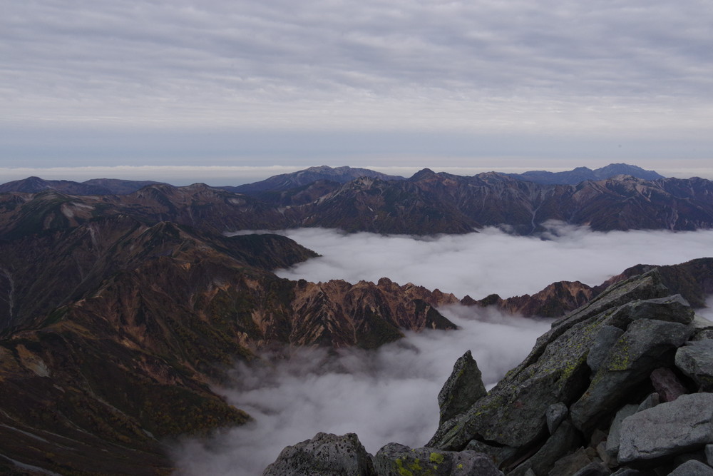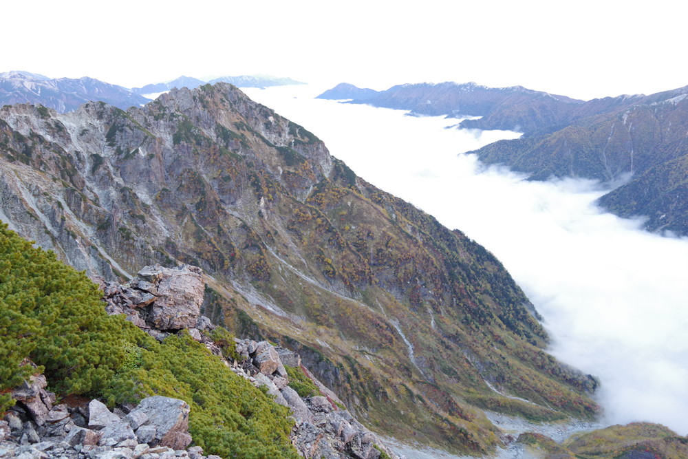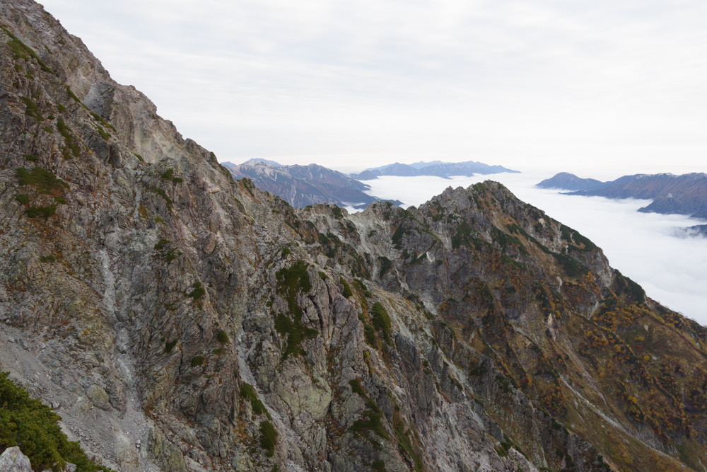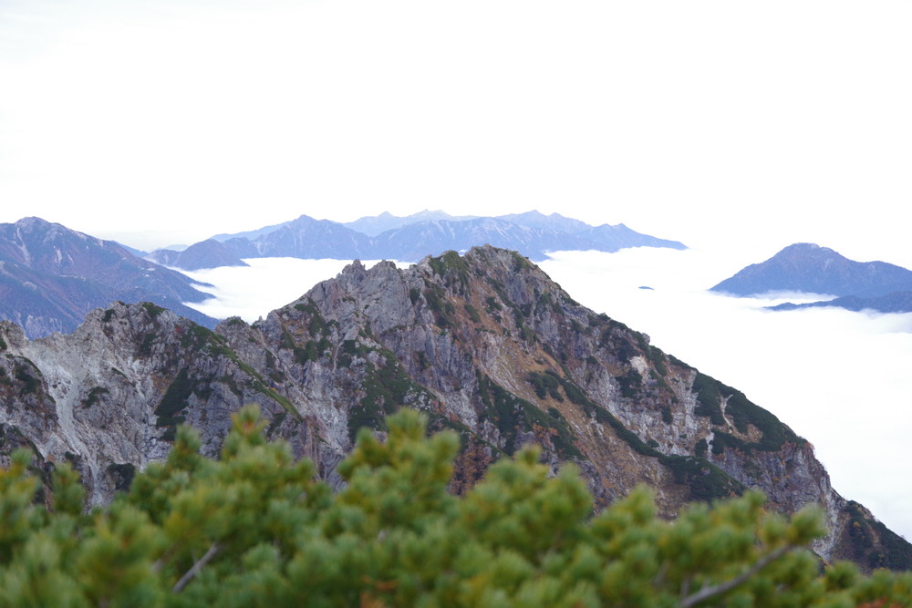 その後テント場を抜けて飛騨乗越をとおり大喰岳(3101m) 中岳(3084m) 南岳(3032.9m)を制覇し