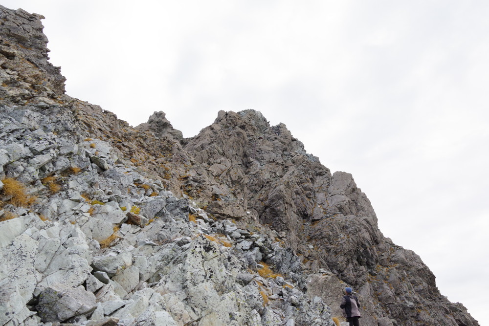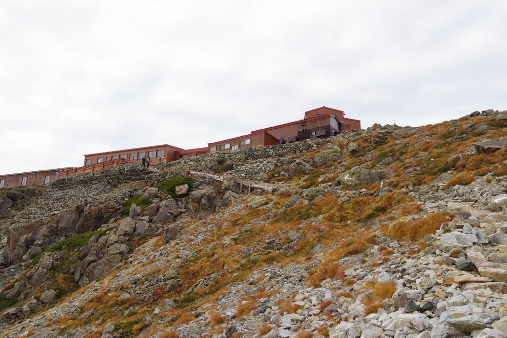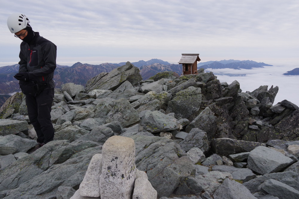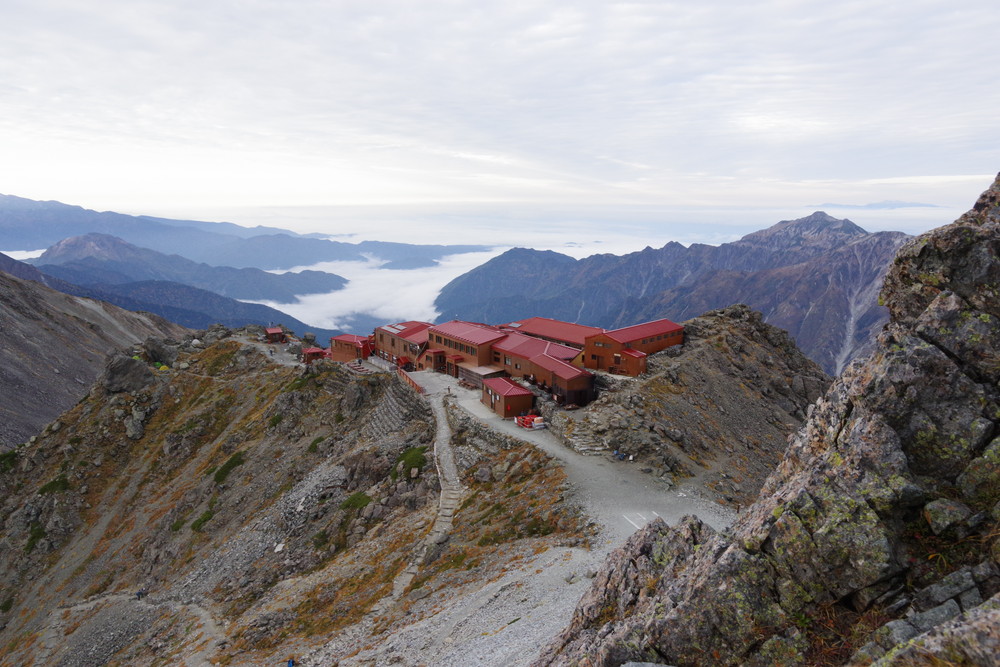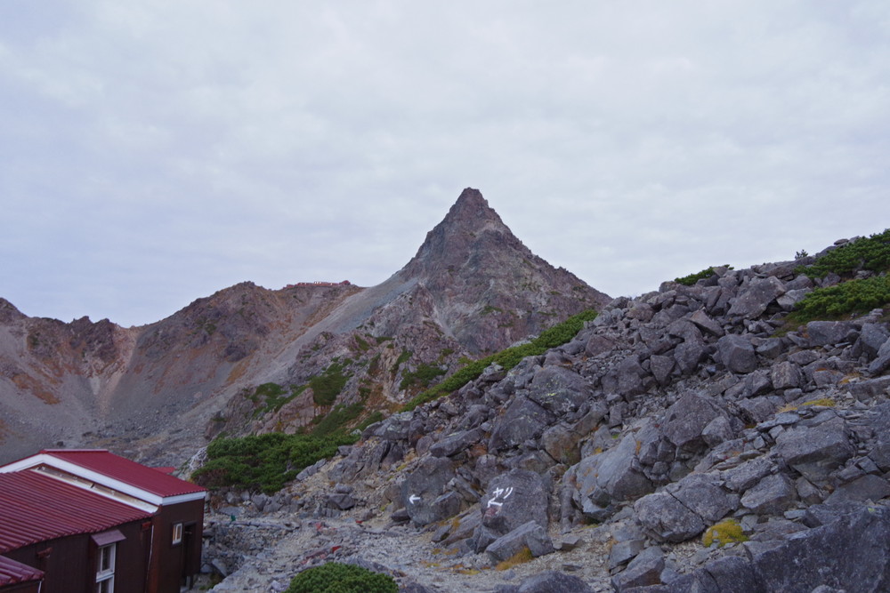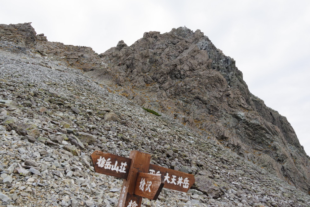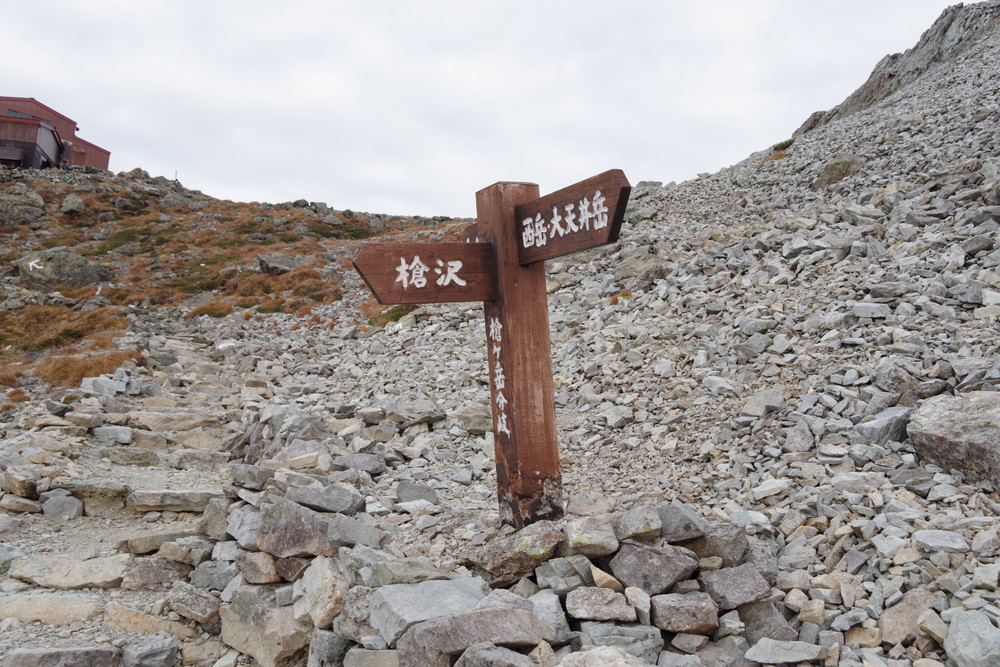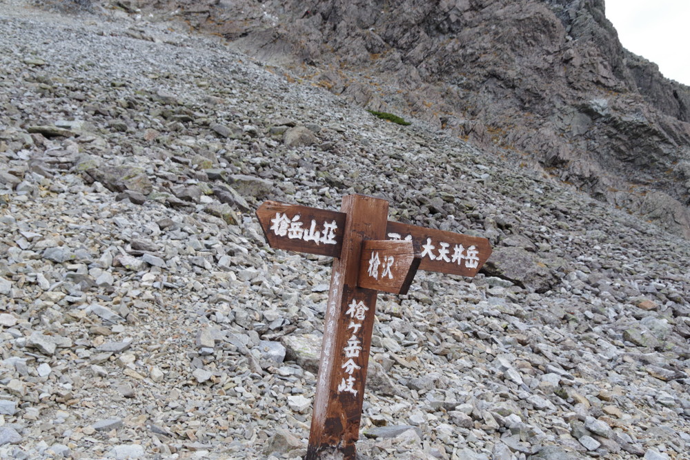やがて槍ヶ岳山荘前に到着。ザックをデポして槍の穂先を目指します。