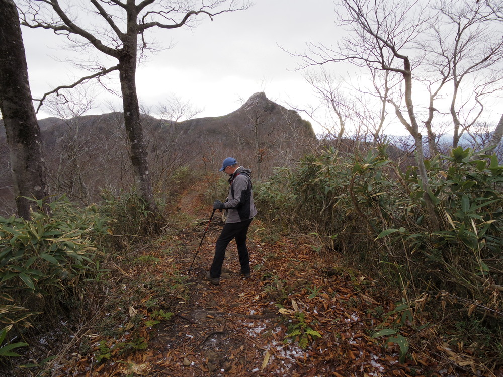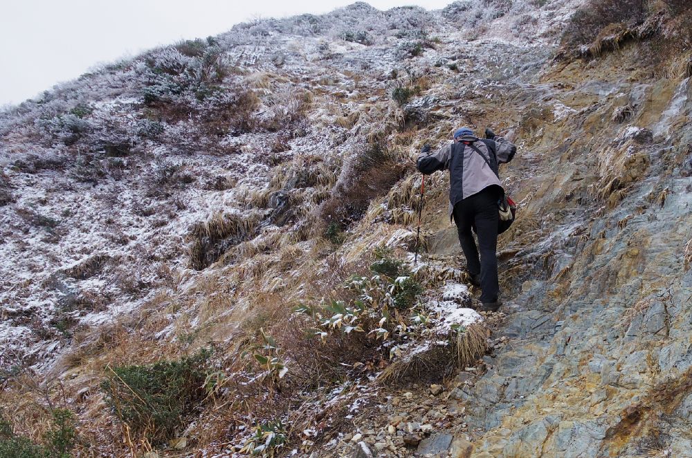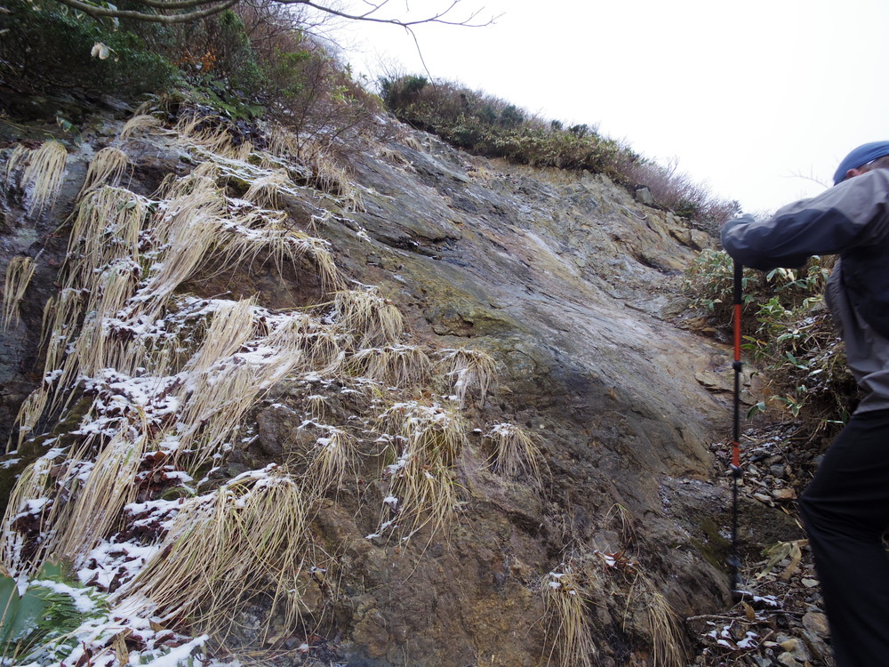 最後の山頂直下の急登部の岩が凍結していてとても危険。登りは何とかなったのですが、ここを下ることは無理。