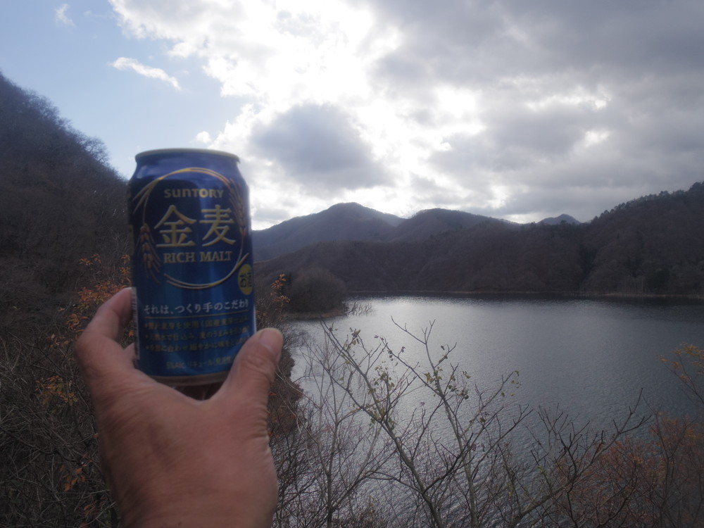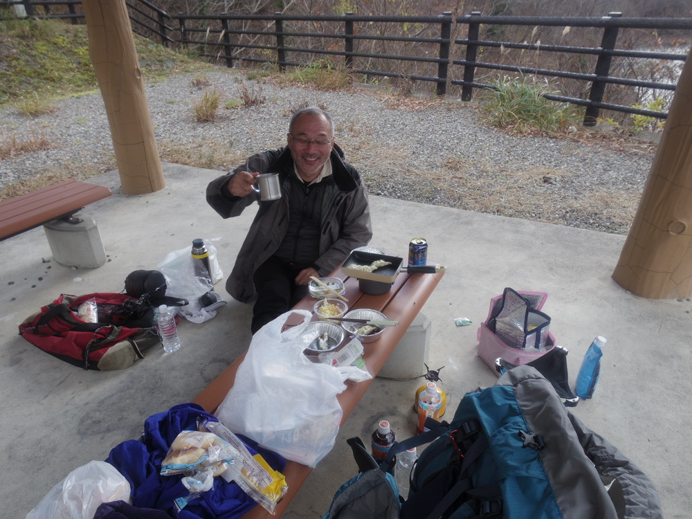 なんとか車までもどり徳山湖を望む休憩地でランチパーティ。餃子を焼いてちょっとのどを潤して帰ってまいりました。
