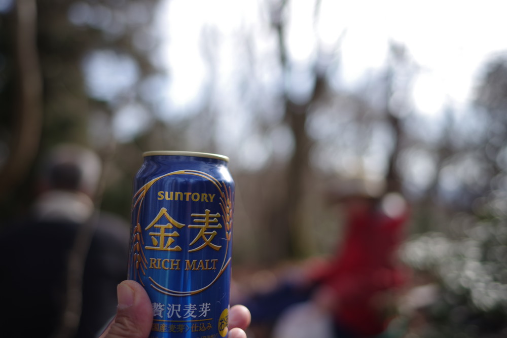 山頂横でサッポロ一番味噌ラーメンを作って金麦を飲みながら食しました。