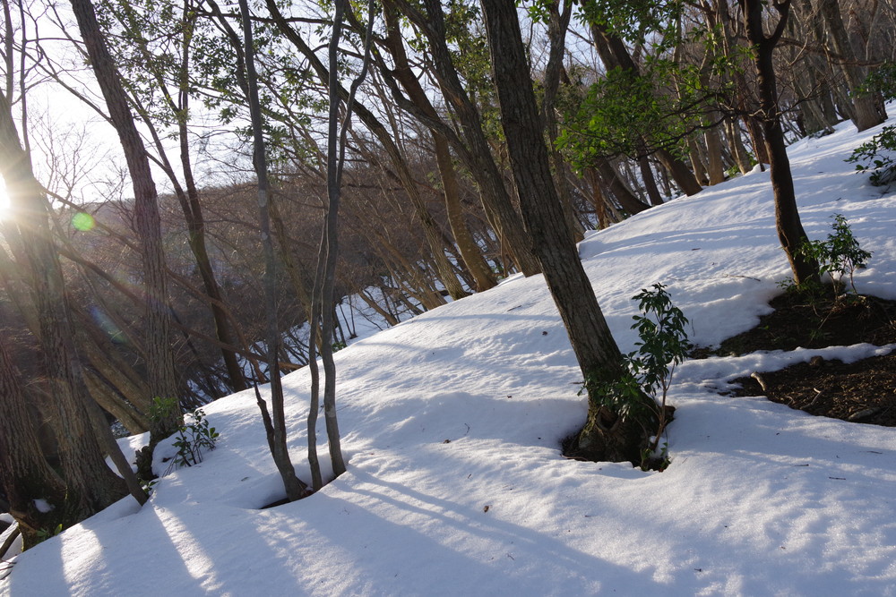 。途中で木和田尾根に合流。白瀬峠からトラバースして真の谷に降り、そこから御池岳南東にある1194mピーク付近へ必死に登る。