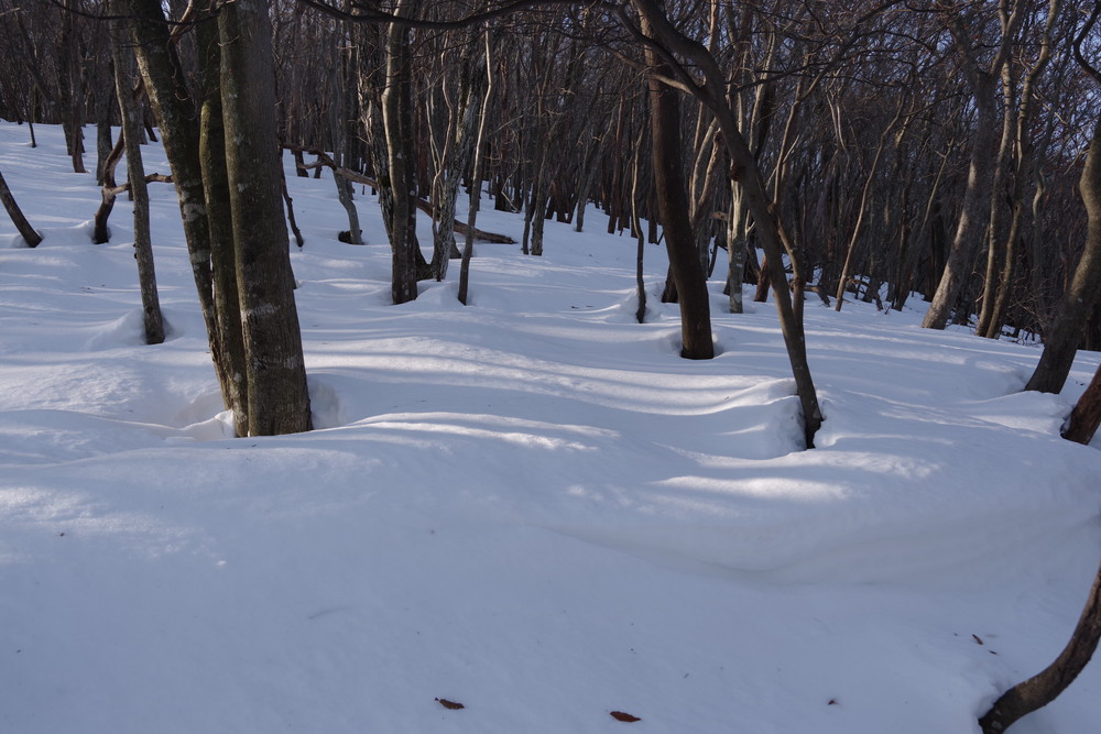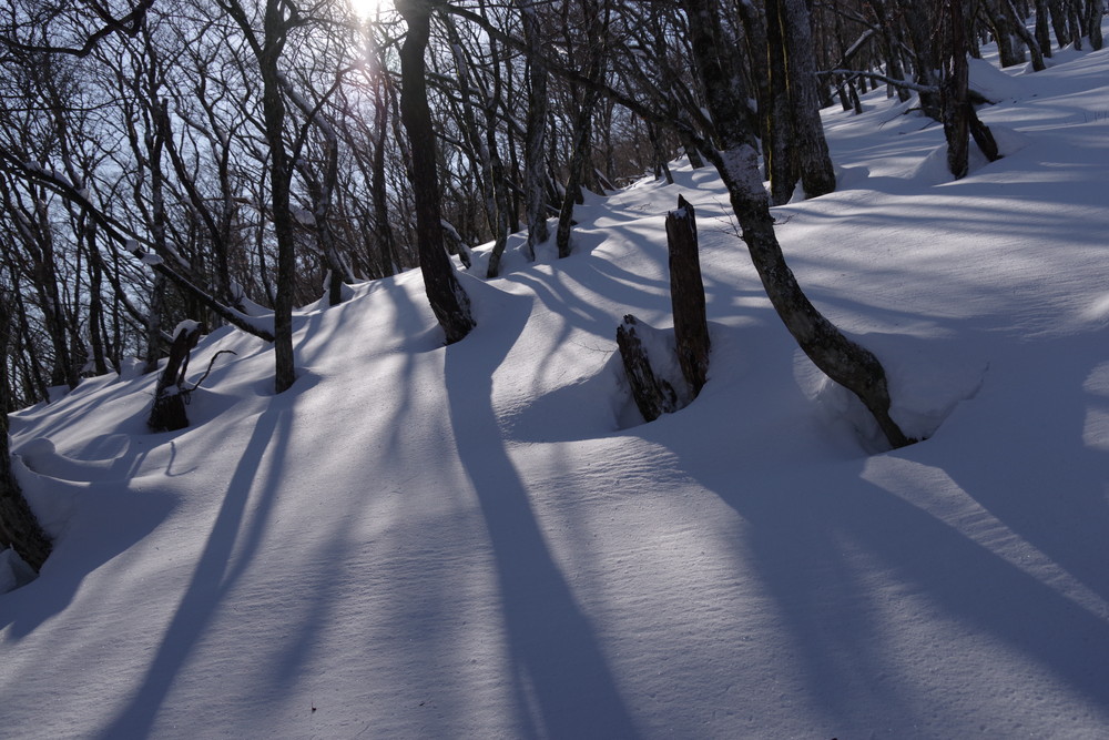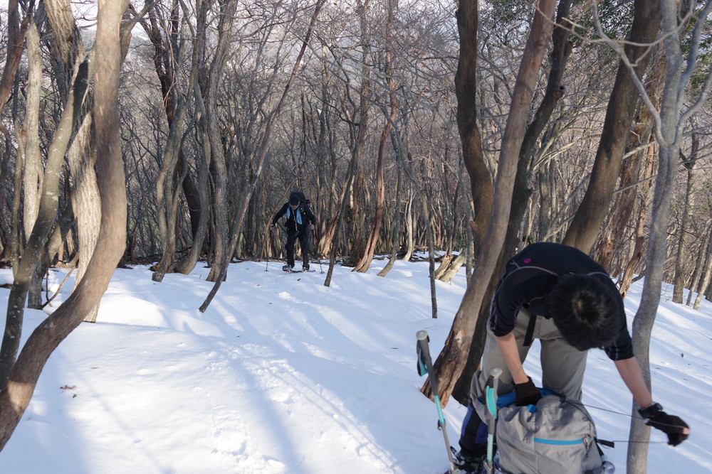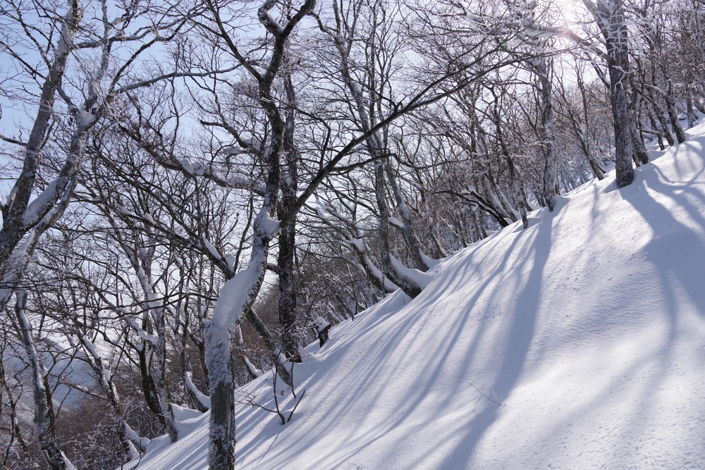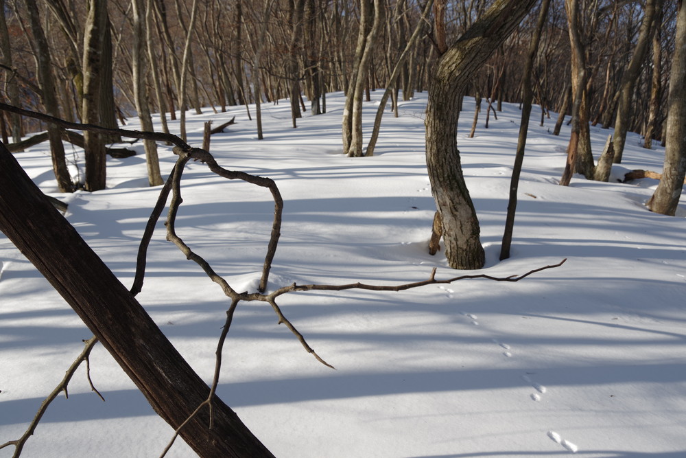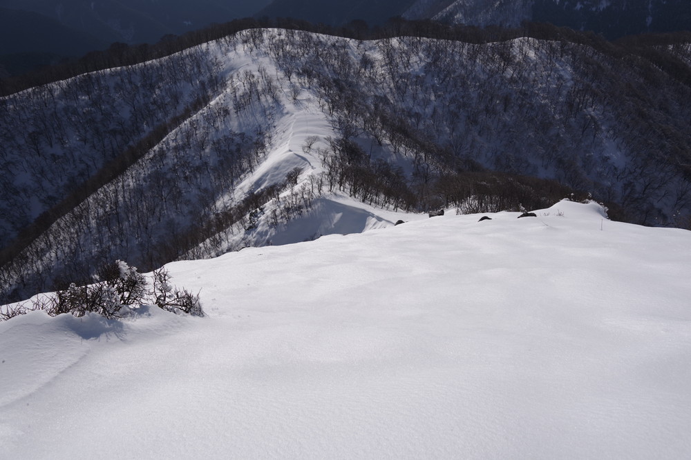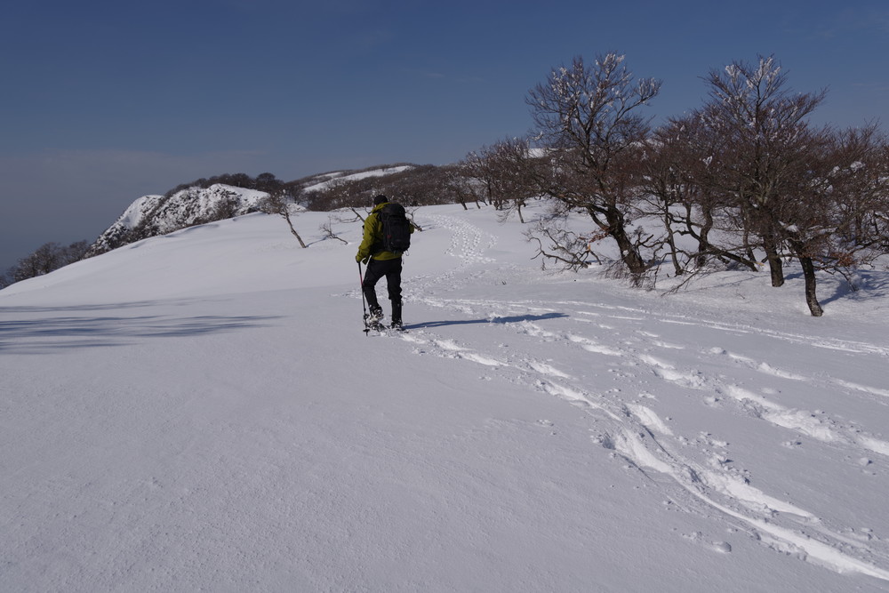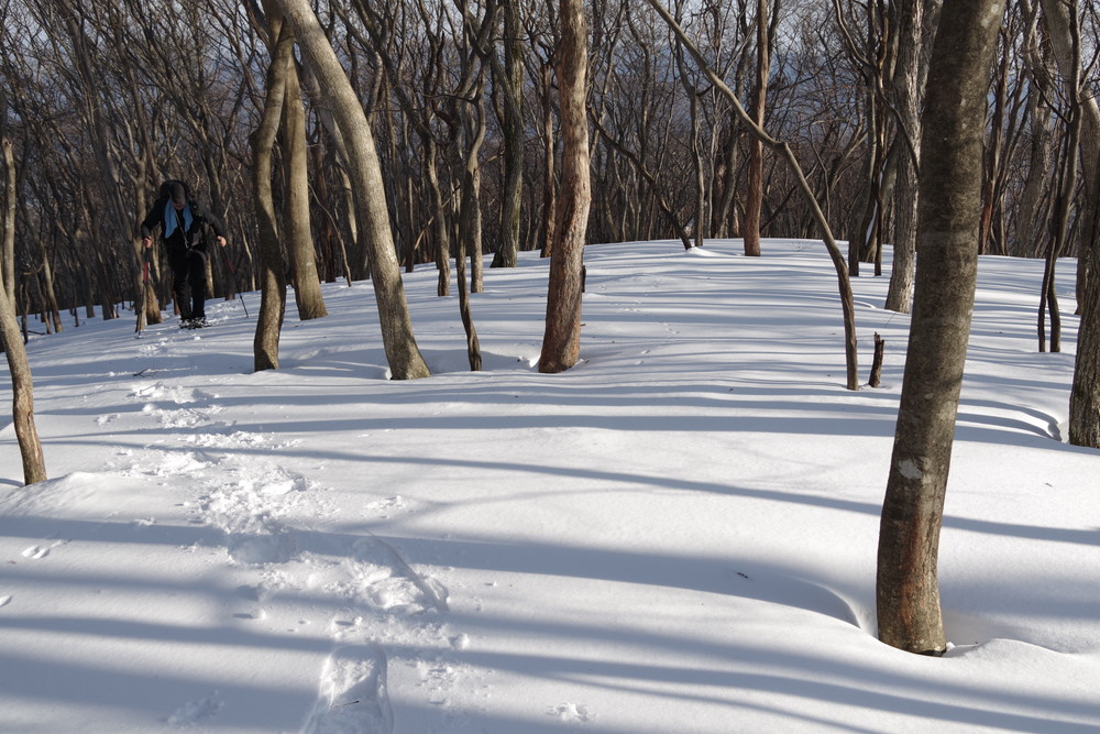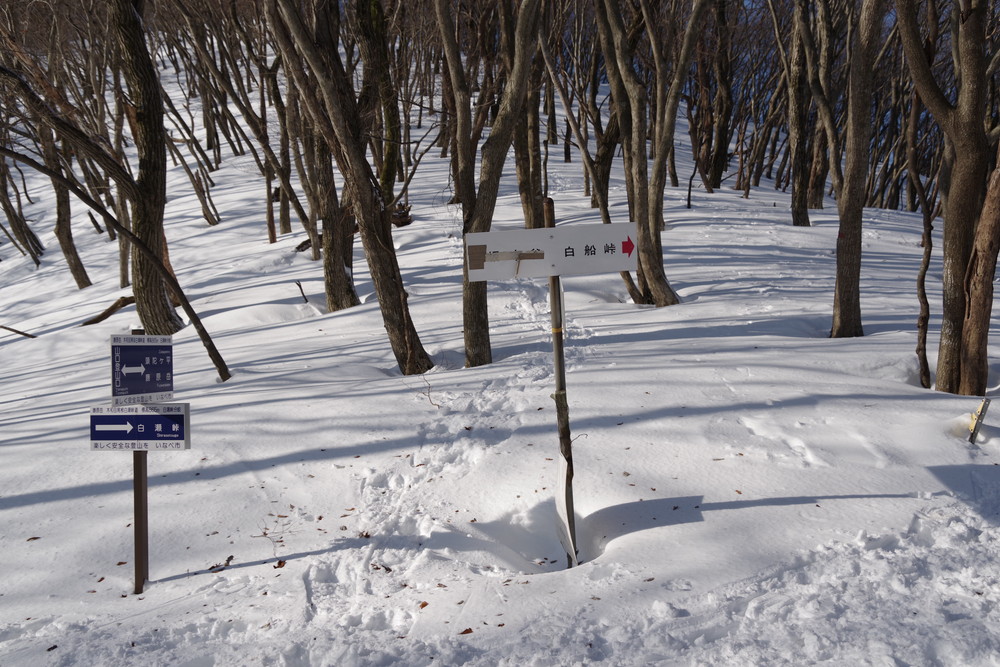 そこから北東方向に降り、谷まで降りたらグイッと真北に登る。稜線に出て白瀬峠に向け南東方向に。