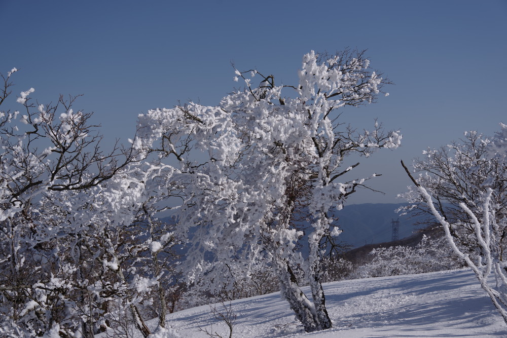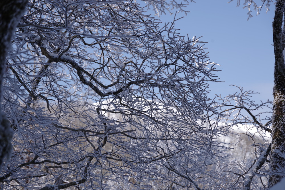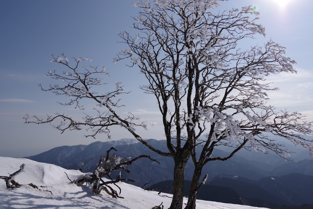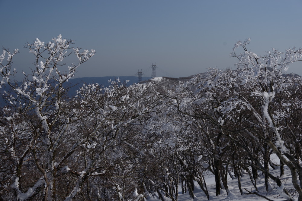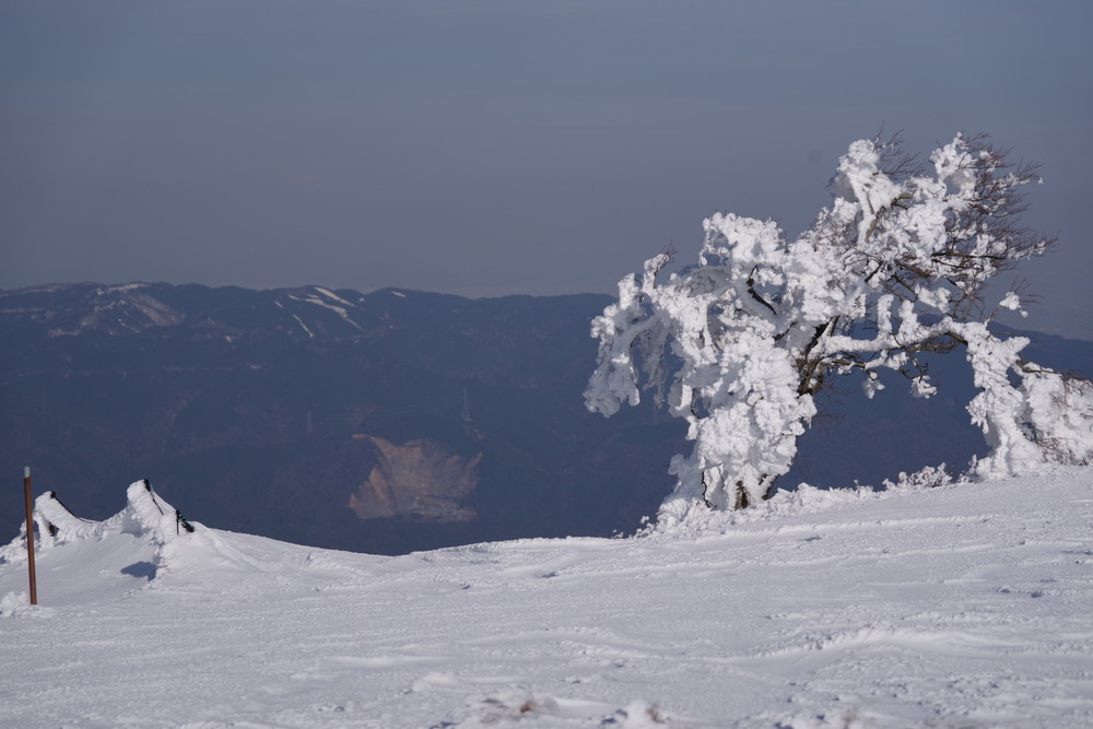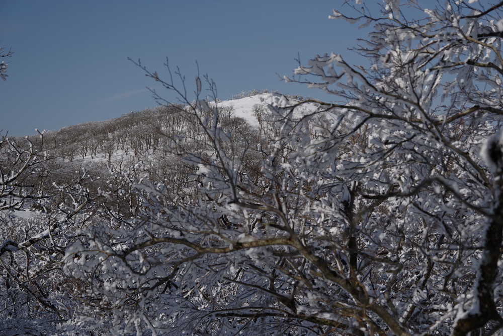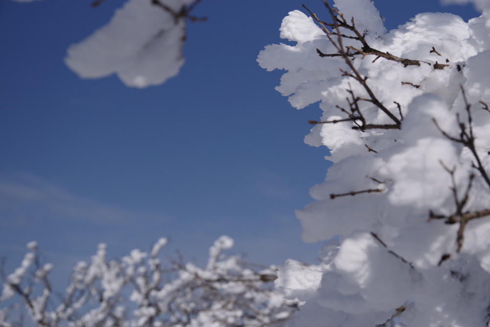 霧氷が消えないうちにとせっせと上り12時くらいに登頂。霧氷はまだ残っていたぞ
