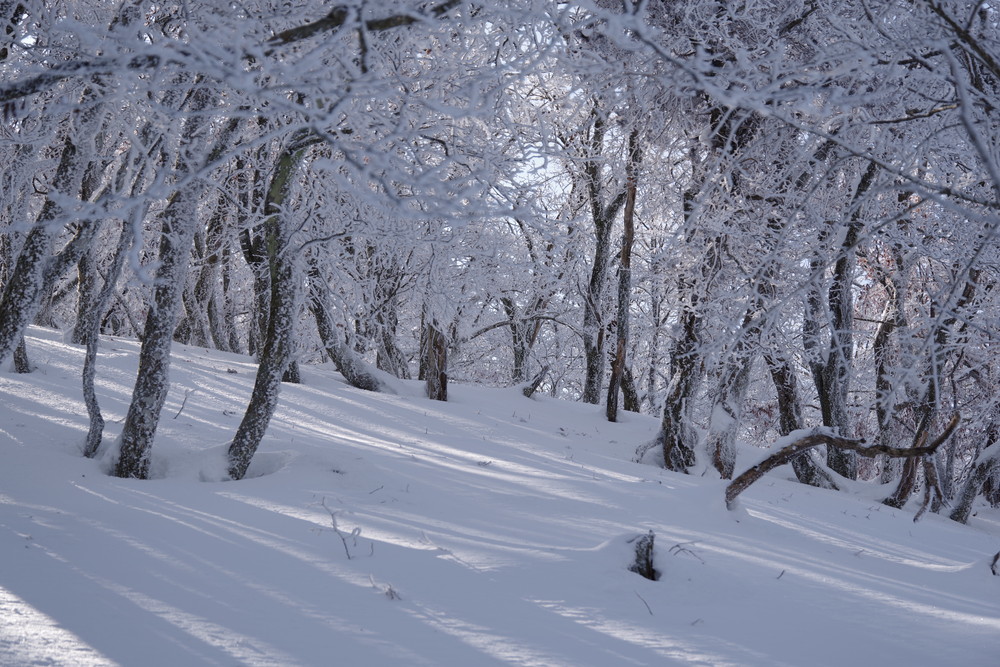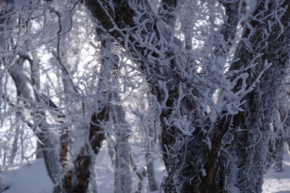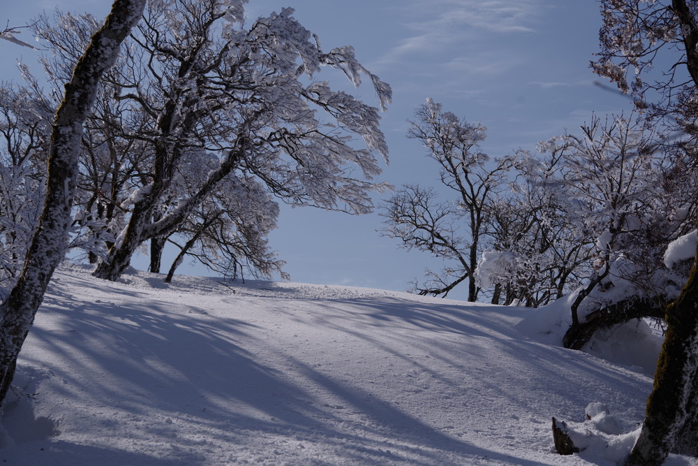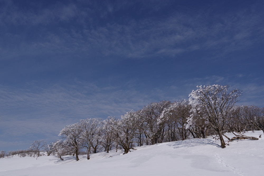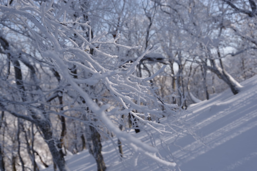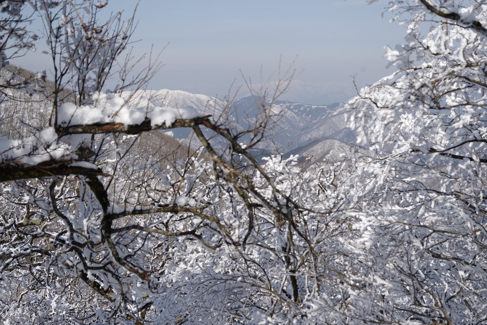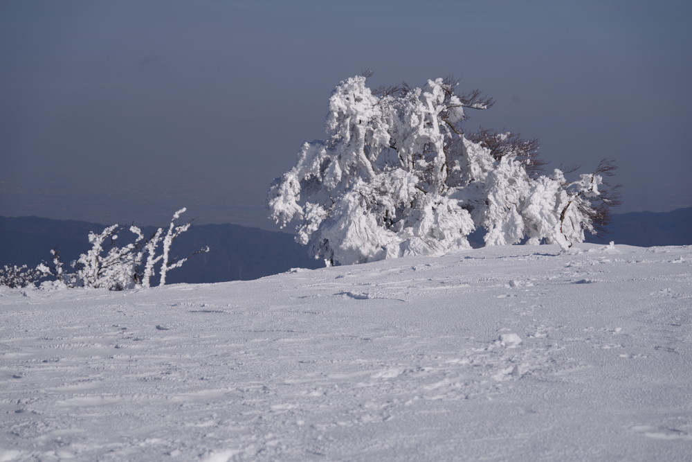 霧氷が消えないうちにとせっせと上り12時くらいに登頂。霧氷はまだ残っていたぞ