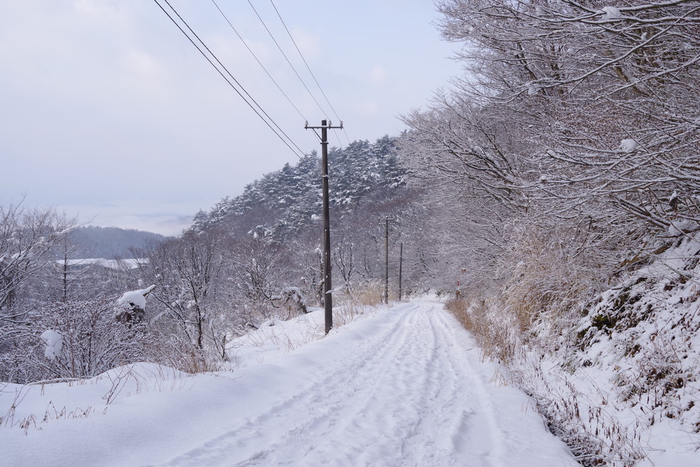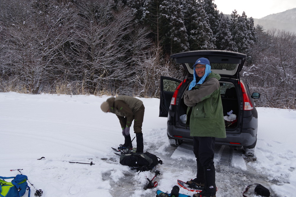 奥越高原青少年自然の家をスタート。林道歩きで経ケ岳登山口から登山開始