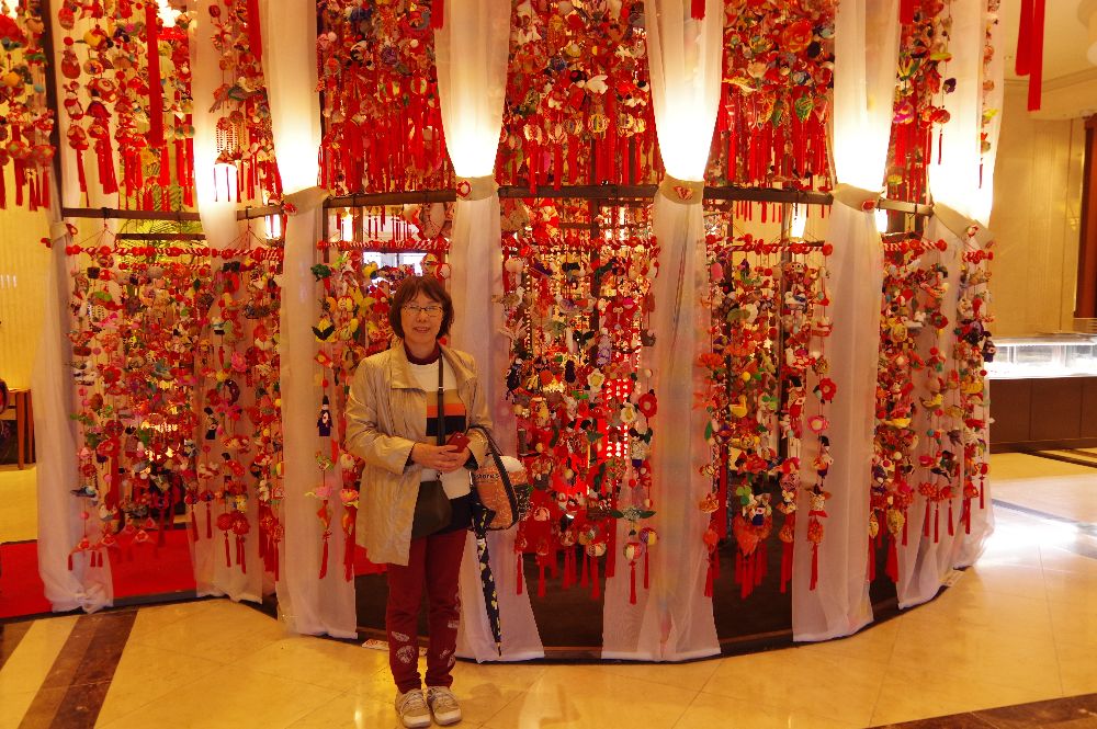 13:19発の電車で名古屋に。 名古屋ではマリオットホテルのロビーでつるし飾りを見学。
