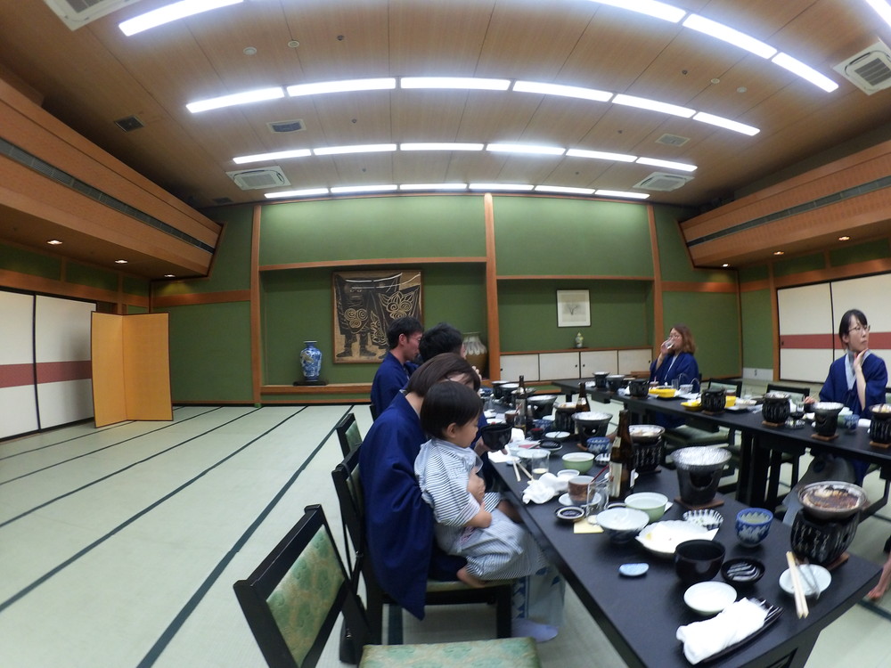 翌日は早朝より雨。 みなさん早い時間より入浴し7時にはバイキングの朝食。