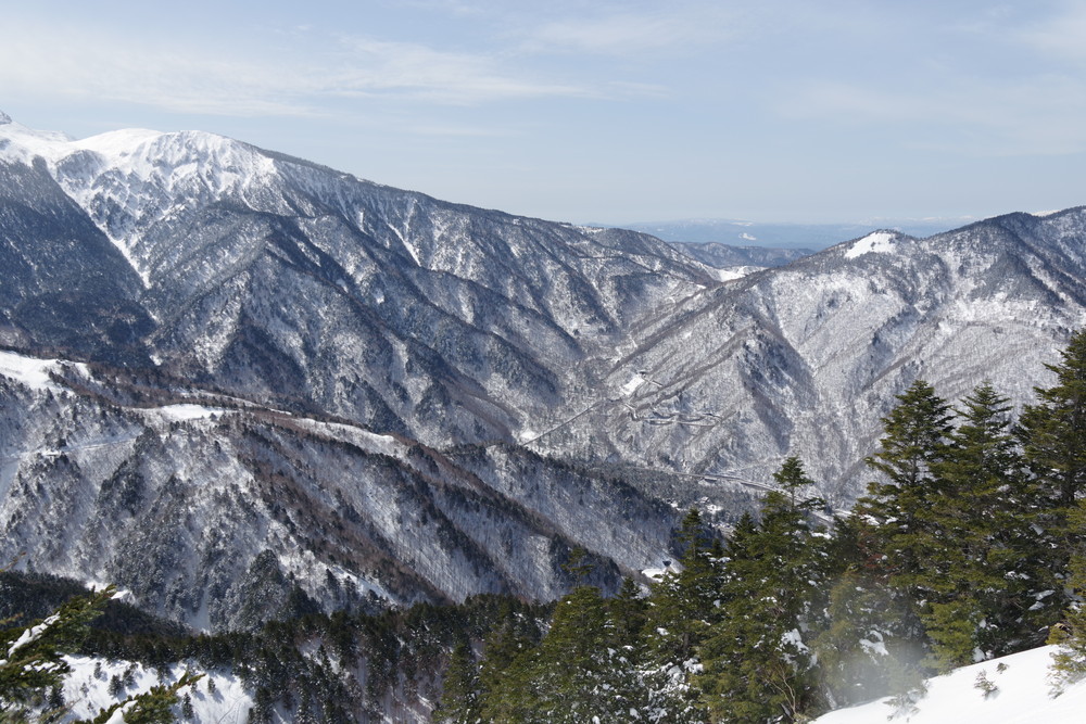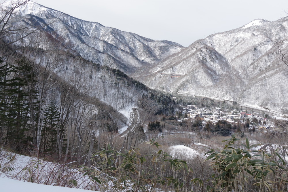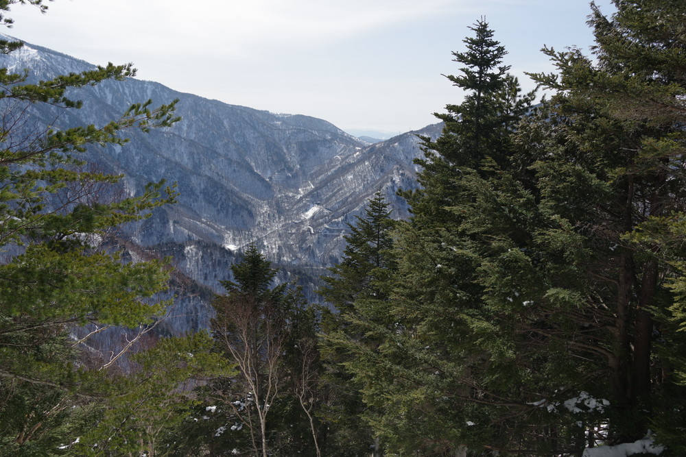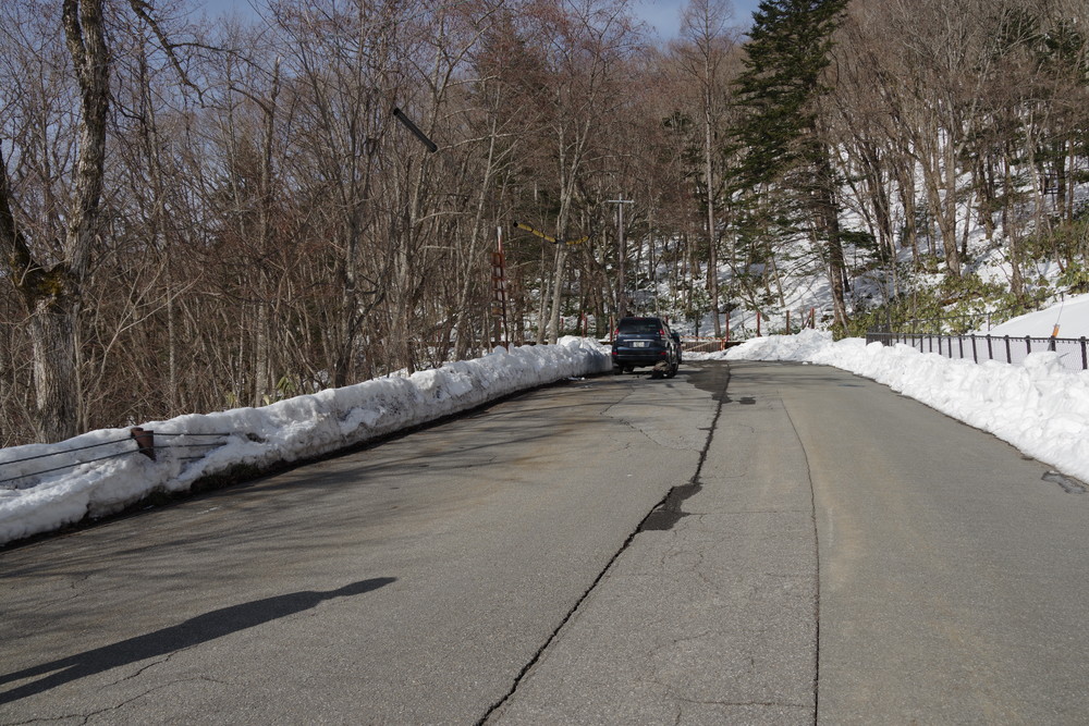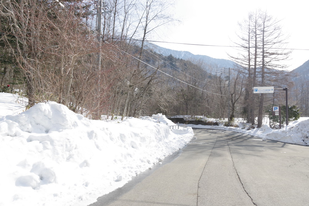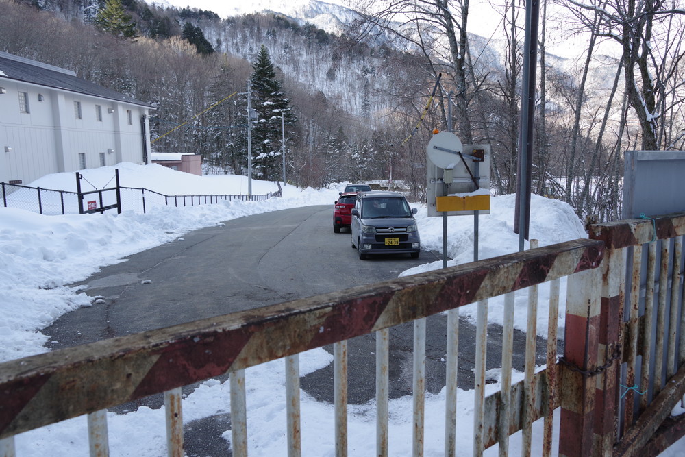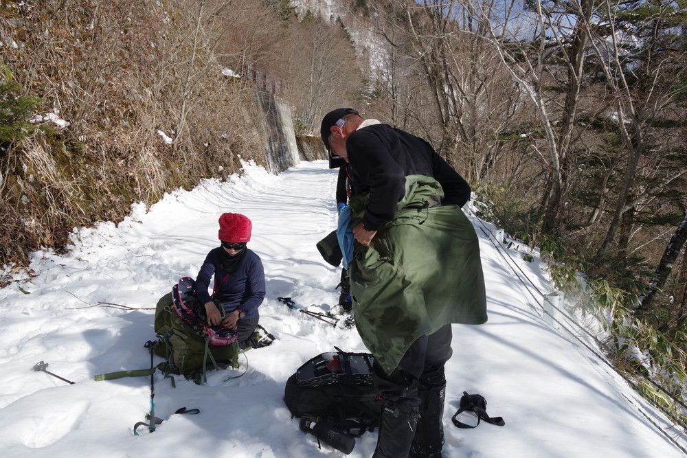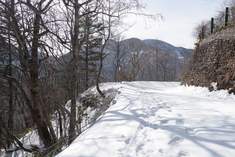 林道入り口まで相乗りで行き、柵を乗り越えたところからスノーシュー装着。林道歩きでした。
