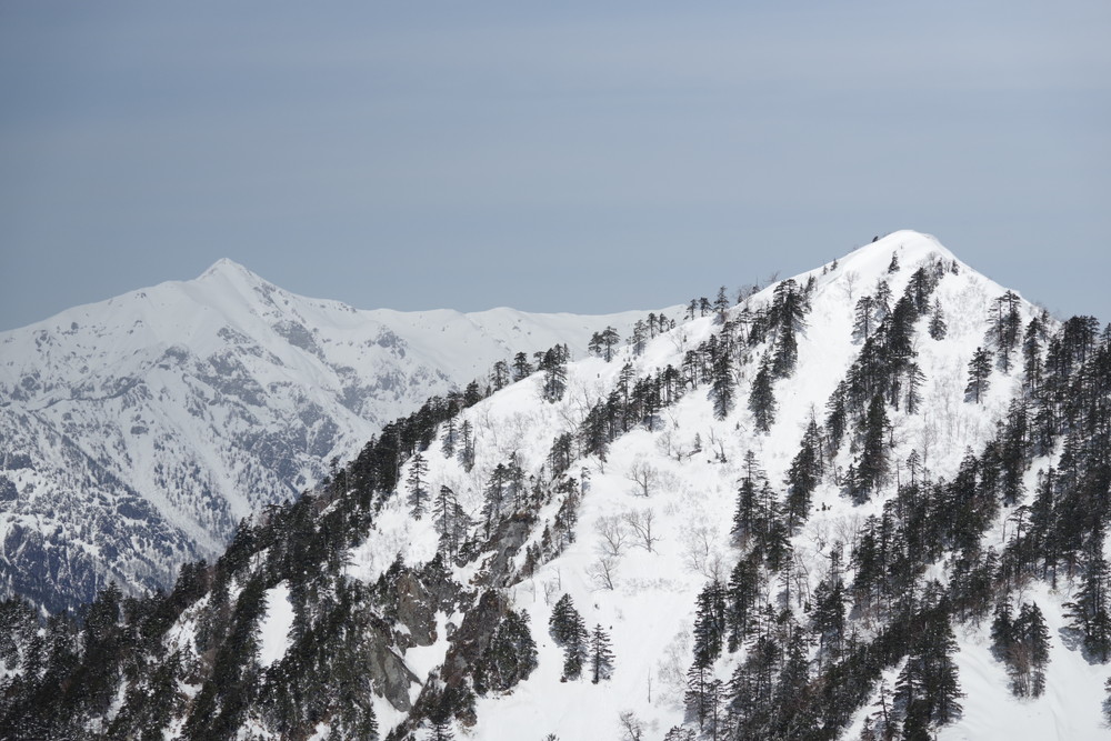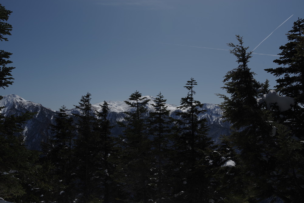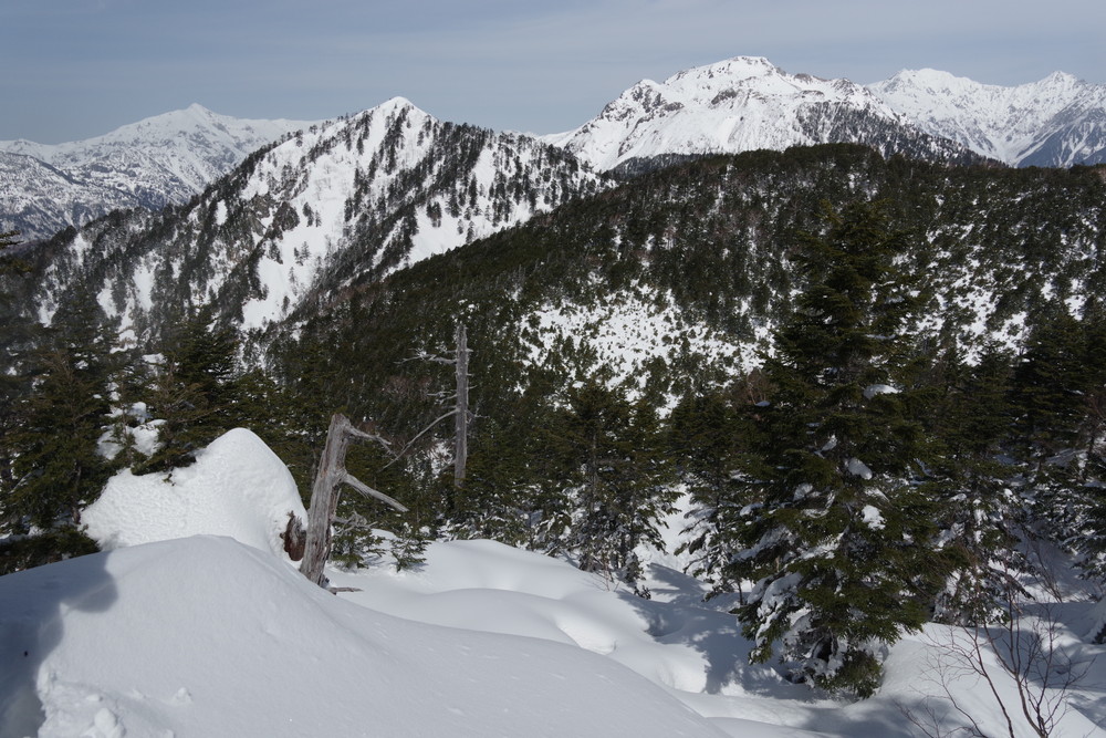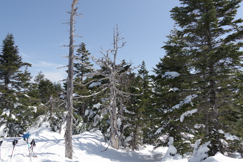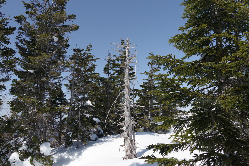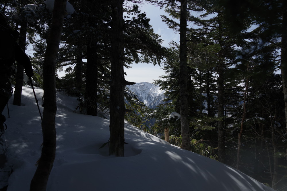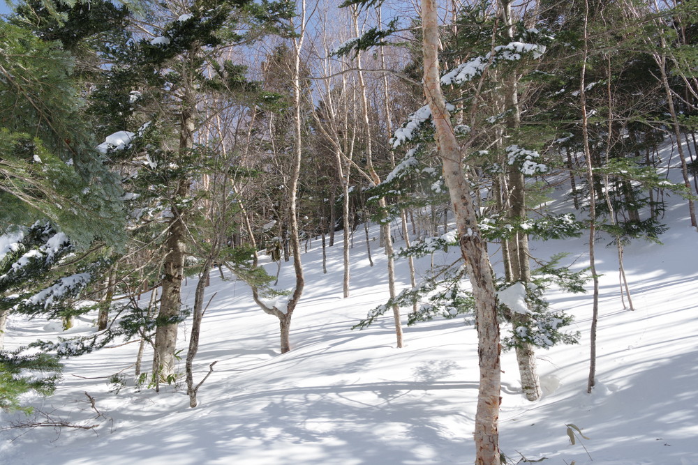 ヨッシーさんと小生は早々とスノーシューをあきらめアイゼンに履き替え。(スノーシューでは滑ってしまって上がれない)