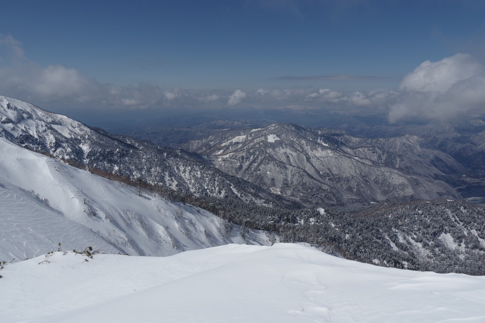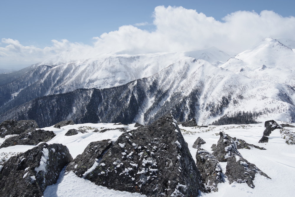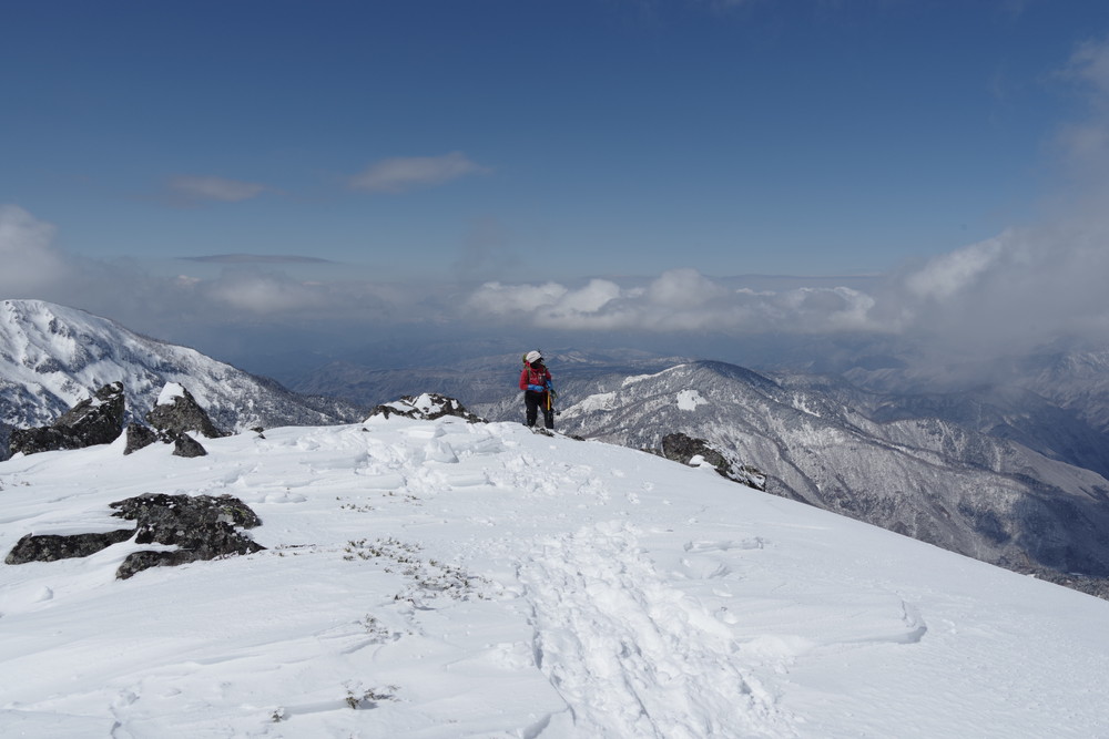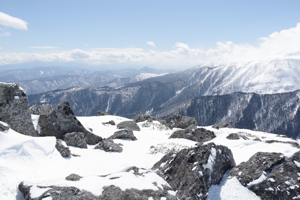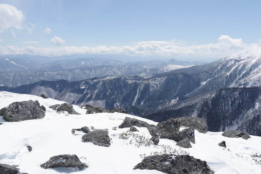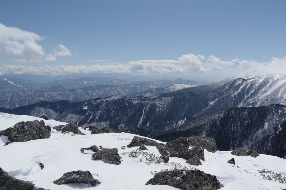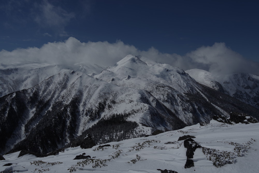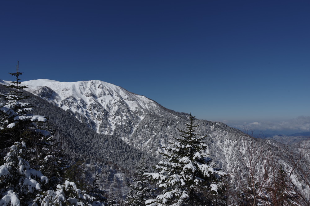 12分30秒で到着したところは2520mのピークで十石山の頂上(2524.9m)までにはまだ同程度の距離がありそうだったので引き返しました。